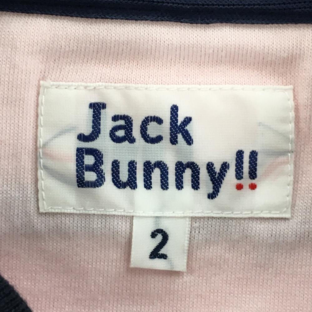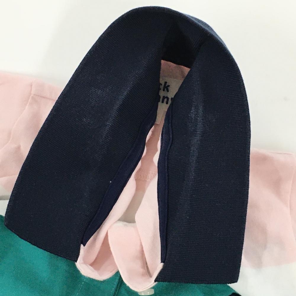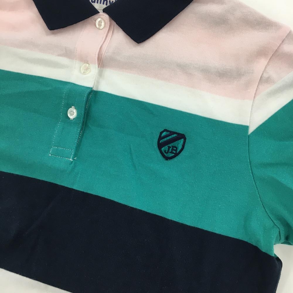 ジャックバニー 半袖ポロシャツ ネイビー×グリーン×ピンク ボーダー風 レディース 2(L) ゴルフウェア Jack Bunny