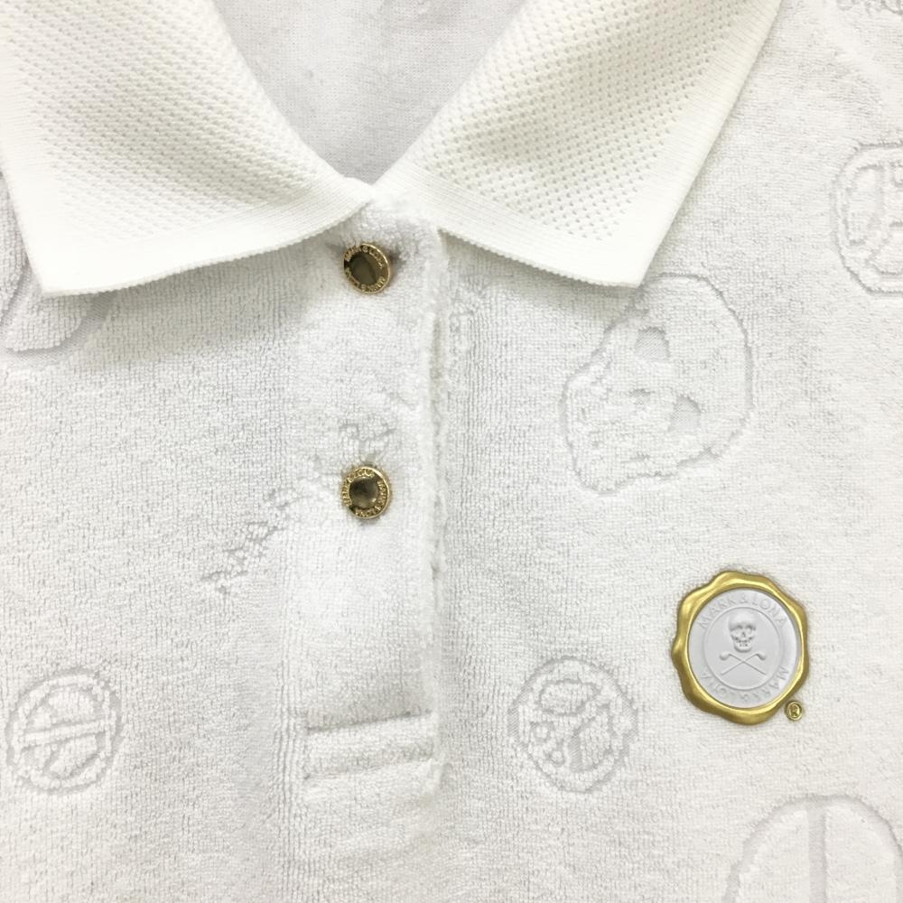 マークアンドロナ 半袖ポロシャツ 白 パイル地 スカル レディース M ゴルフウェア MARK&LONA