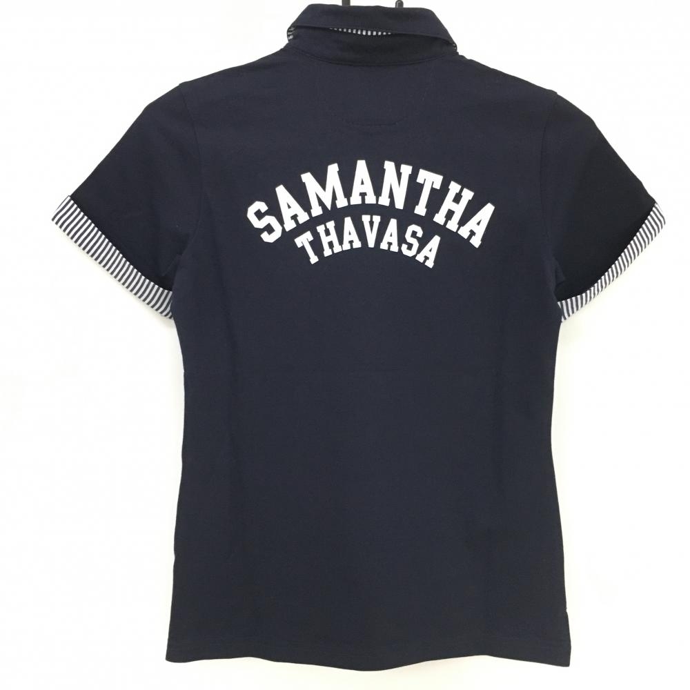 【超美品】サマンサタバサNo.7 半袖ポロシャツ ネイビー×白 レディース 38(M) ゴルフウェア Samantha Thavasa