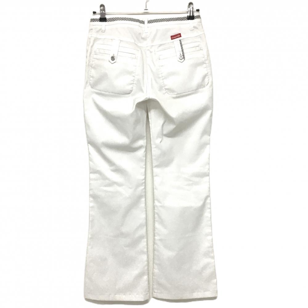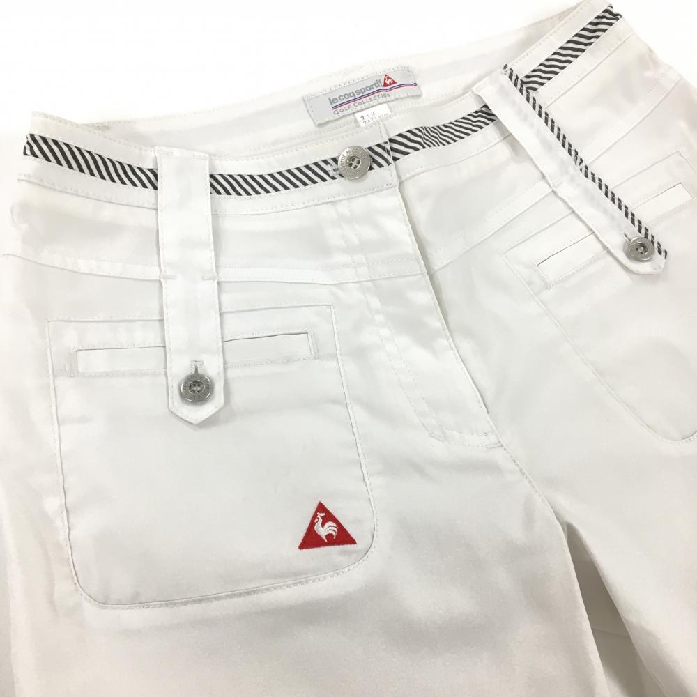 ルコックゴルフ パンツ 白×グレー ウエスト斜めストライプライン レディース 9 ゴルフウェア le coq sportif