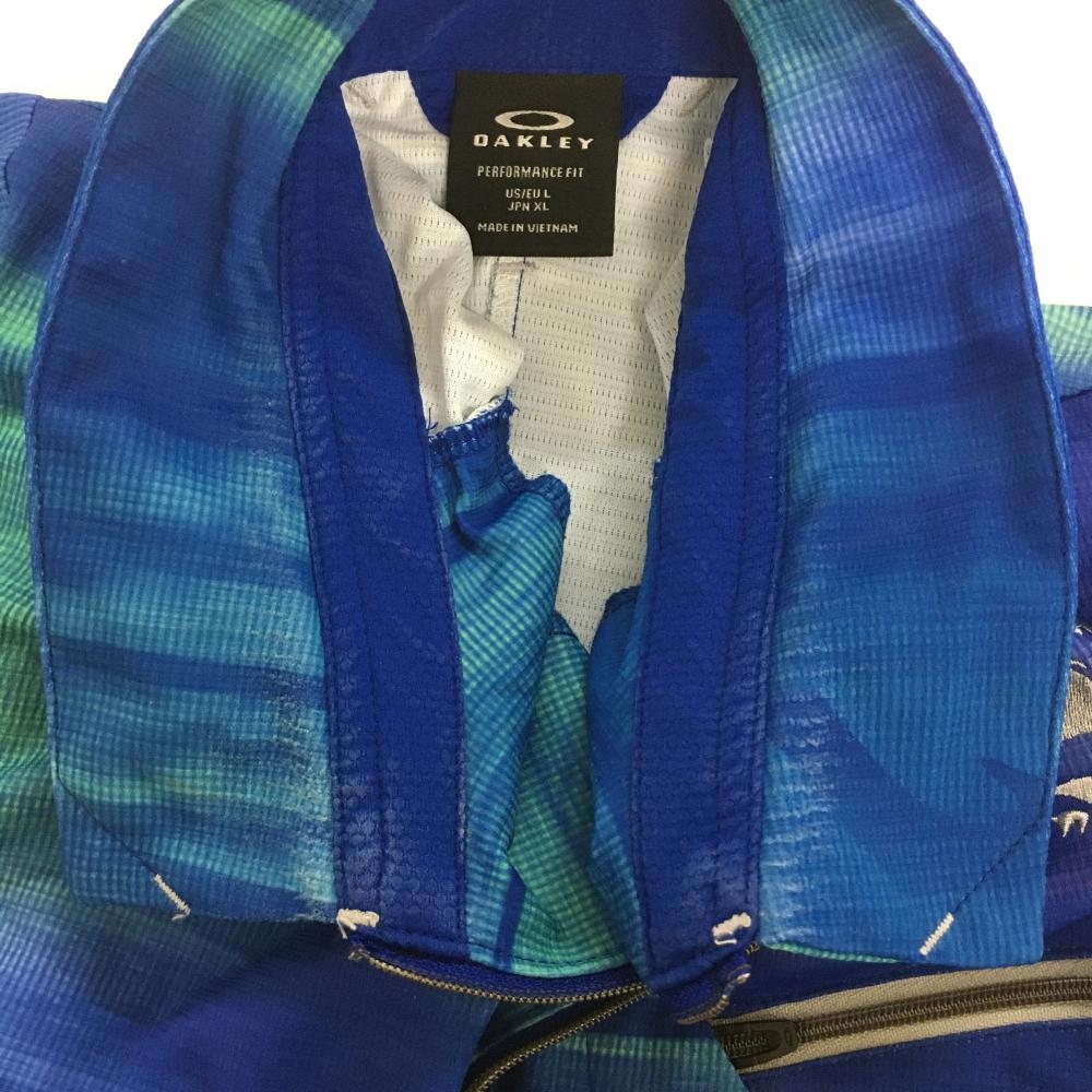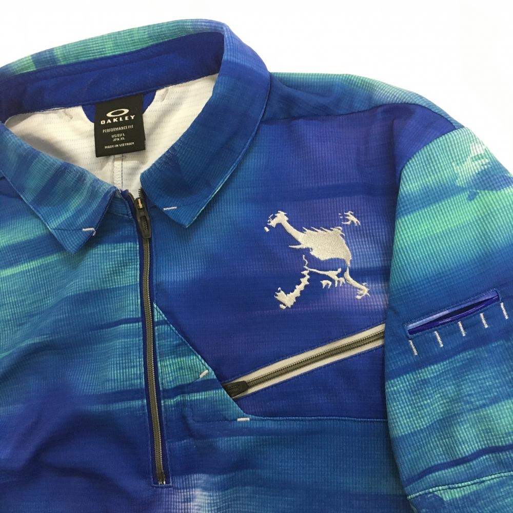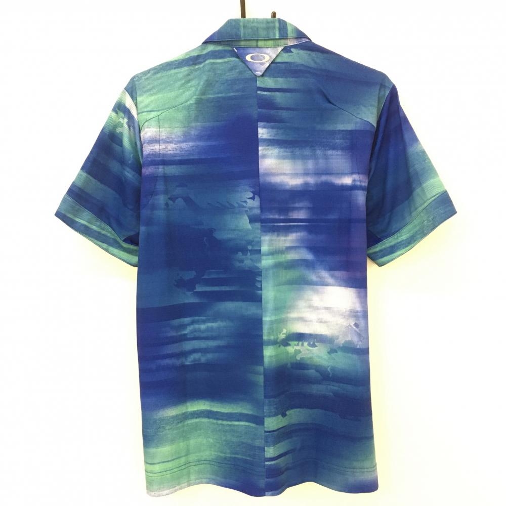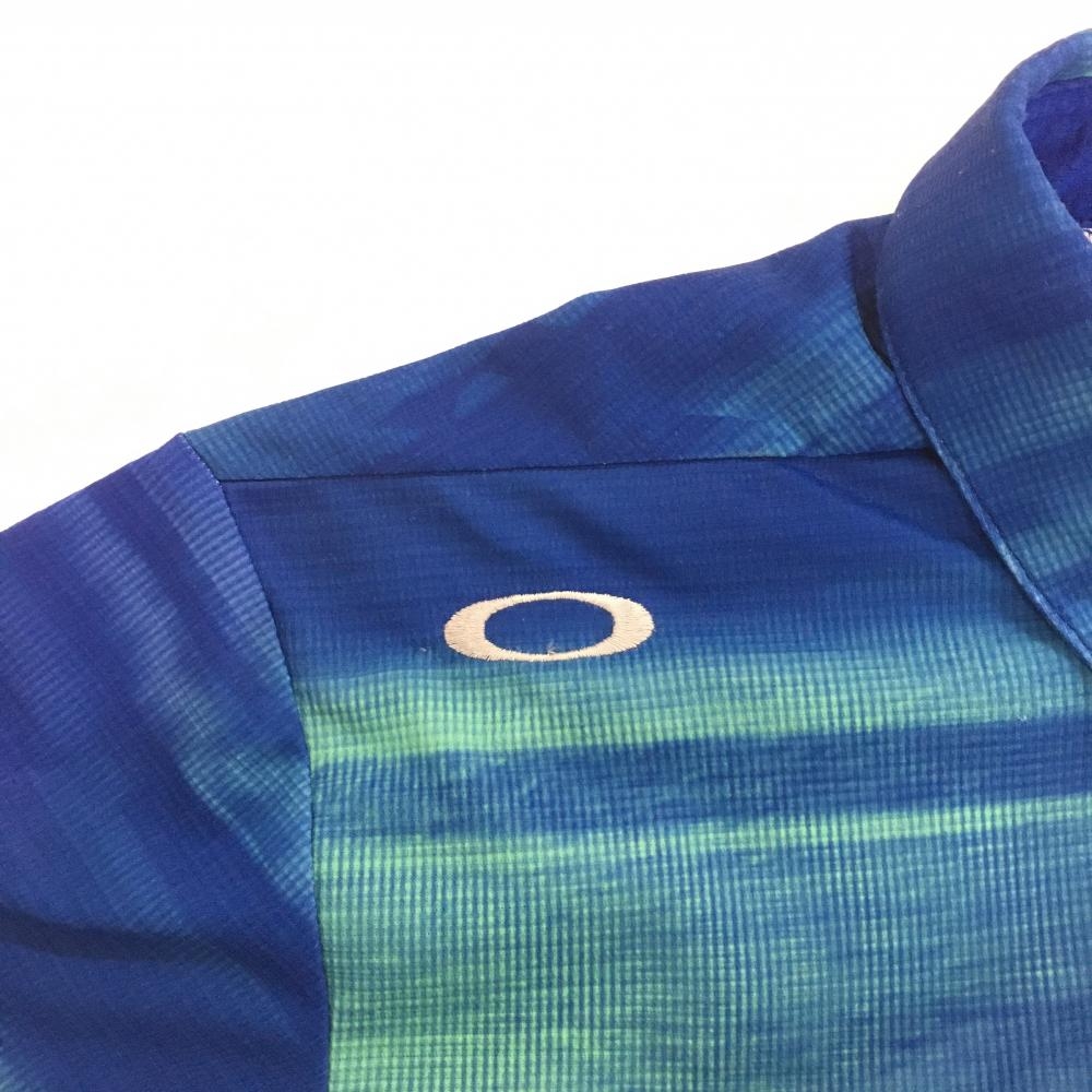 オークリー 半袖ポロシャツ ブルー×ライトグリーン グラデーション風 ハーフジップ メンズ XL ゴルフウェア 2023年モデル Oakley