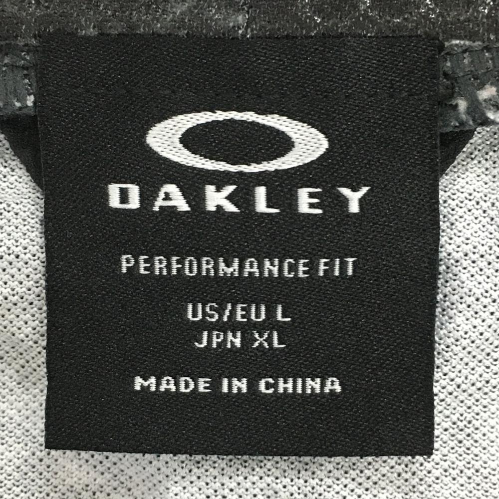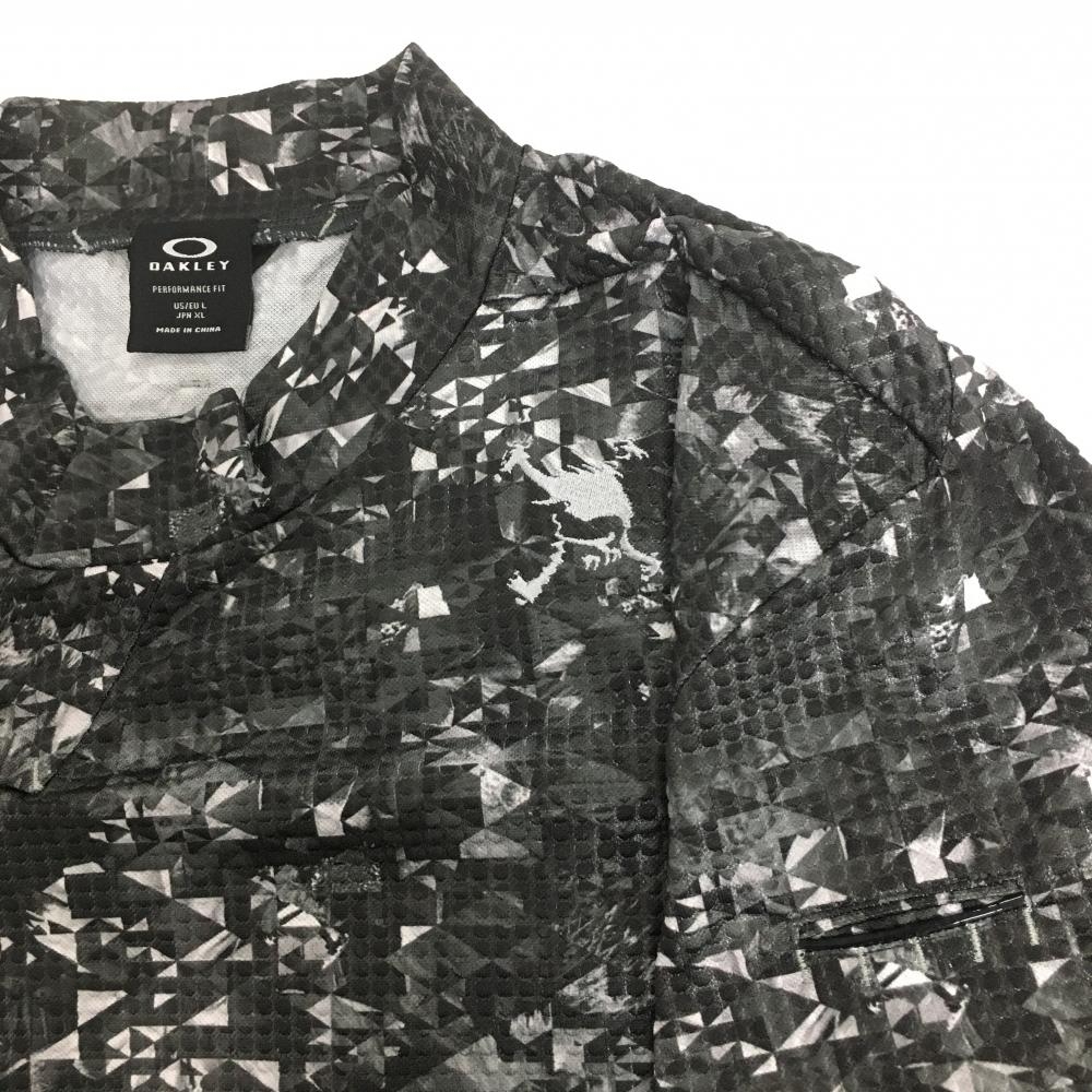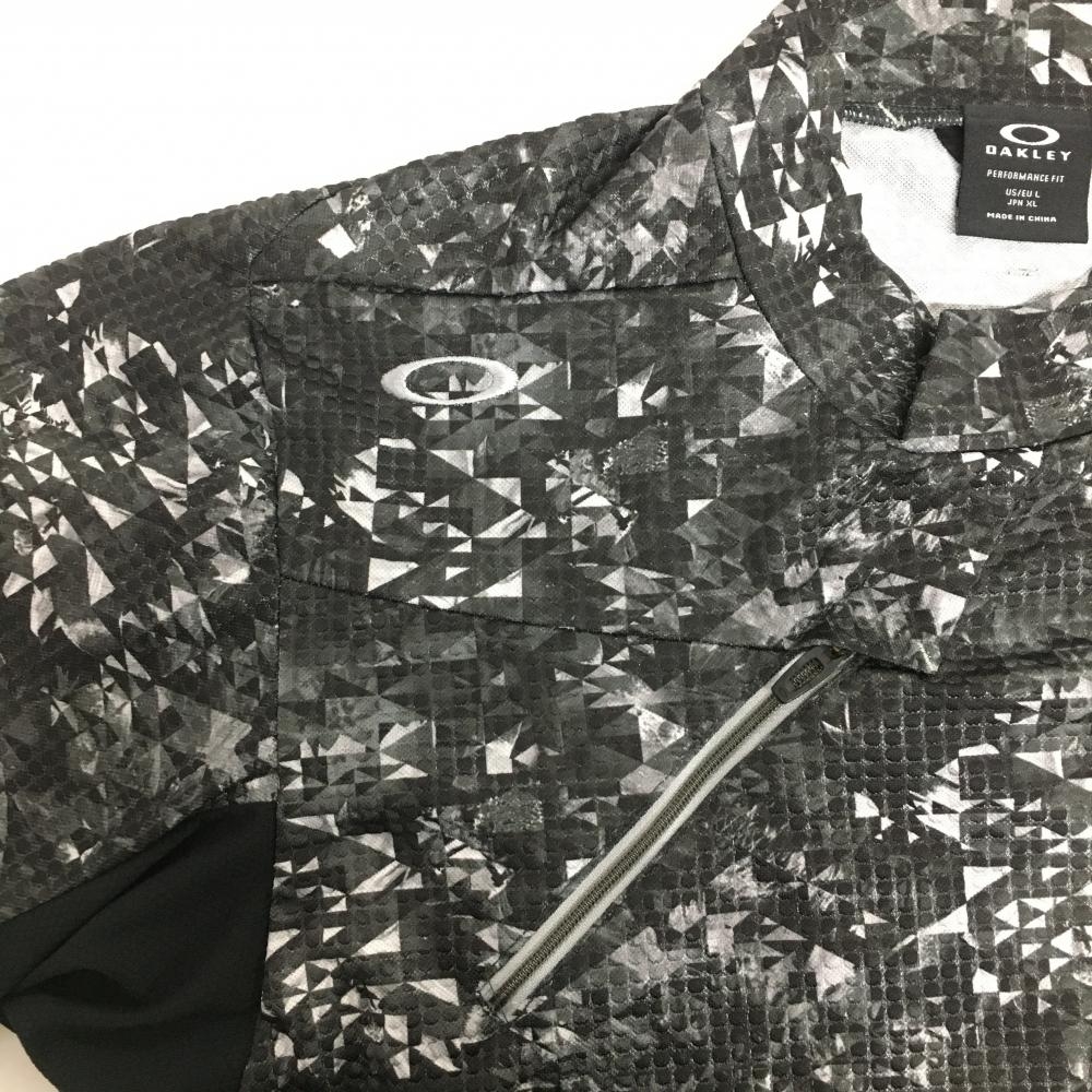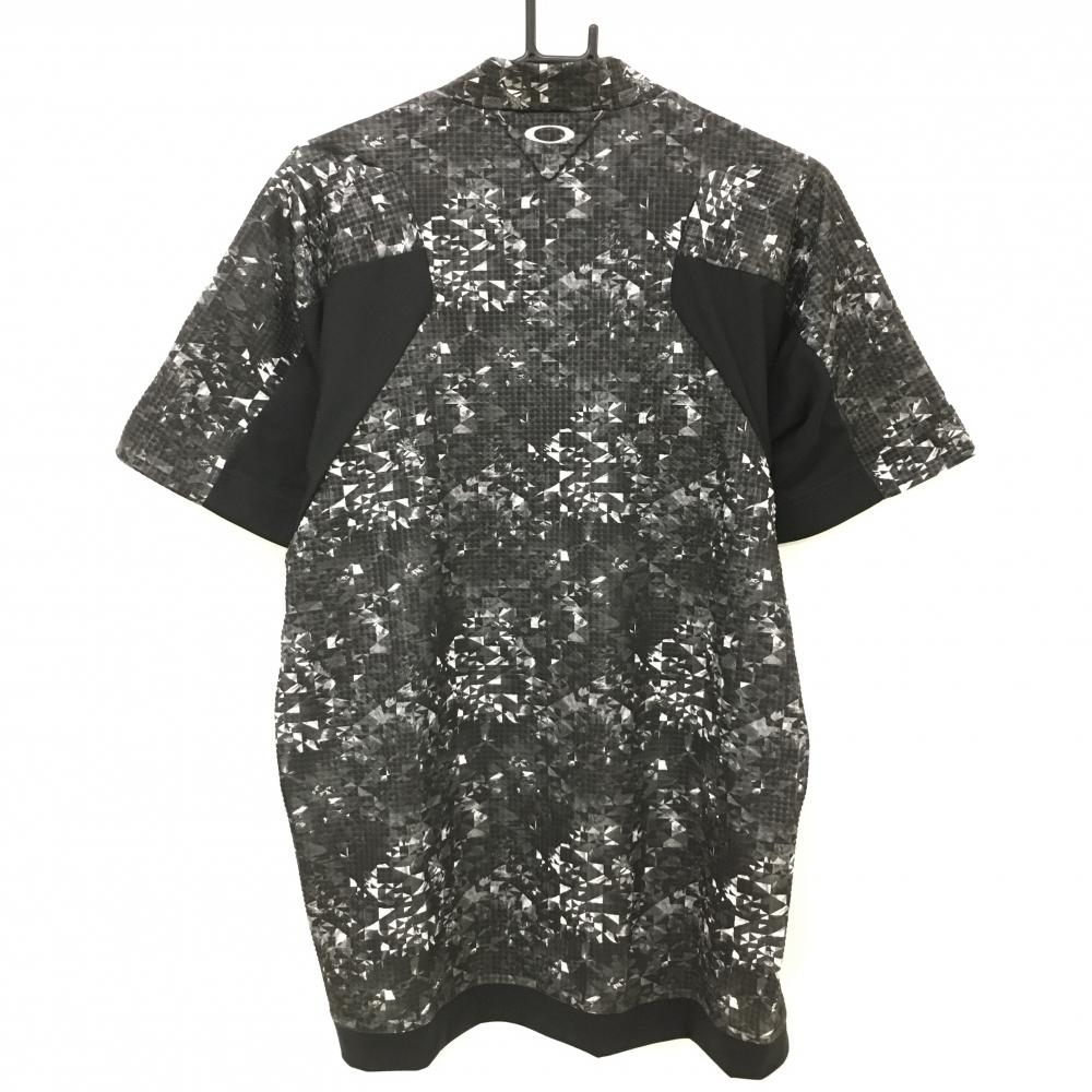 【超美品】オークリー 半袖ハイネックシャツ 黒×白 総柄 凹凸生地 ティー装着可 メンズ XL ゴルフウェア 2024年モデル Oakley