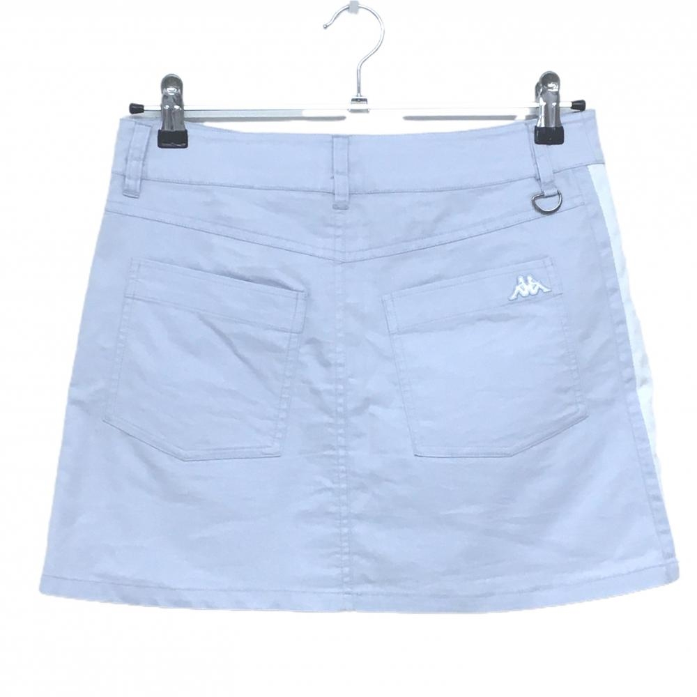 【美品】カッパ スカート ライトブルー系×白 スナップボタン サイドライン レディース 9 ゴルフウェア Kappa