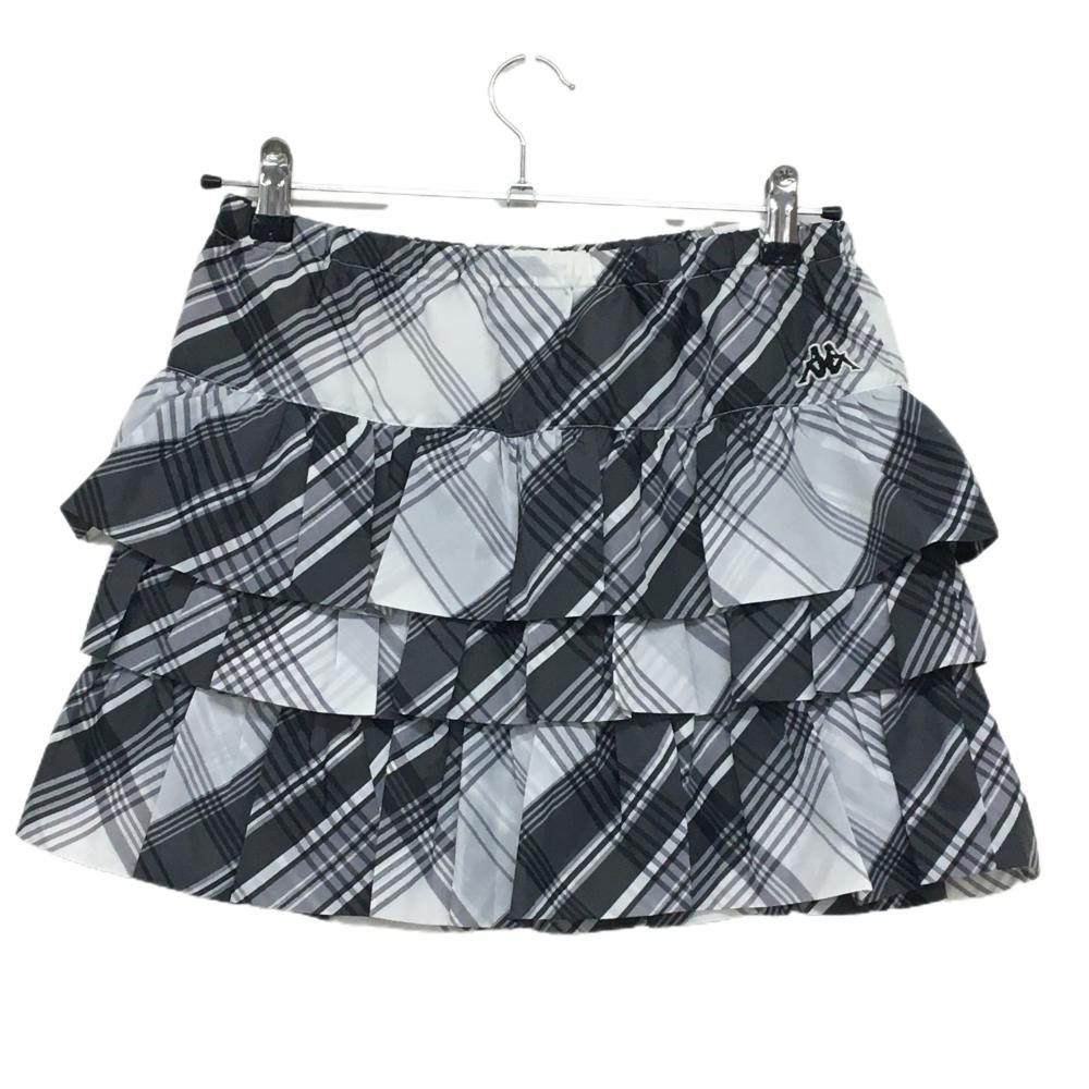 【美品】カッパ フリルスカート 白×グレー×ダークグレー ウエストゴム 裏地付き レディース 11 ゴルフウェア Kappa