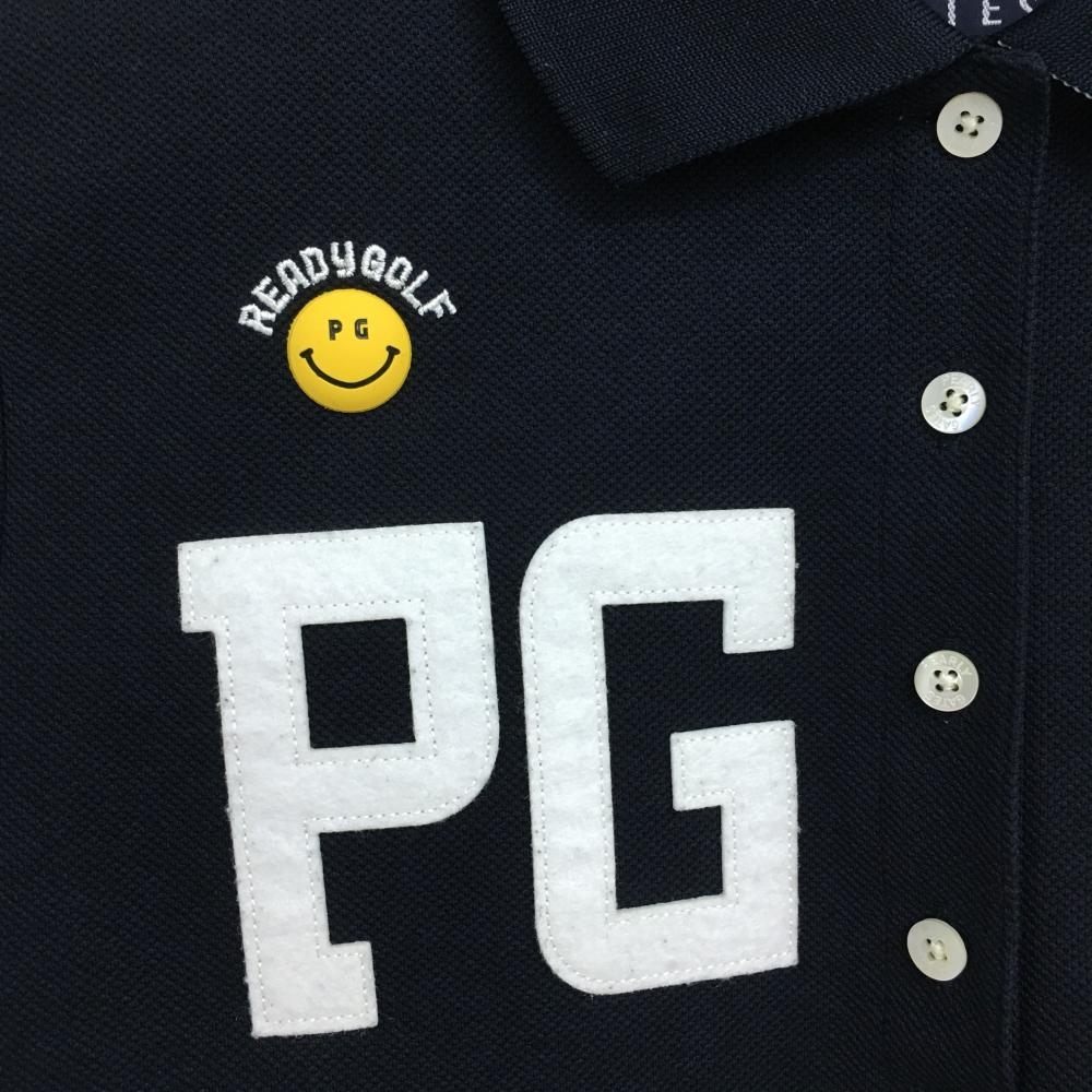 【美品】パーリーゲイツ 半袖ポロシャツ ネイビー ロゴ白 ニコちゃん スマイル レディース 1(M) ゴルフウェア PEARLY GATES