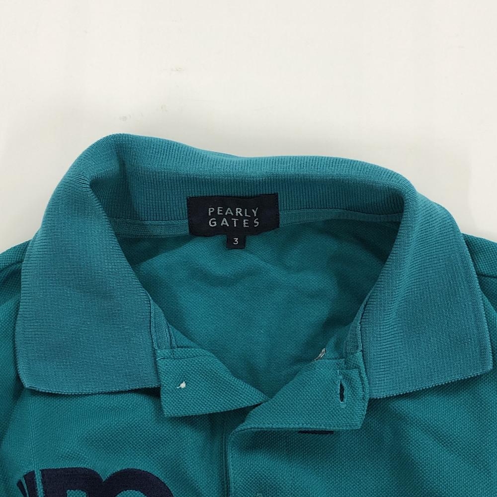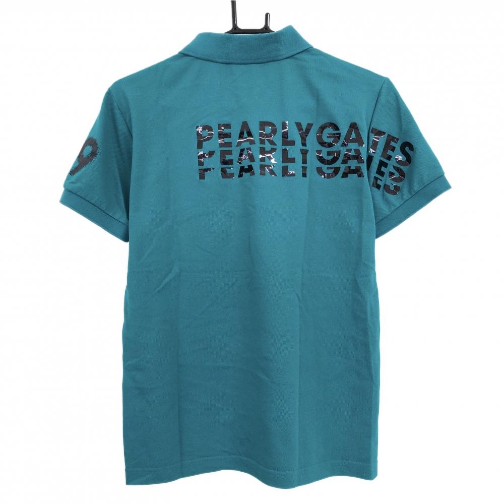 【美品】パーリーゲイツ 半袖ポロシャツ グリーン 背面ロゴ メンズ 3(S) ゴルフウェア PEARLY GATES