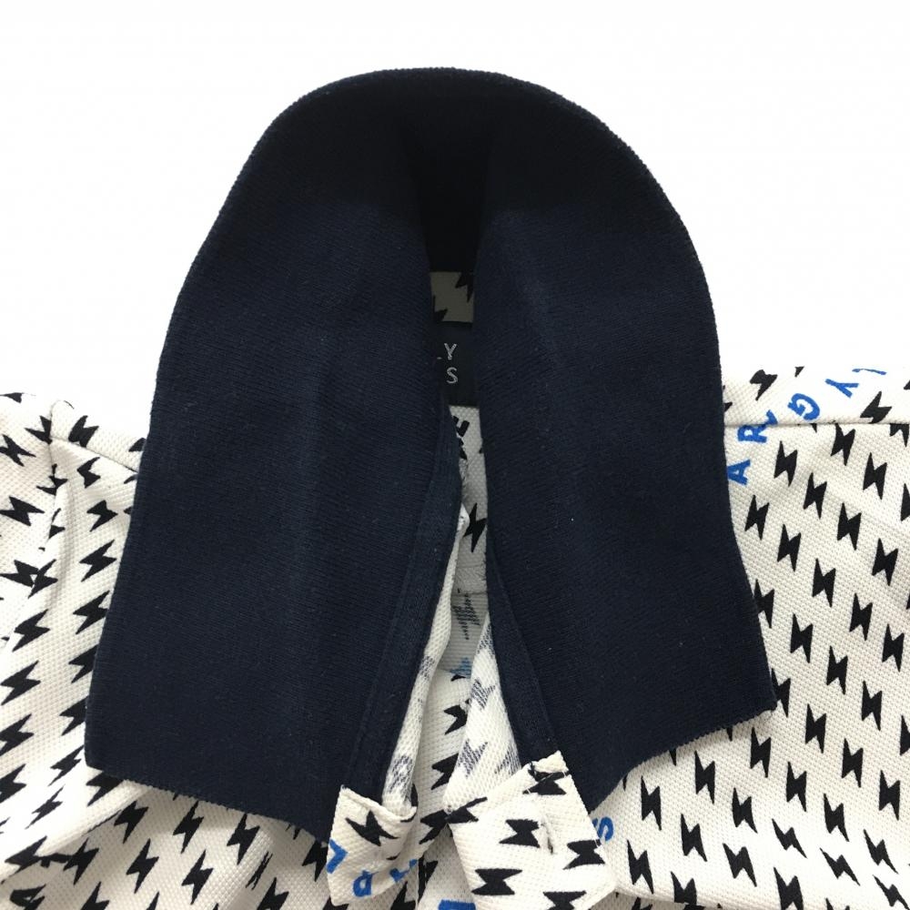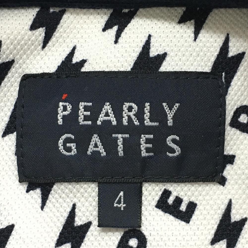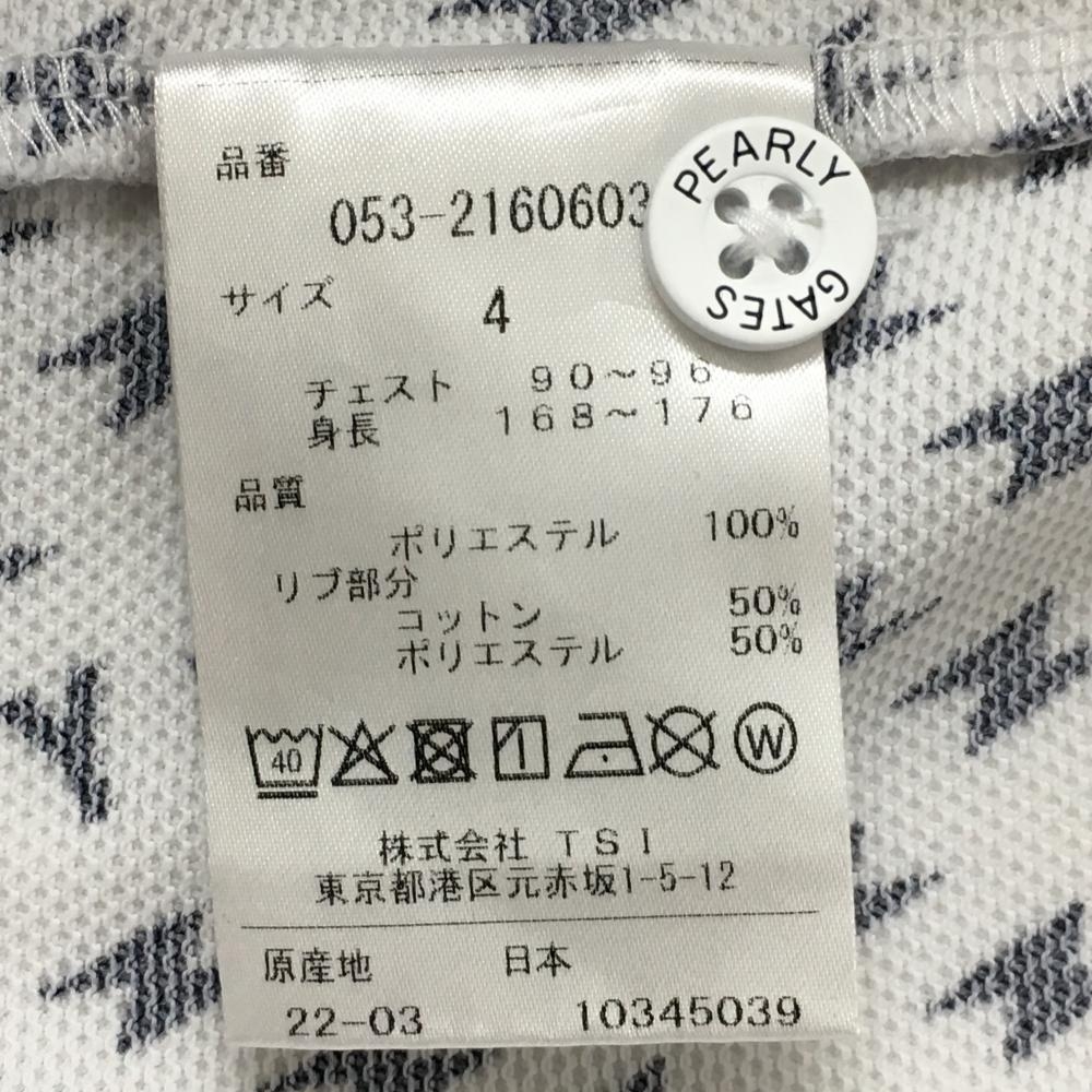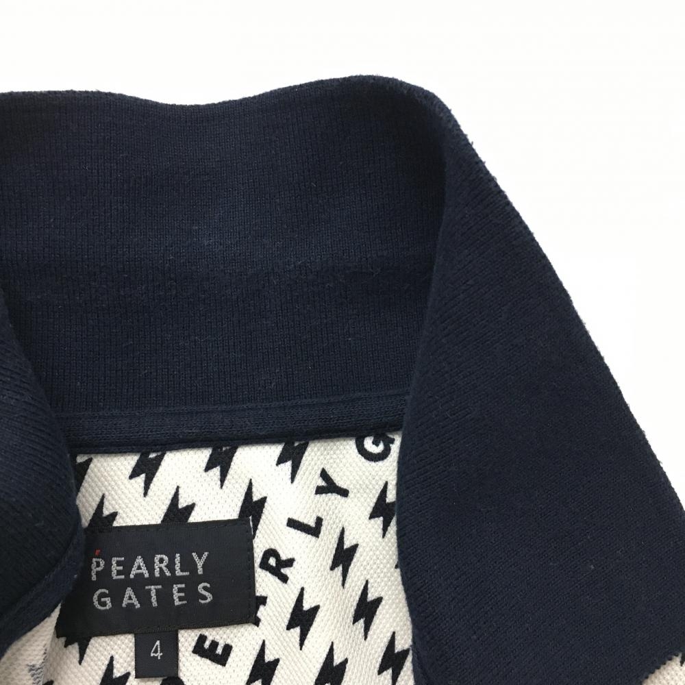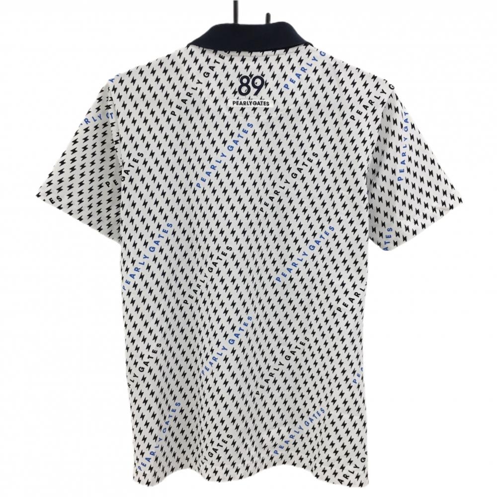 【美品】パーリーゲイツ 半袖ポロシャツ 白×ネイビー イナズマ総柄 ロゴワッペン メンズ 4 ゴルフウェア PEARLY GATES