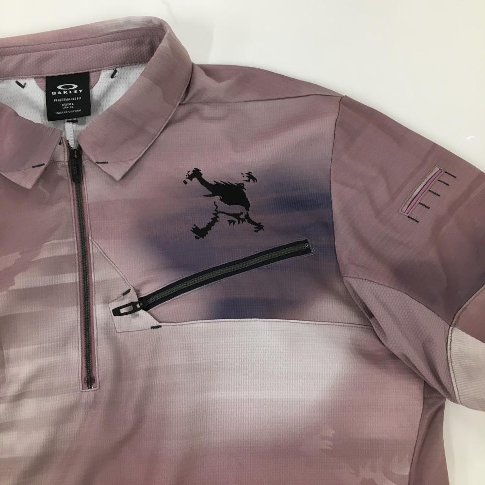 【超美品】オークリー 半袖ポロシャツ ピンク系 グラデーション風 ハーフジップ メンズ XL ゴルフウェア 2023年モデル Oakley