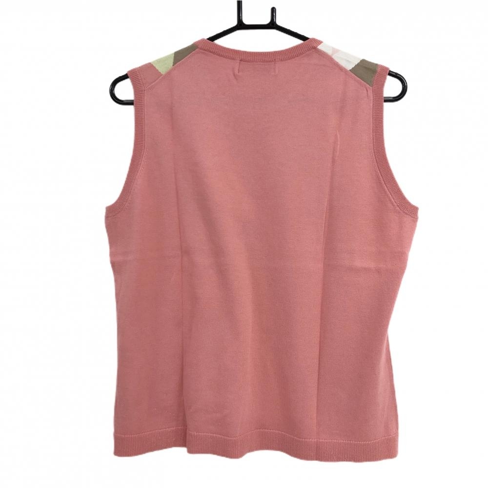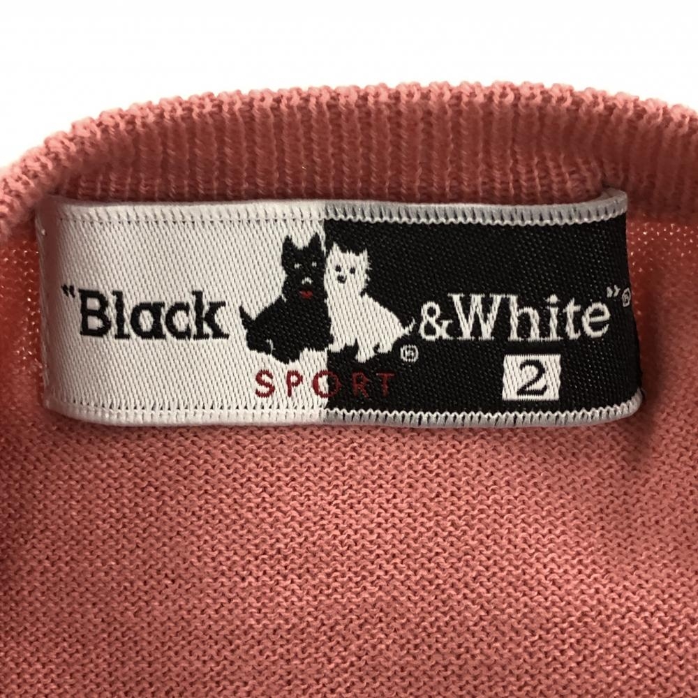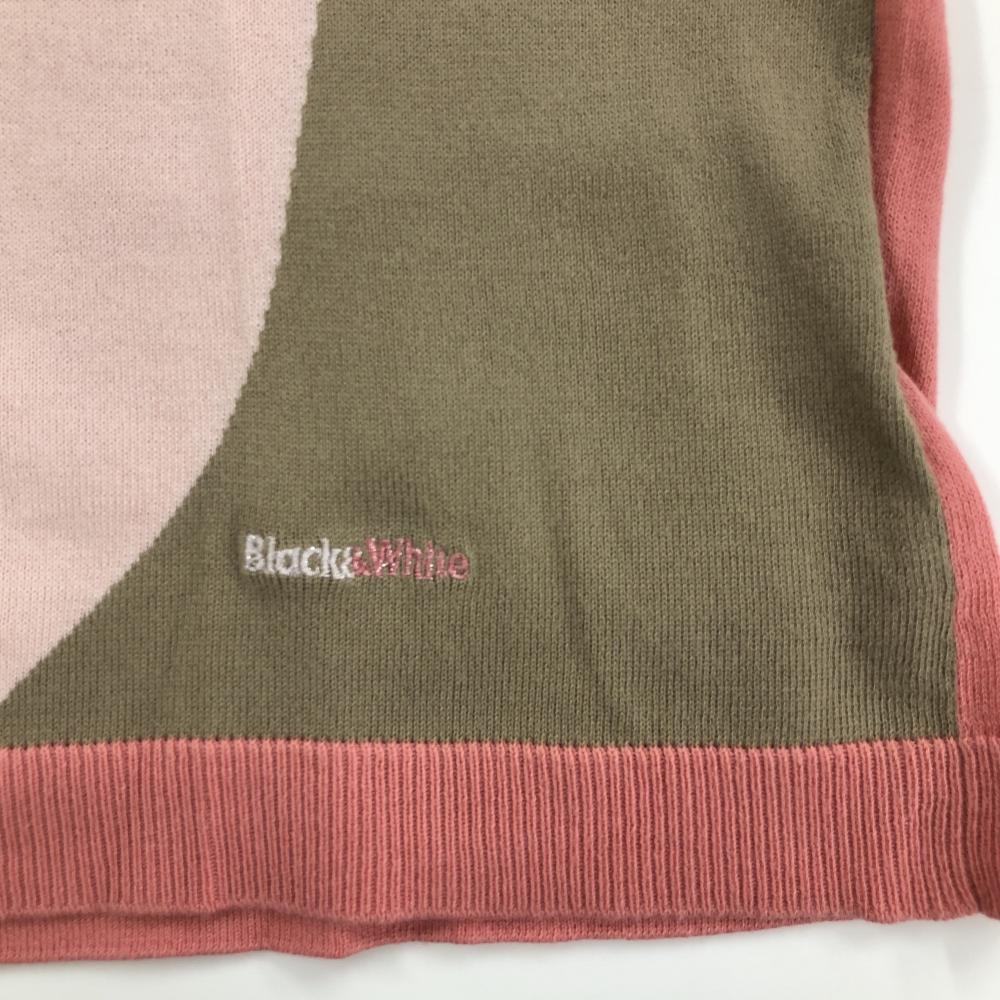 ブラックアンドホワイト ニットベスト ピンク×ライトグリーン 前面総柄 コットン100% レディース 2(M) ゴルフウェア Black&White