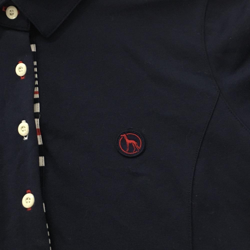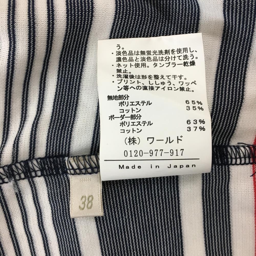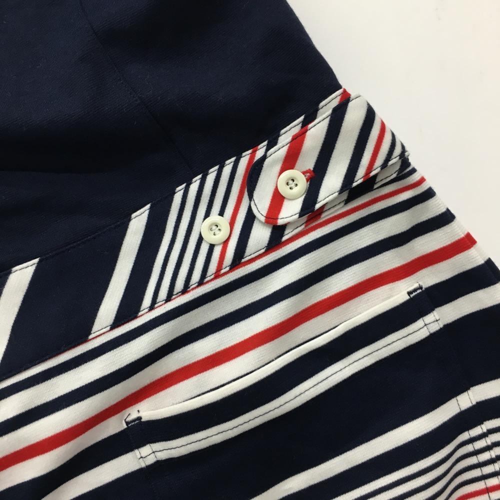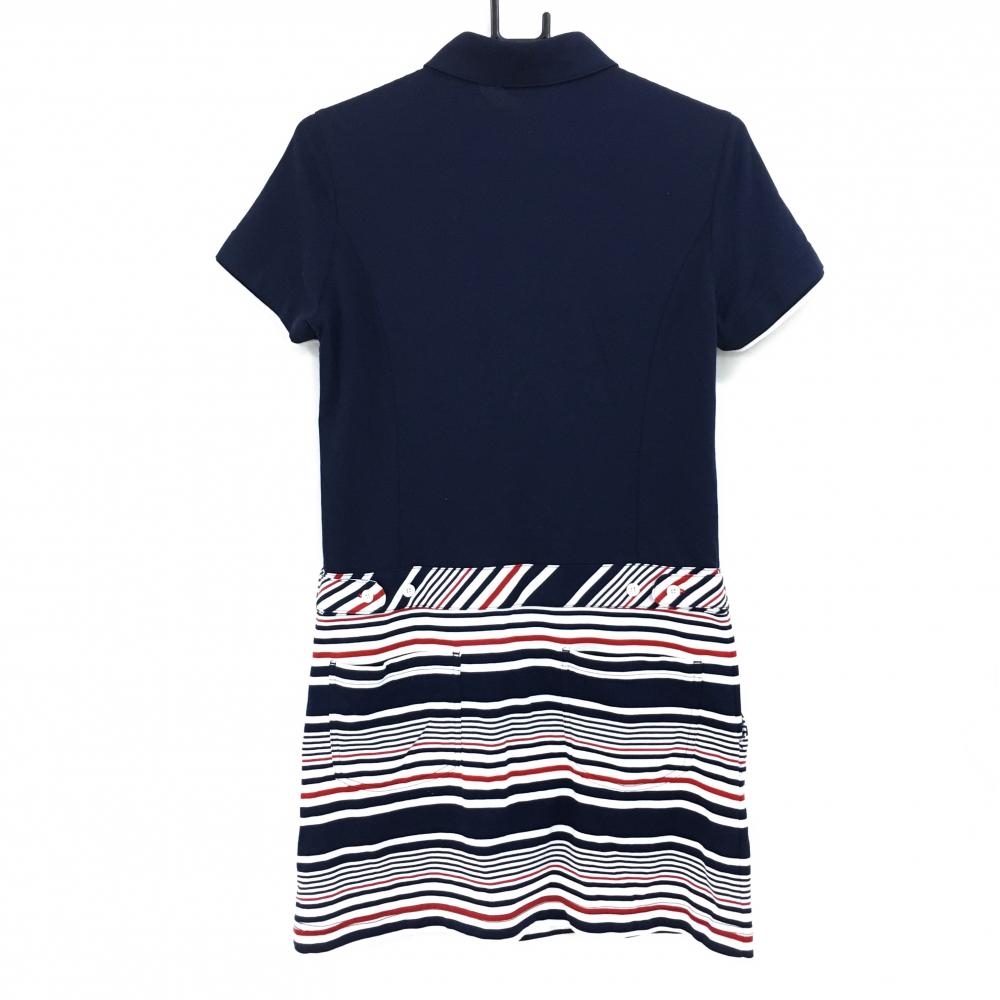 【超美品】アダバット 半袖ポロワンピース ネイビー×白 スカート部ボーダー インナーパンツ付 レディース 38(M) ゴルフウェア adabat