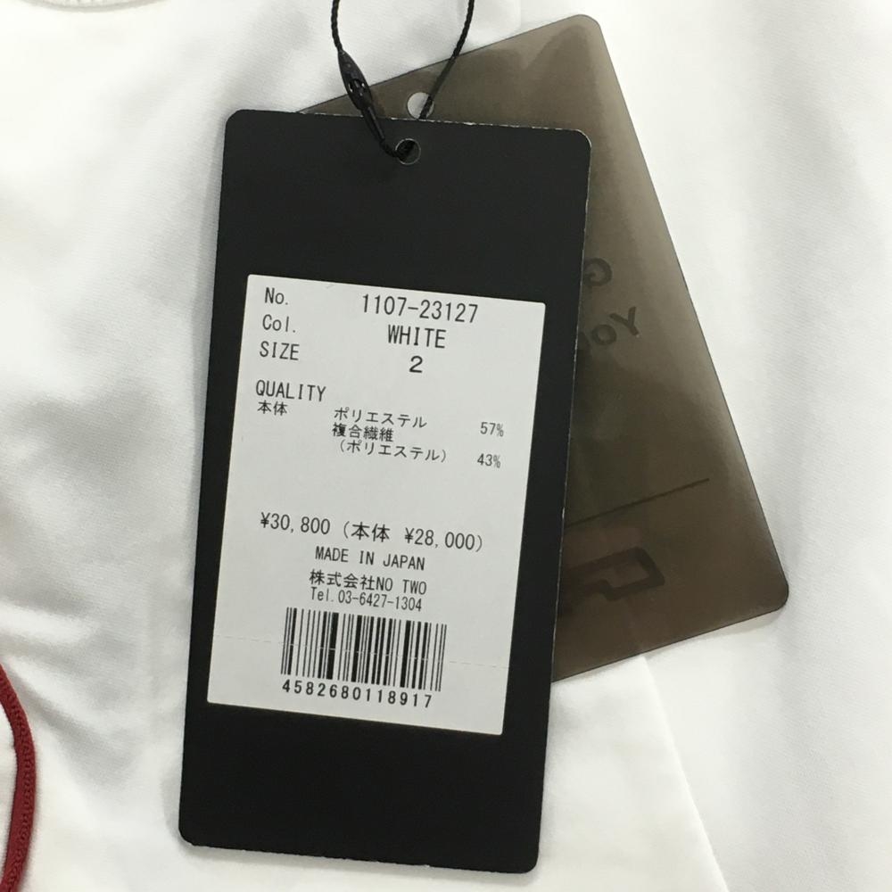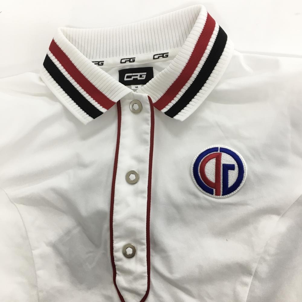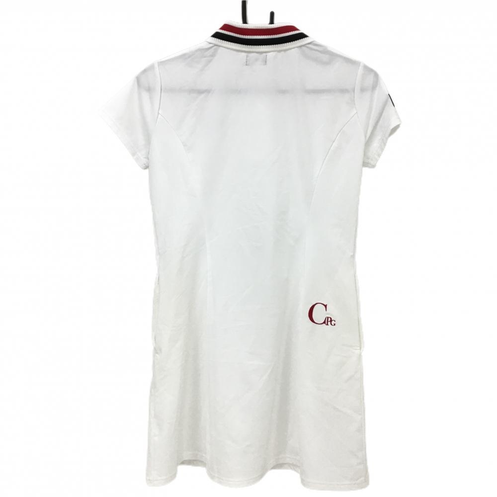 【未使用品】CPG 半袖ポロワンピース 白×レッド×黒 襟ニット スナップボタン レディース 2(M) ゴルフウェア 2023年モデル CPG