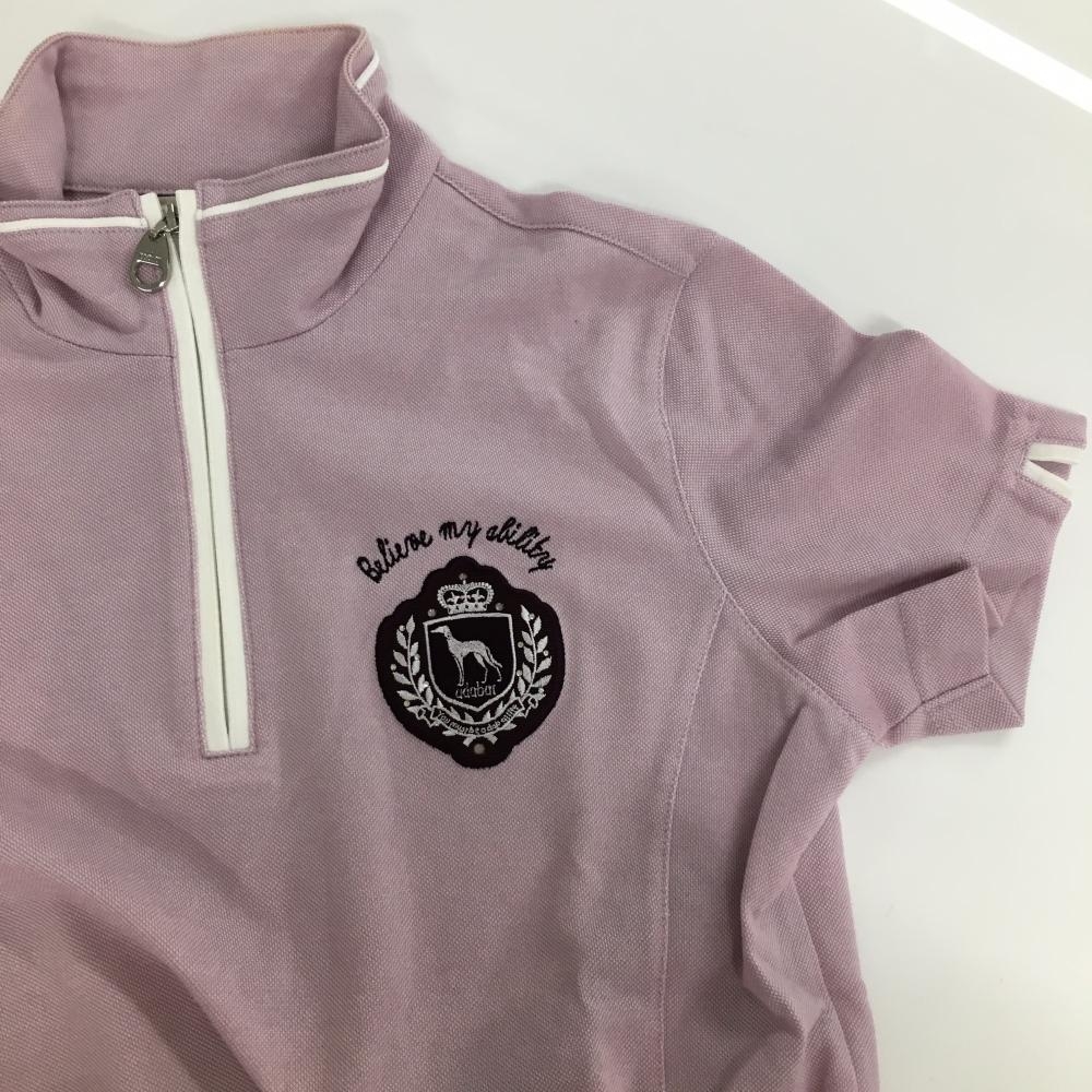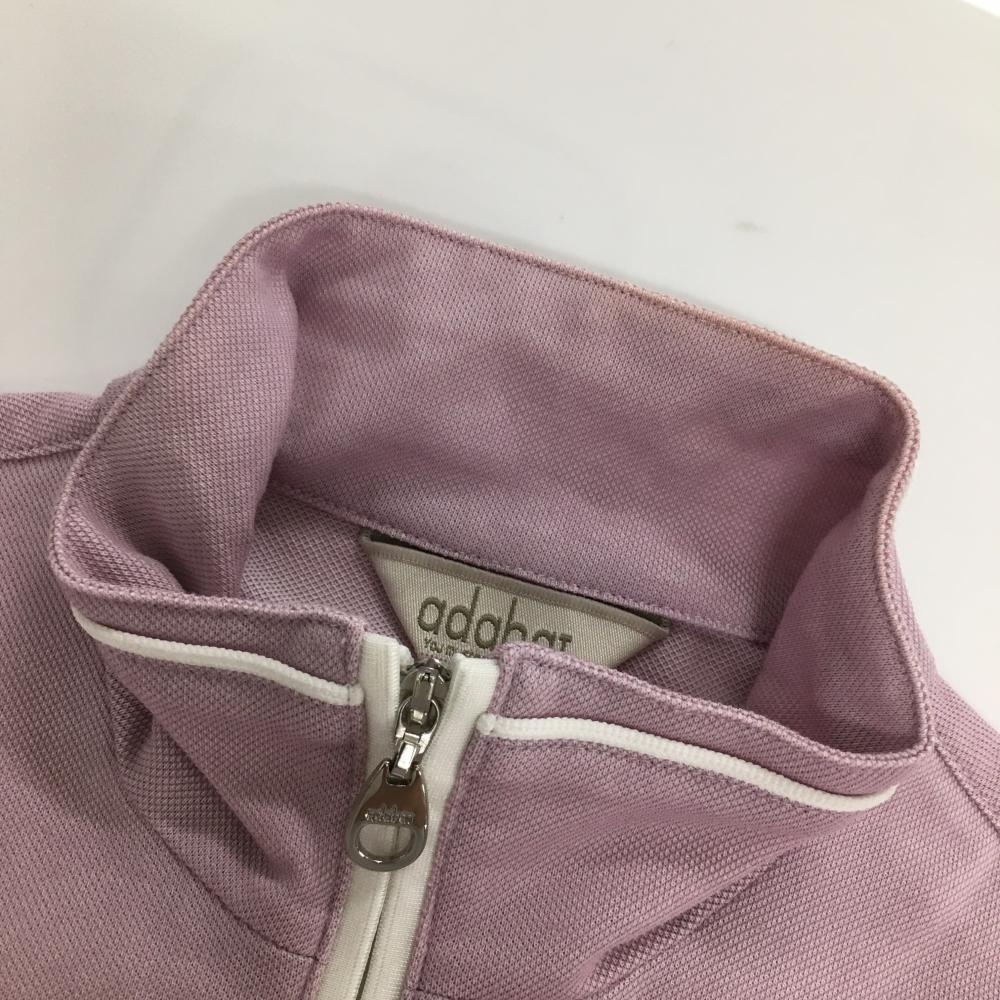 【美品】アダバット 半袖ハイネックシャツ スモーキーピンク ハーフジップ ワッペン レディース 36(S) ゴルフウェア adabat