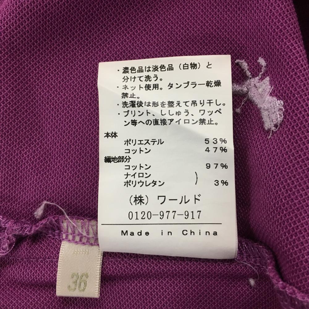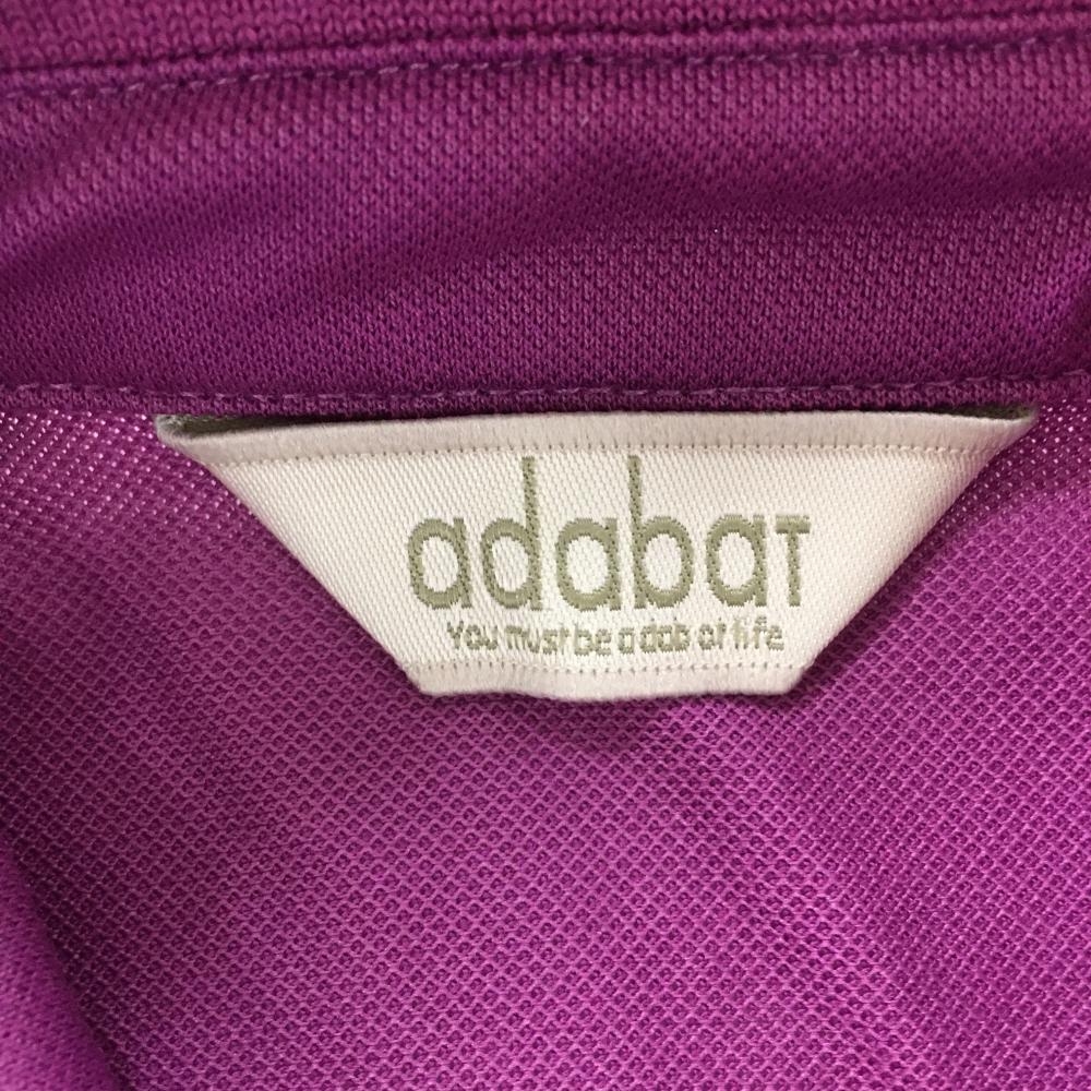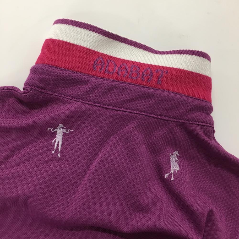 【美品】アダバット 半袖ポロシャツ パープル ゴルファー刺しゅう総柄 襟裏ロゴ スナップボタン レディース 36(S) ゴルフウェア adabat