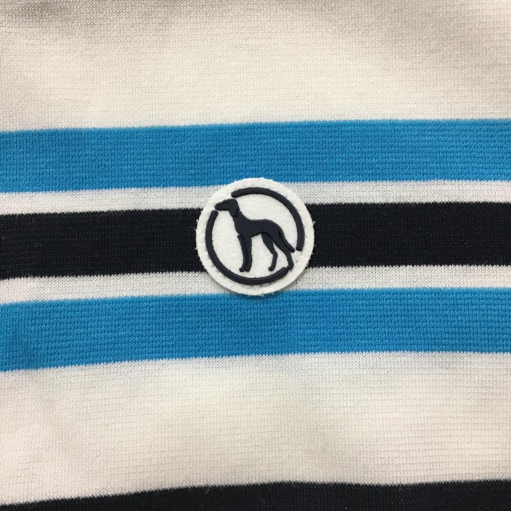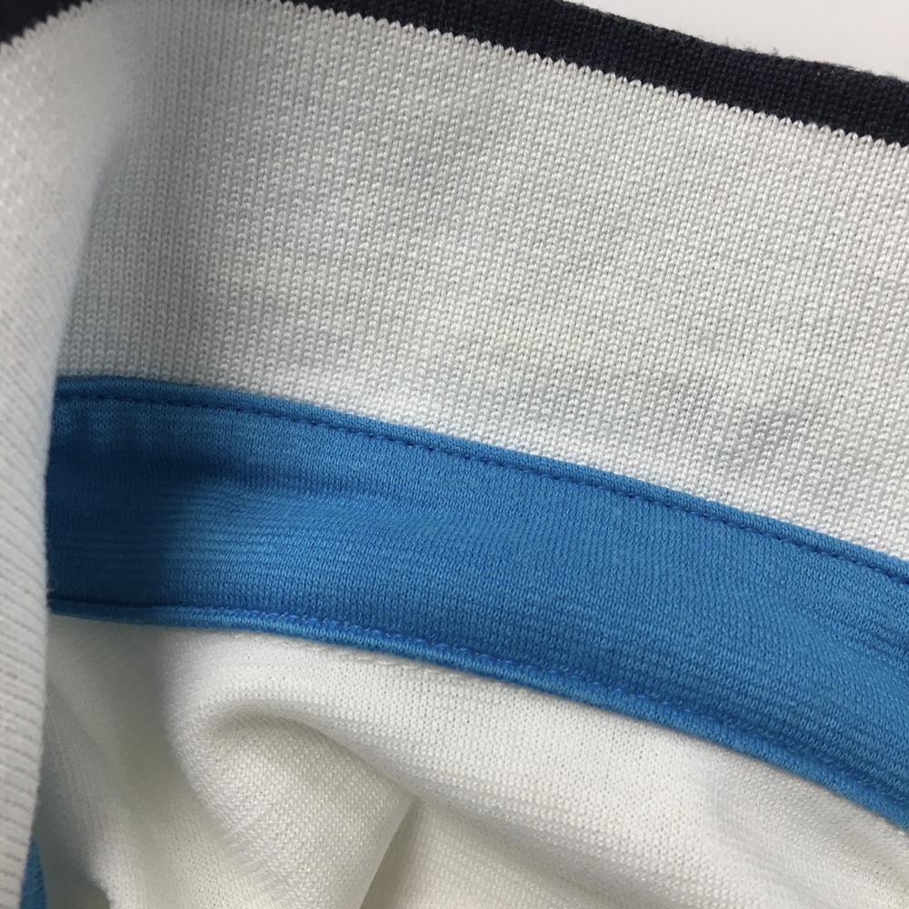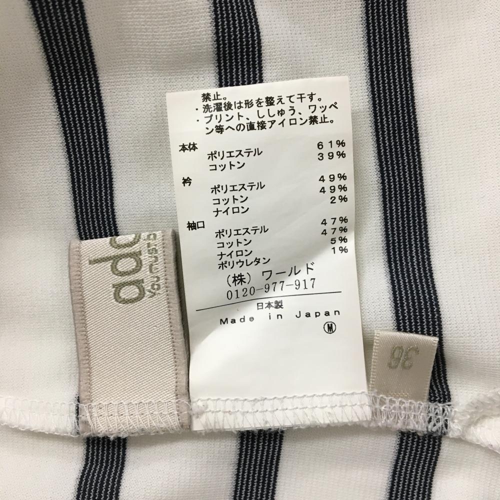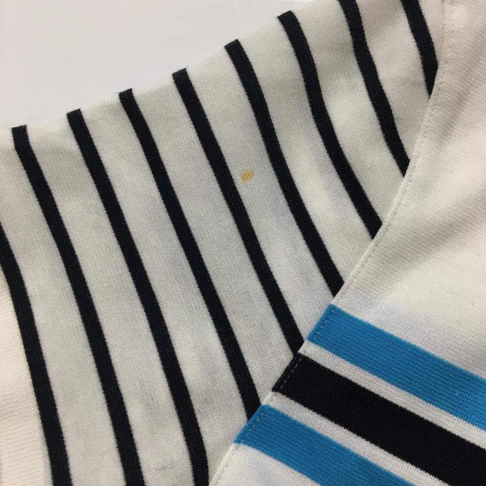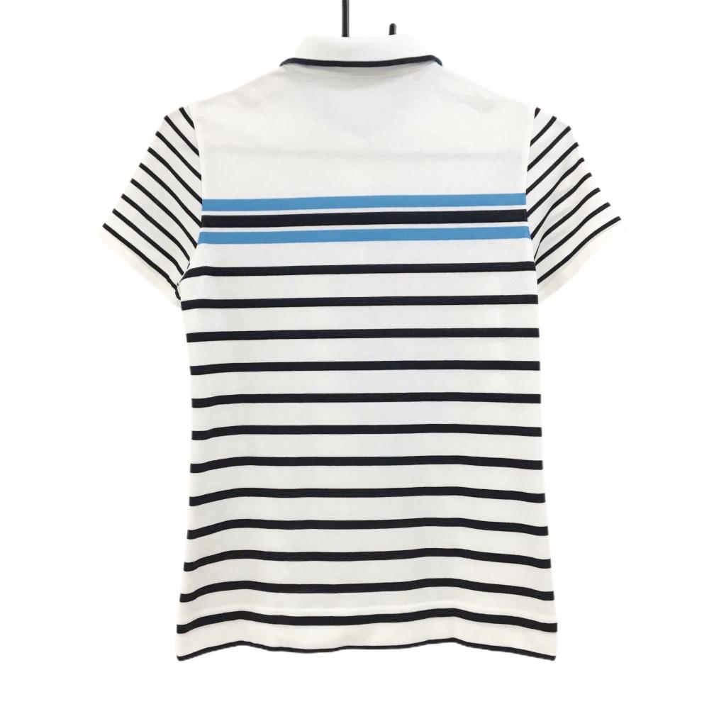 【美品】アダバット 半袖ポロシャツ 白×ネイビー ボーダー レディース 36(S) ゴルフウェア adabat