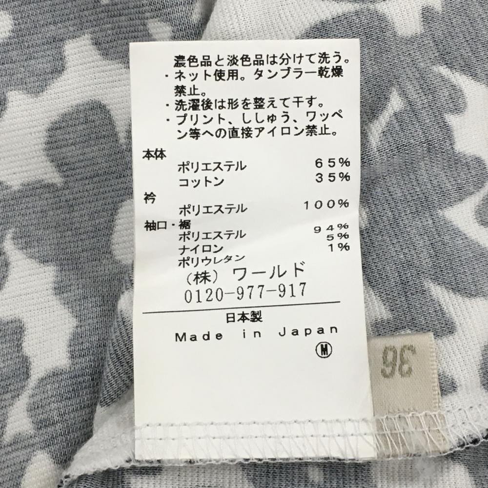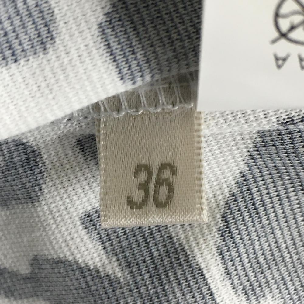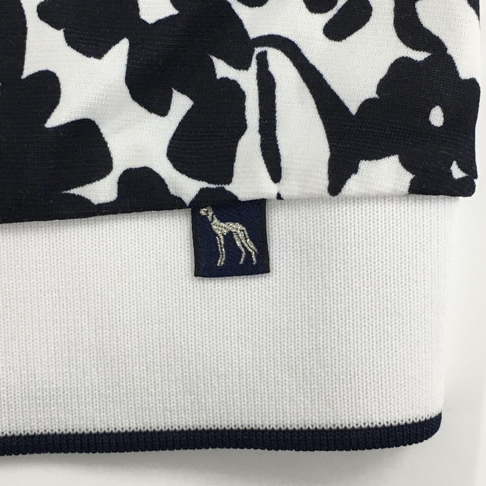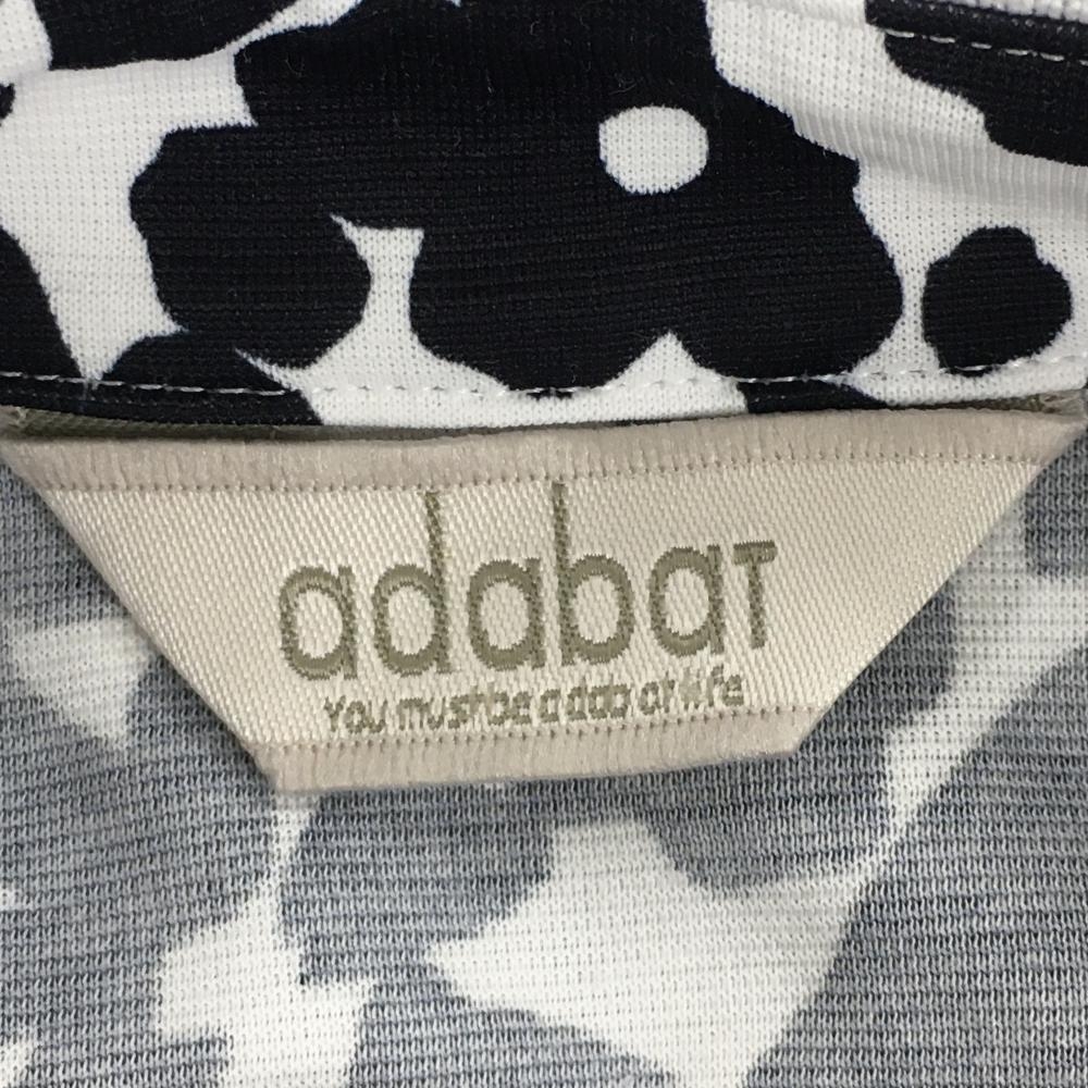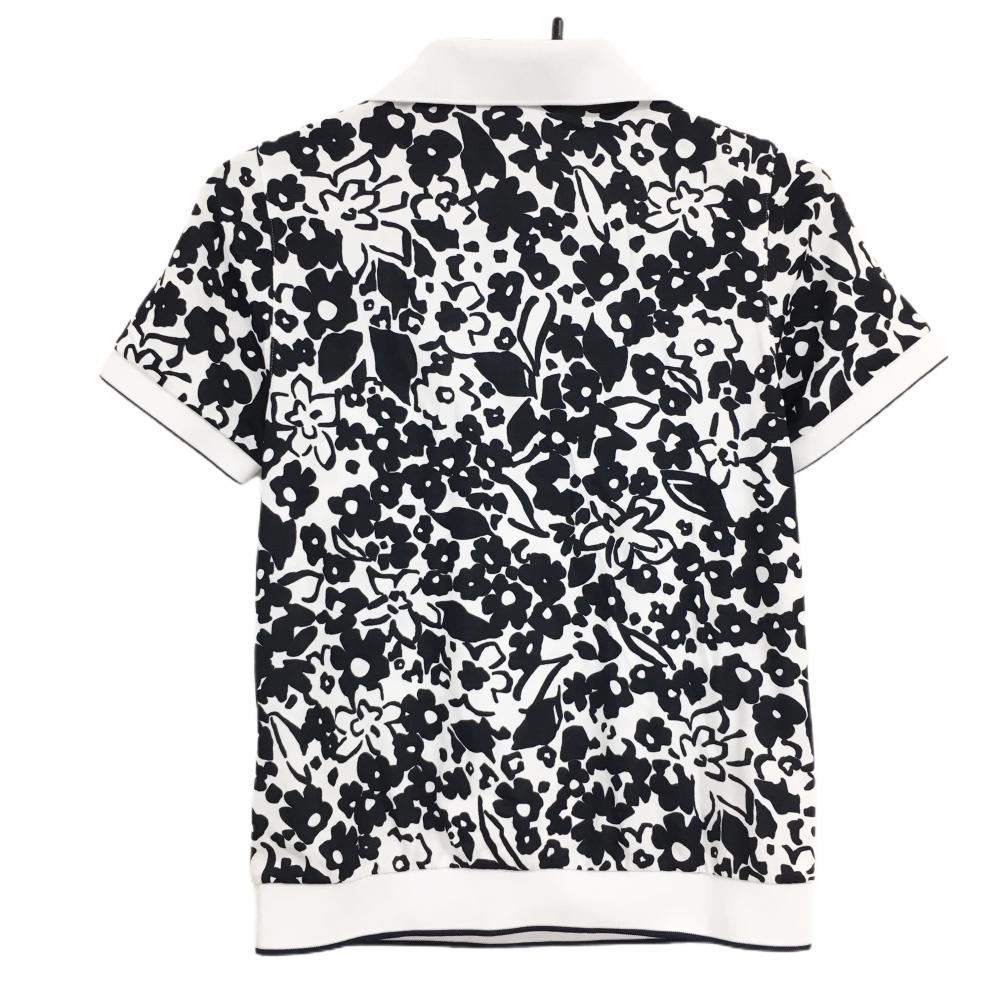 【超美品】アダバット 半袖ポロシャツ 白×黒 花柄 胸ポケット レディース 36(S) ゴルフウェア adabat