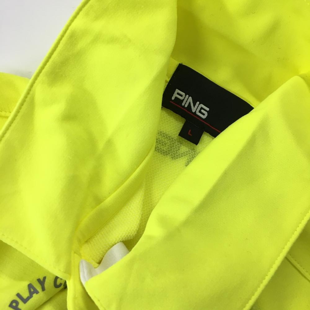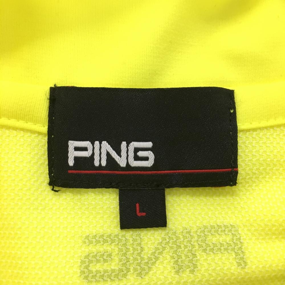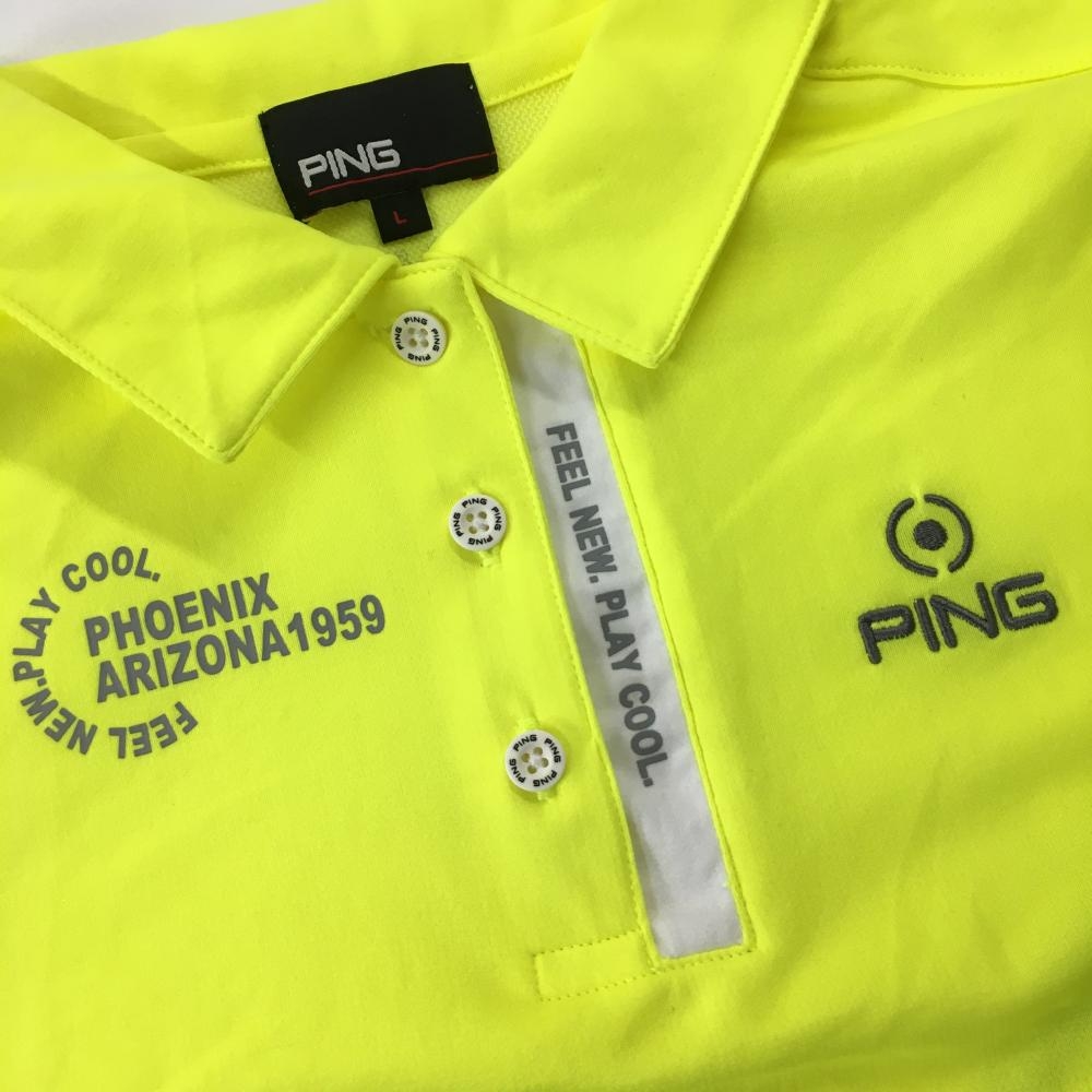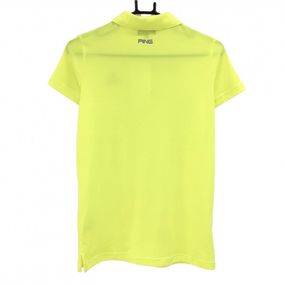 【美品】ピン 半袖ポロシャツ イエロー×グレー ロゴ刺しゅう レディース L ゴルフウェア PING