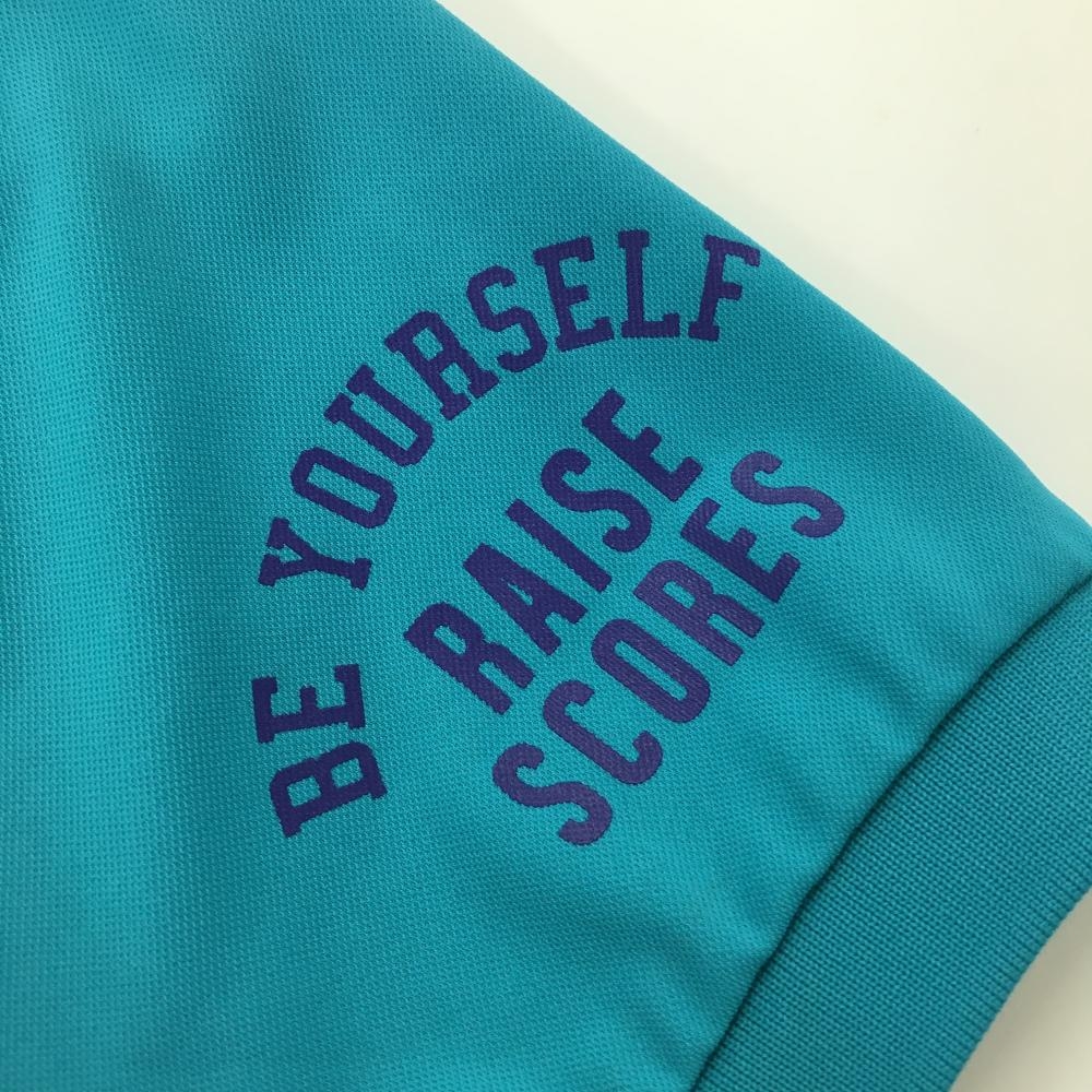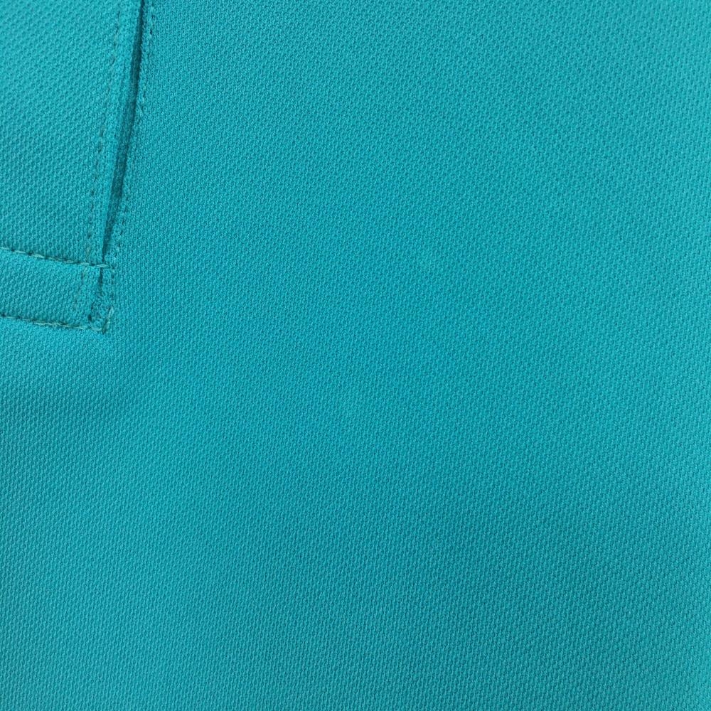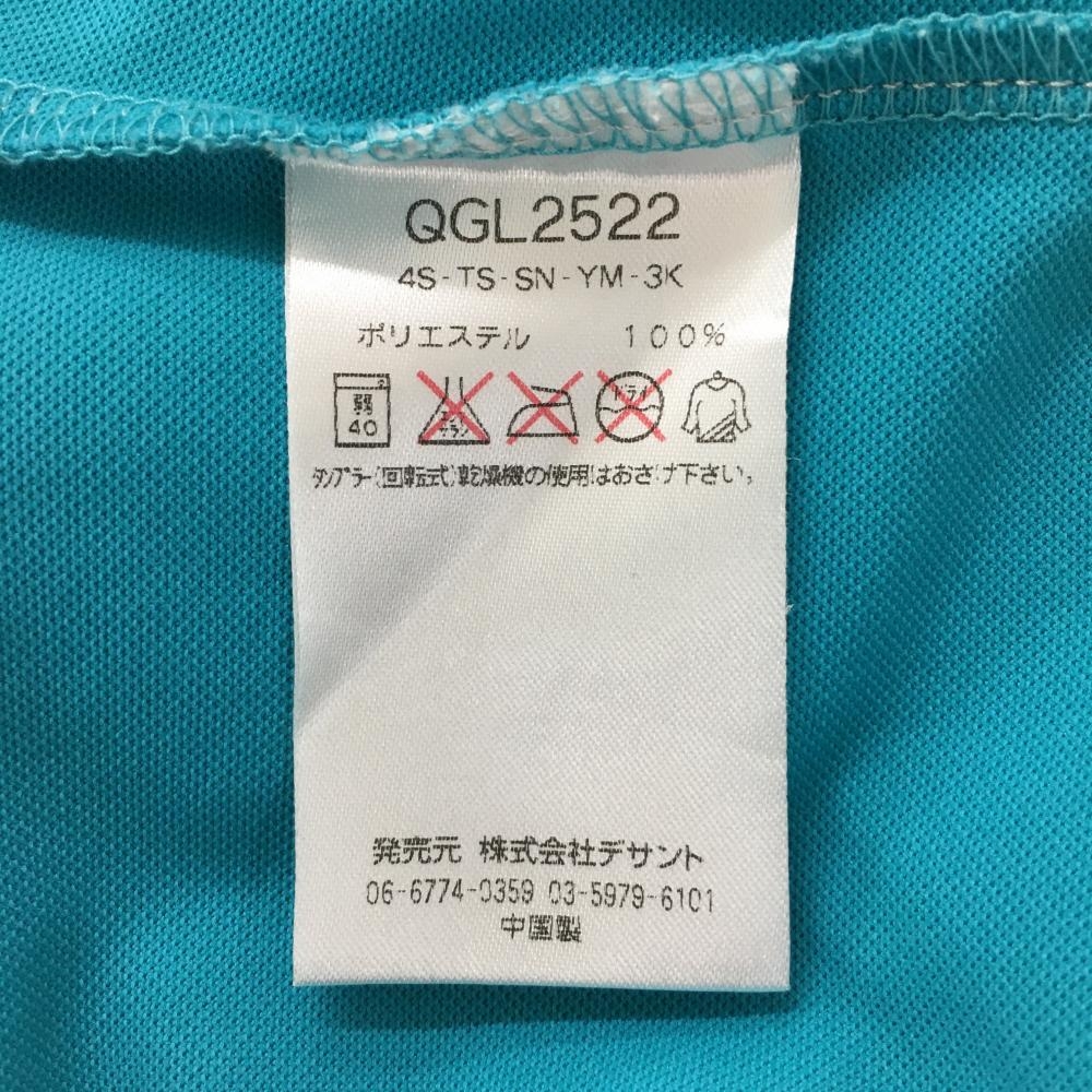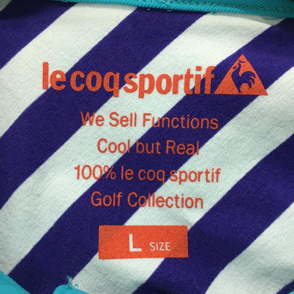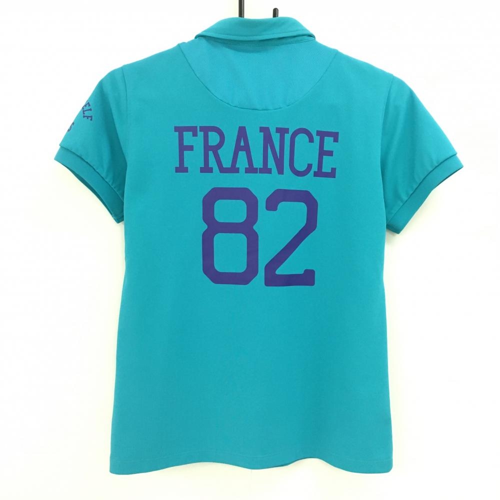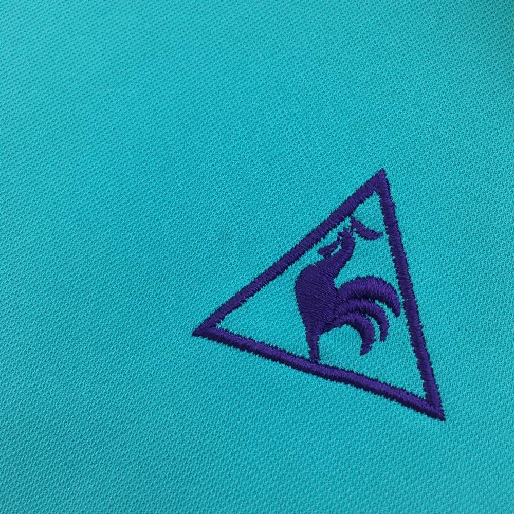 【美品】ルコックゴルフ 半袖ポロシャツ ブルーグリーン×ネイビー 胸元プリント レディース L ゴルフウェア le coq sportif
