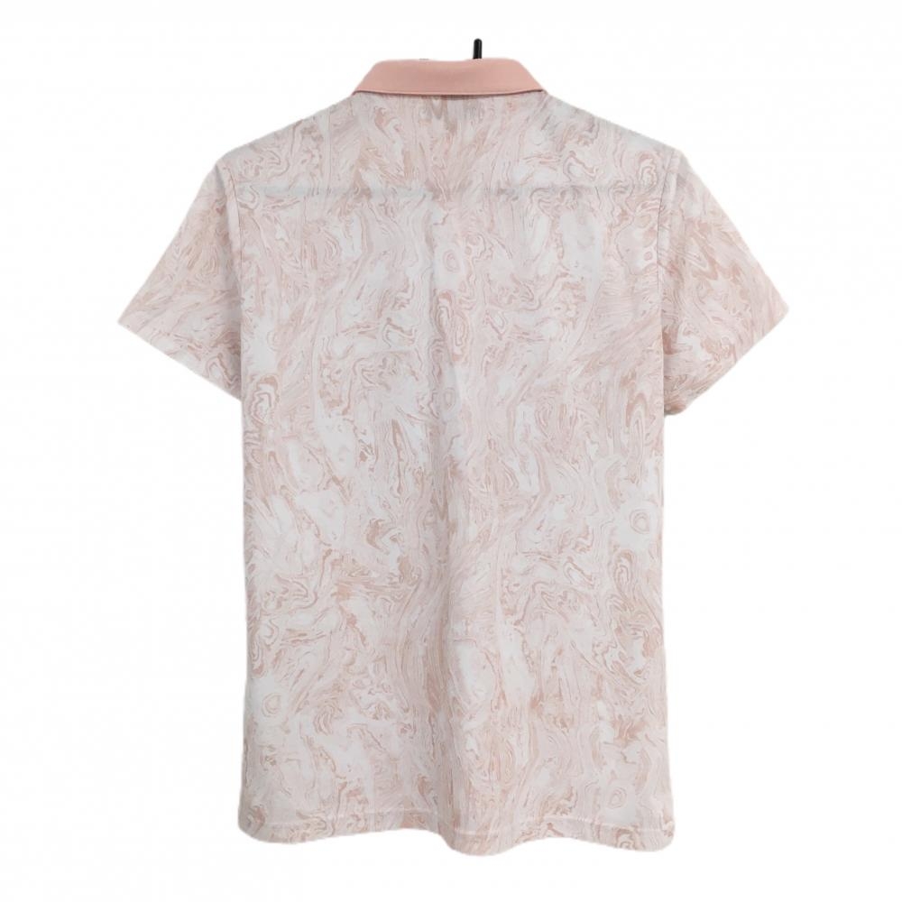 【美品】エピキュール 半袖ポロシャツ 白×ピンク 総柄 肩汚れ レディース ゴルフウェア EPICURE