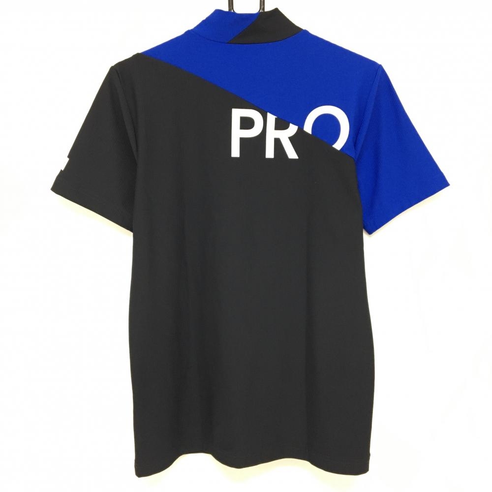 【超美品】パーリーゲイツ 半袖ハイネックシャツ 黒×ブルー バイカラー メンズ 4(M) ゴルフウェア 2024年モデル PEARLY GATES