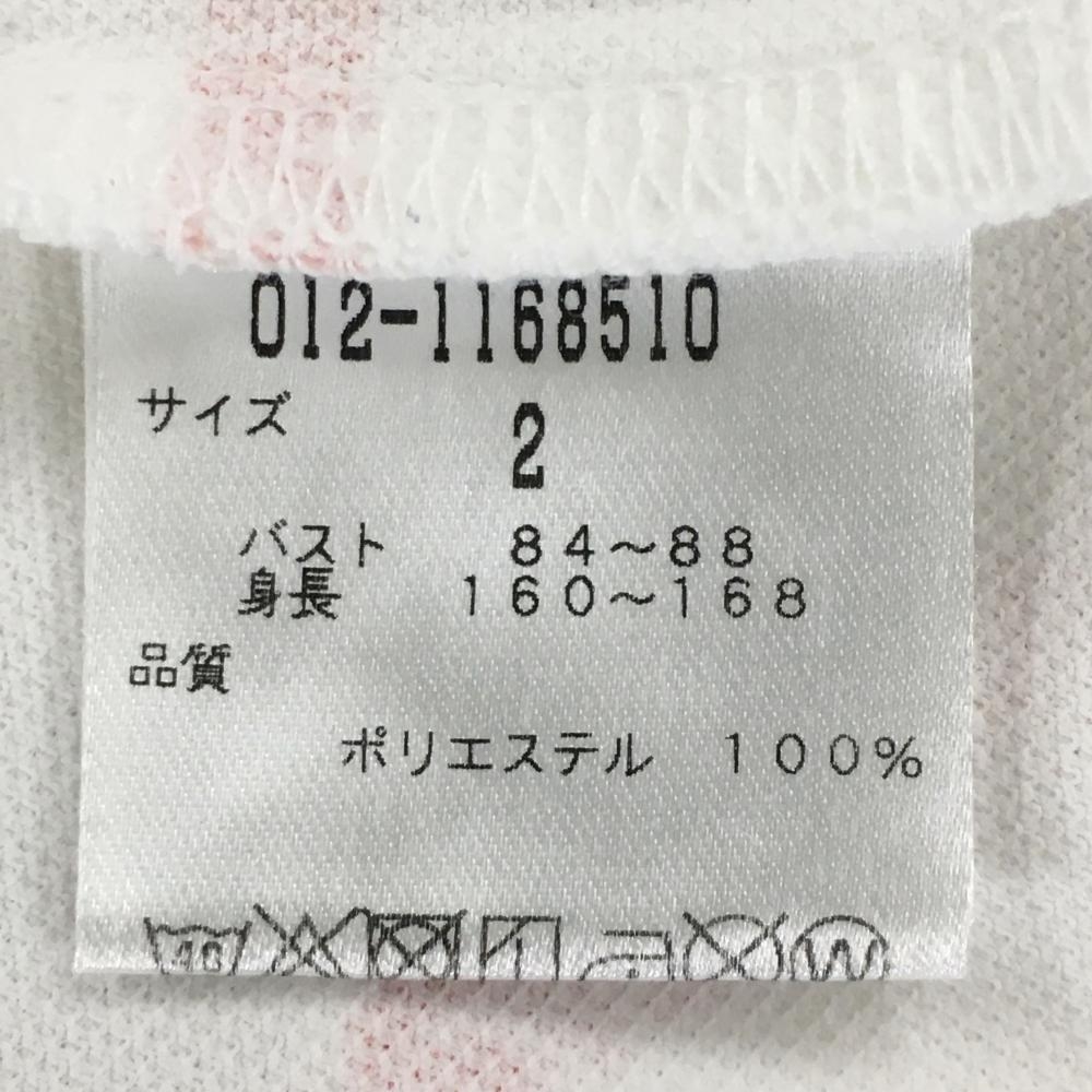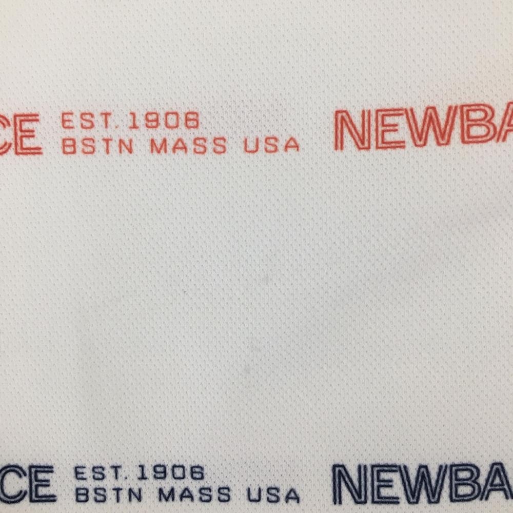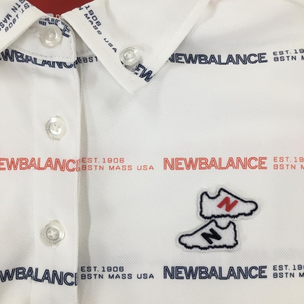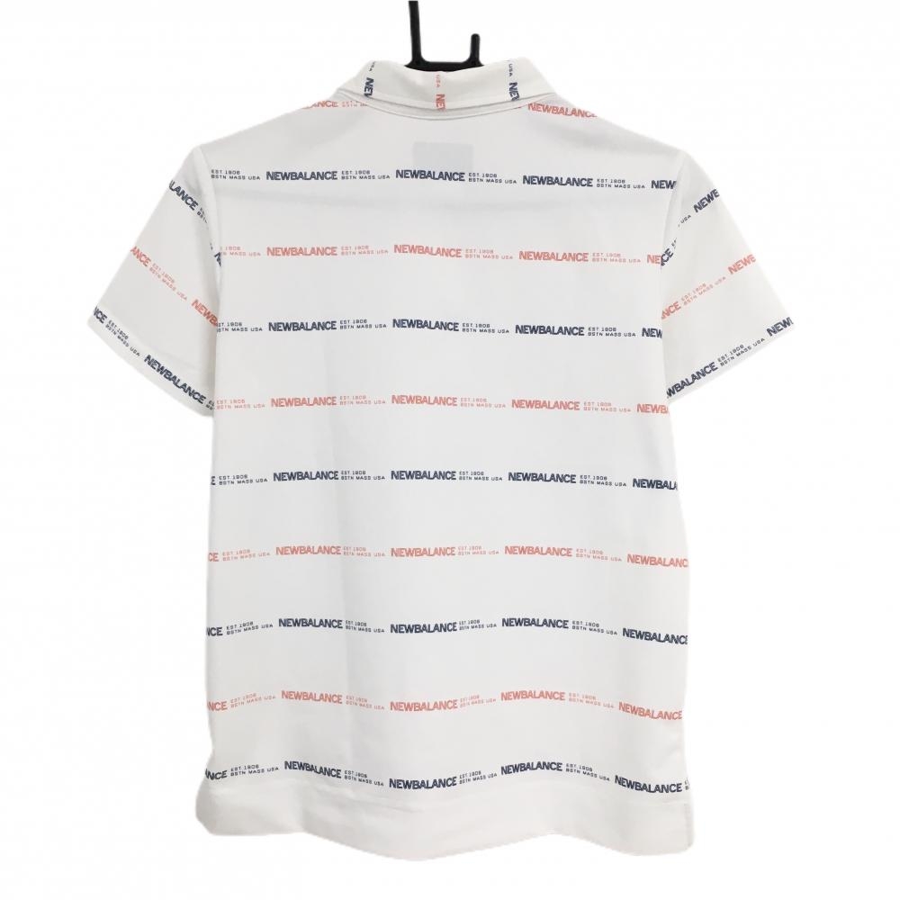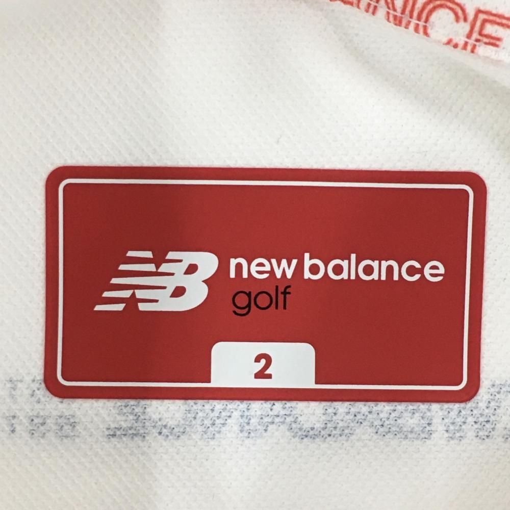 【美品】ニューバランスゴルフ 半袖ポロシャツ 白×レッド ロゴ総柄 ボーダー調 レディース 2(L) ゴルフウェア New Balance