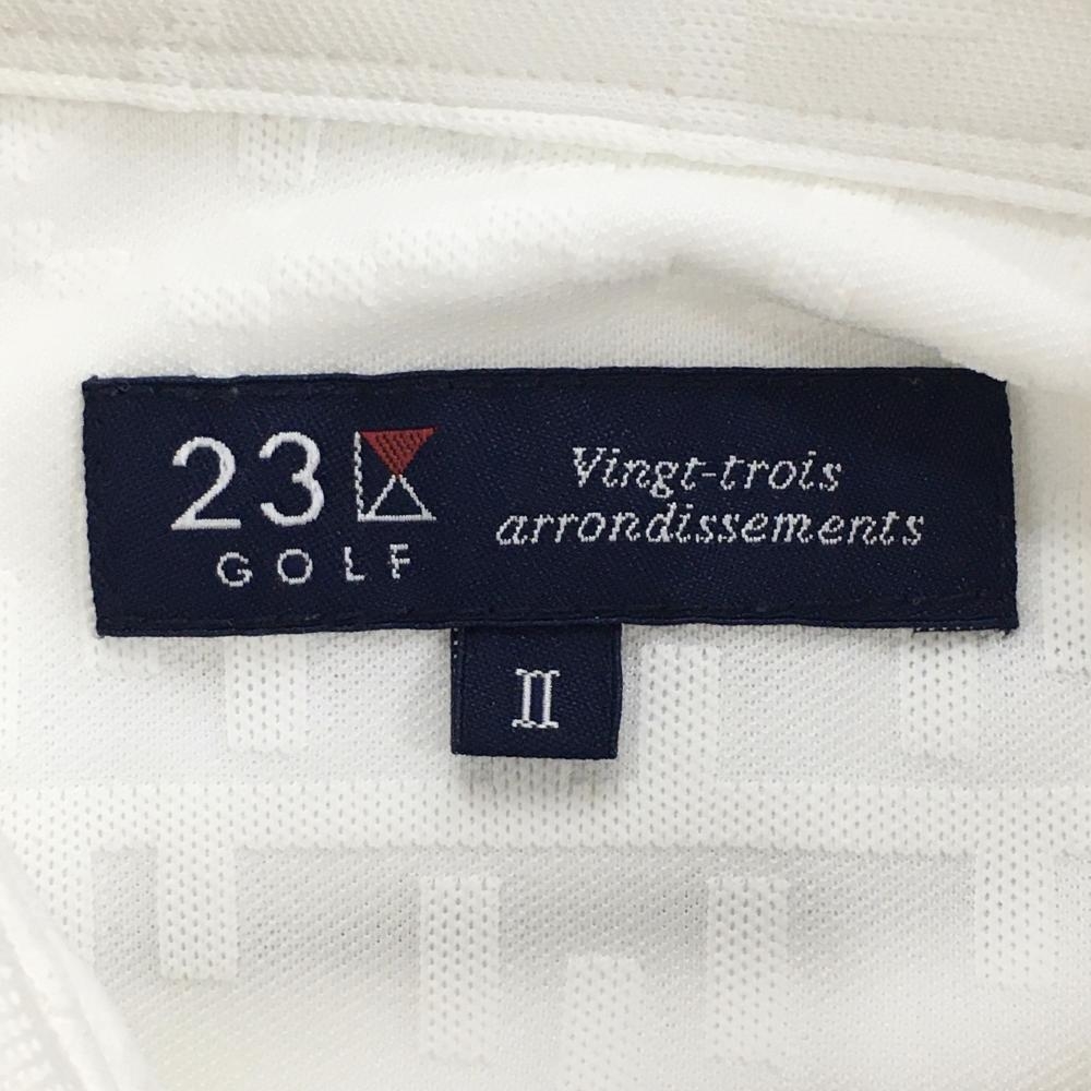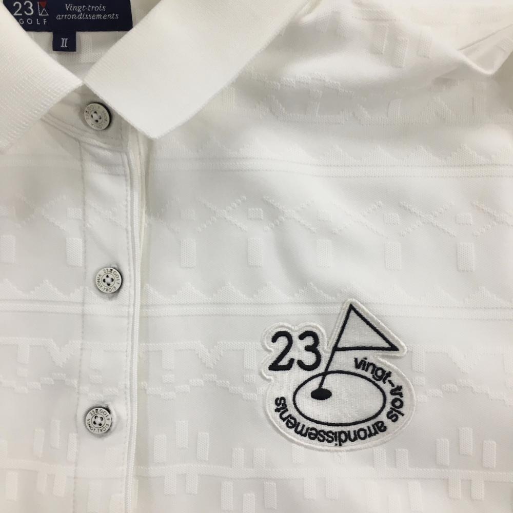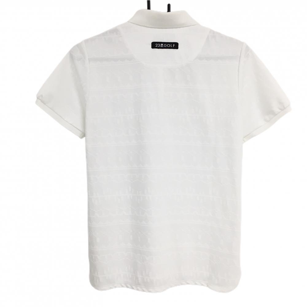 23区ゴルフ 半袖ポロシャツ 白 総柄地模様 胸元ワッペン 襟汚れ レディース II ゴルフウェア 23区