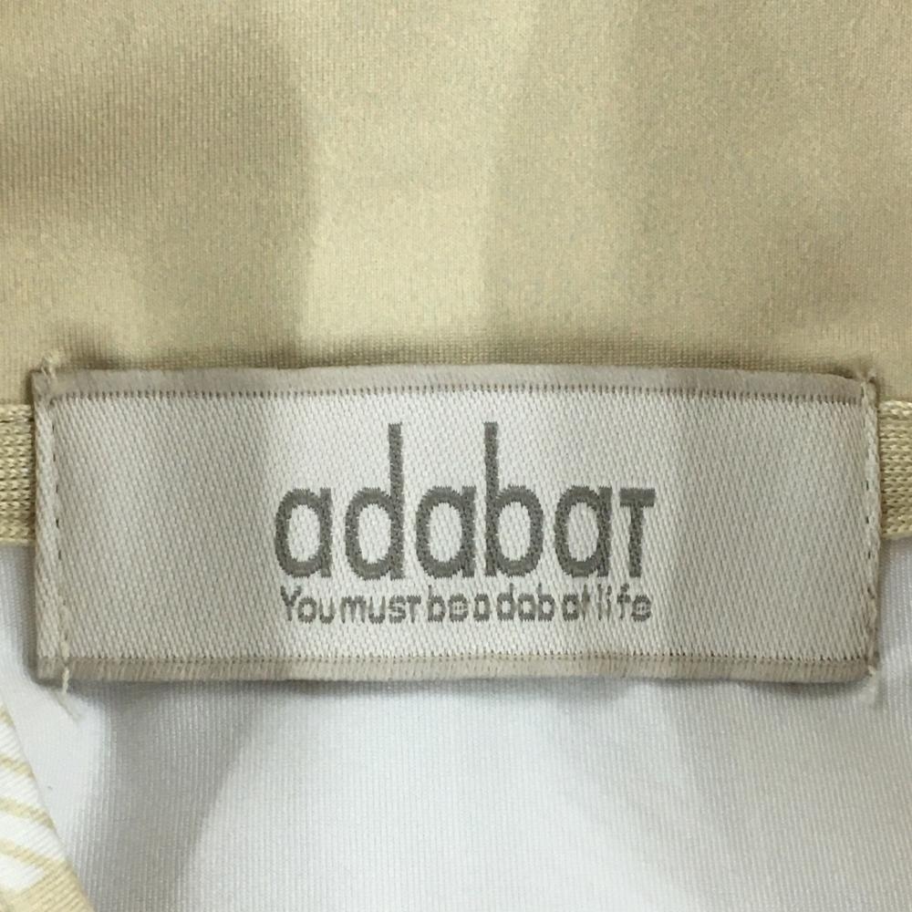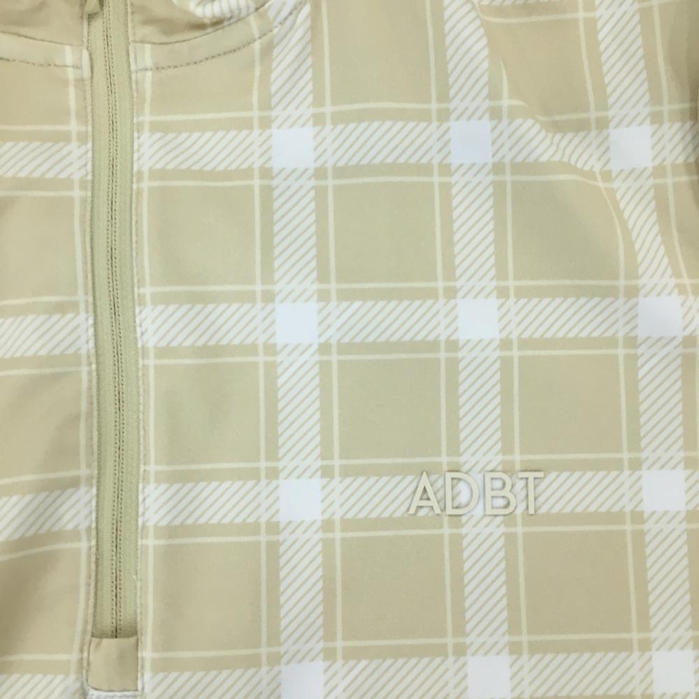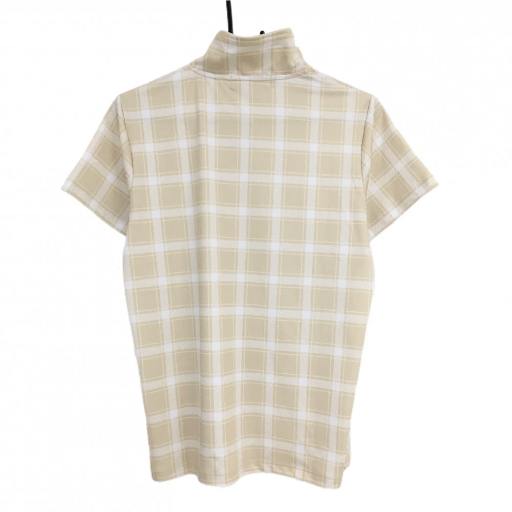 【超美品】アダバット 半袖ハイネックシャツ ベージュ×白 チェック柄 ハーフジップ 立体ロゴ レディース 38(M) ゴルフウェア adabat
