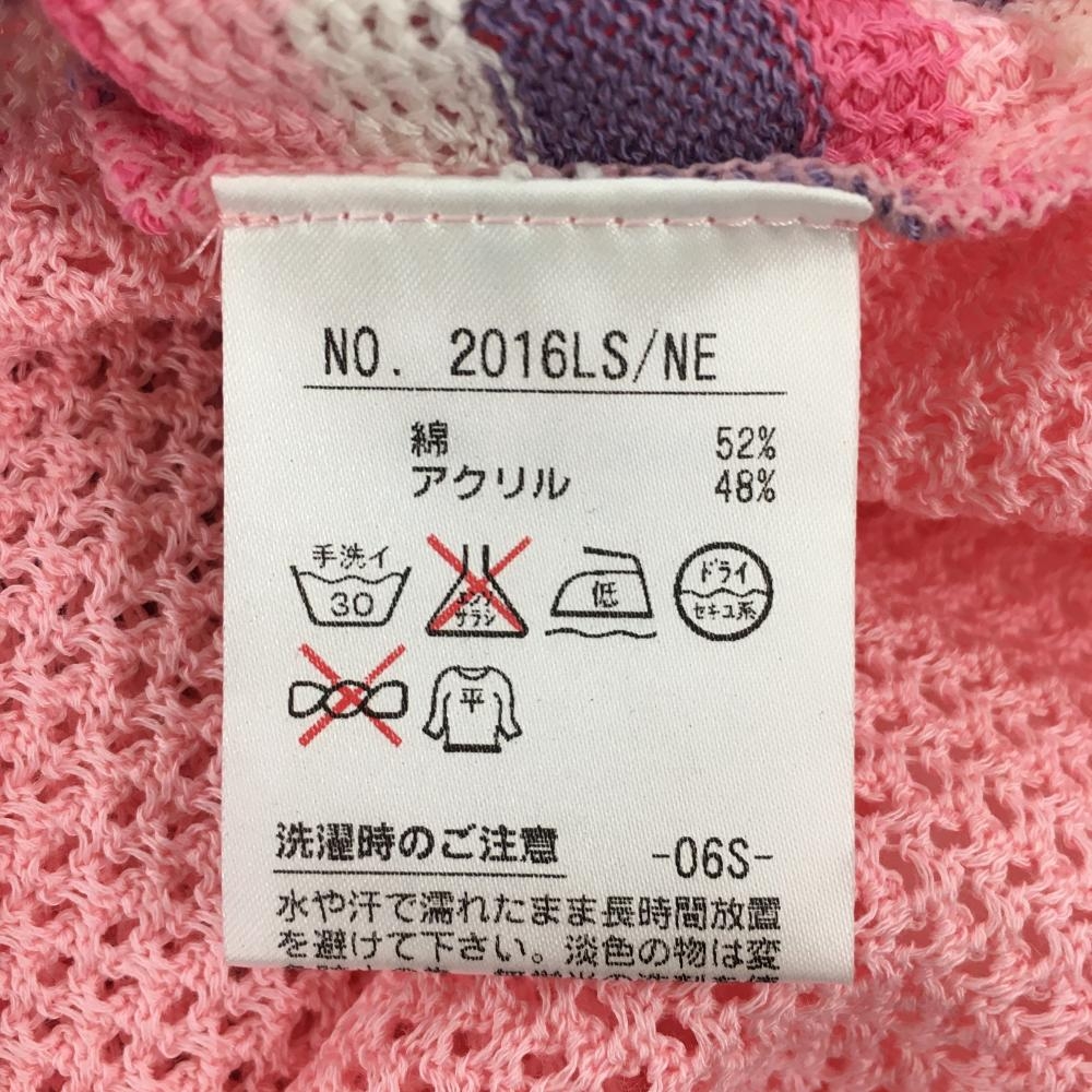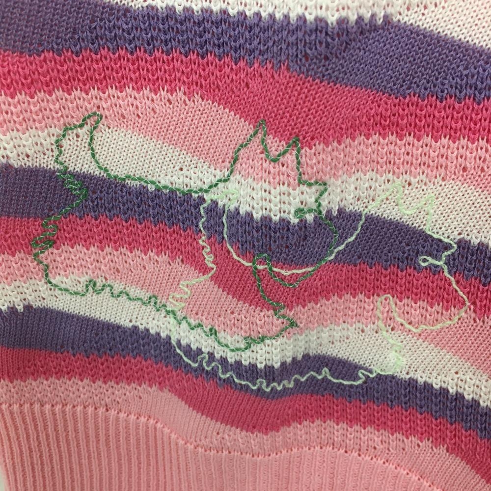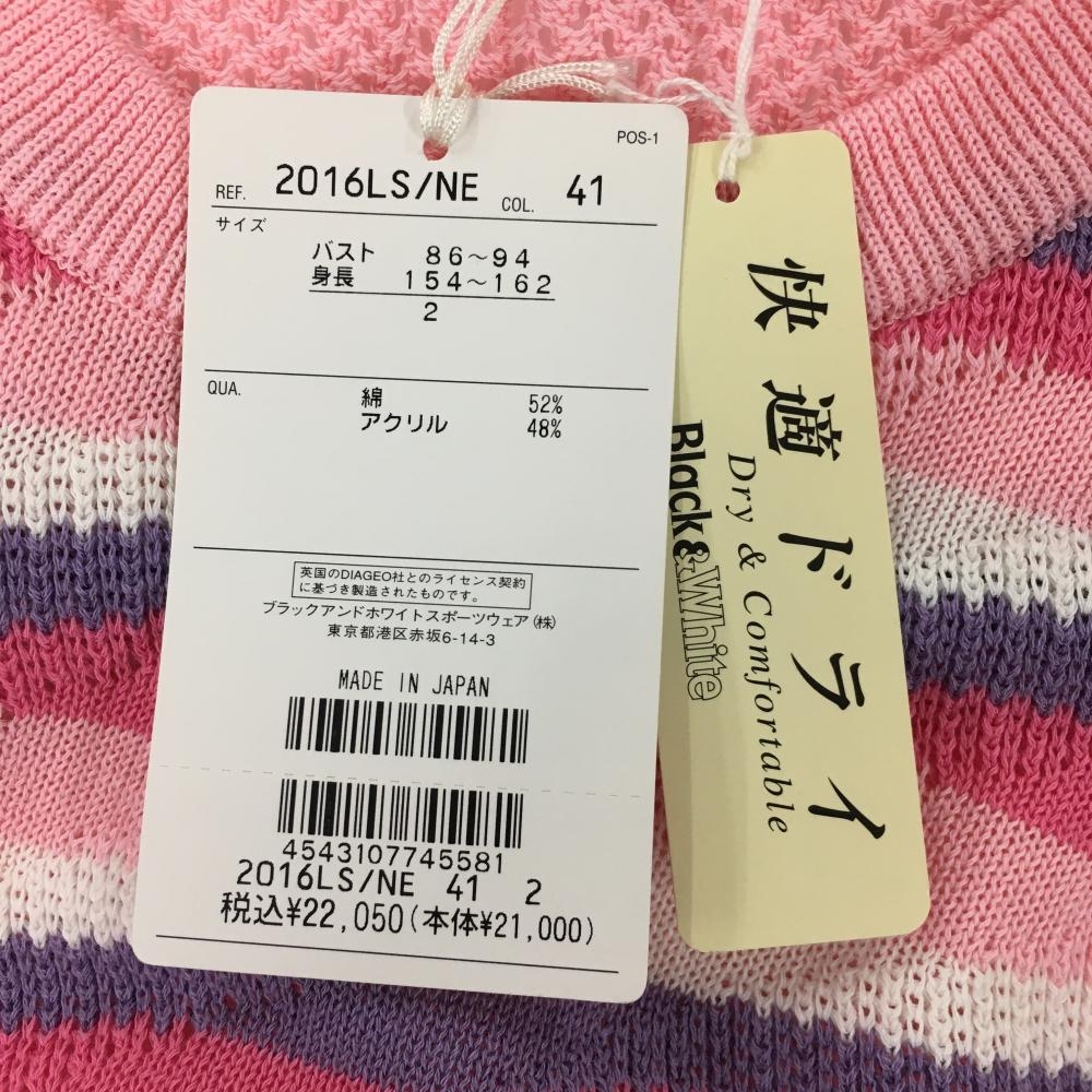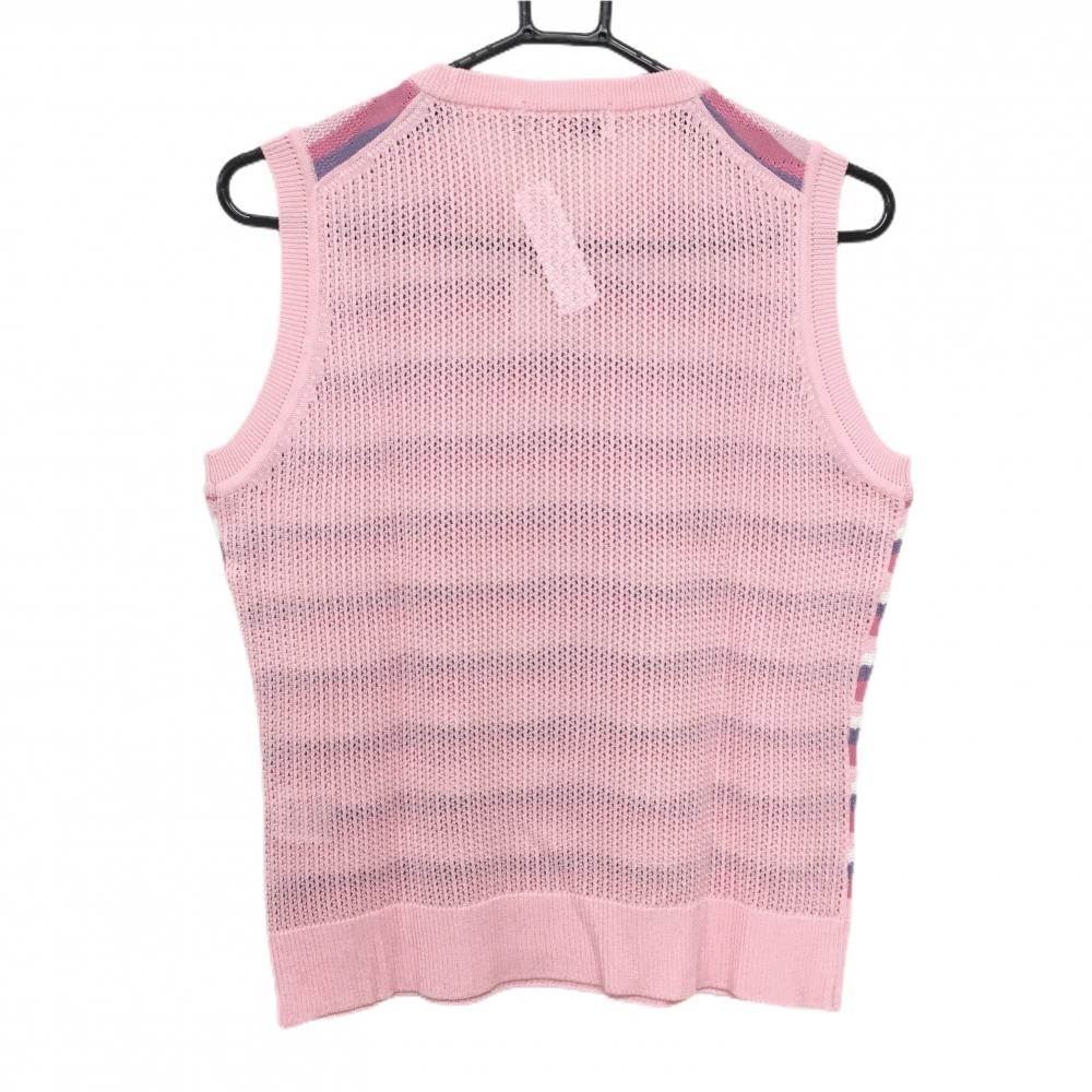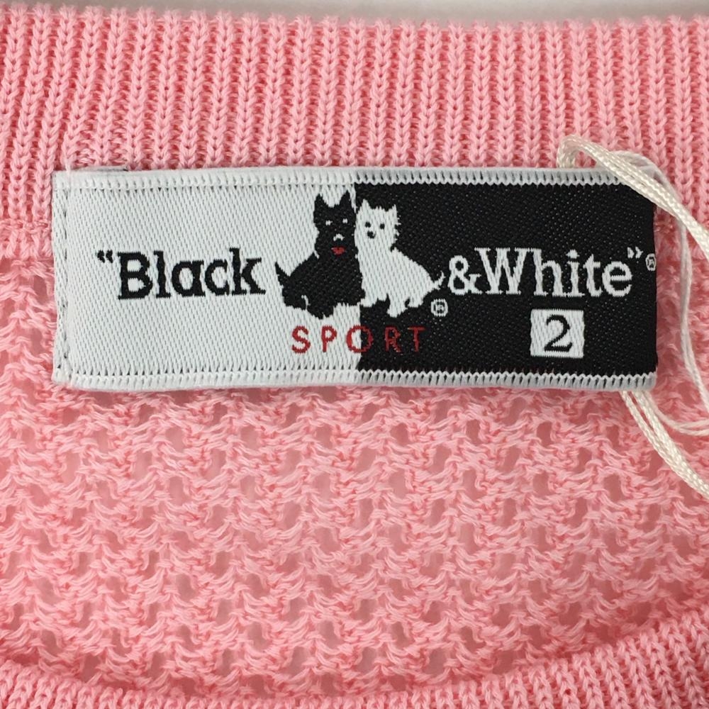 【新品】ブラックアンドホワイト ニットベスト ピンク×パープル 前面総柄 透かし編み レディース 2(M) ゴルフウェア Black&White