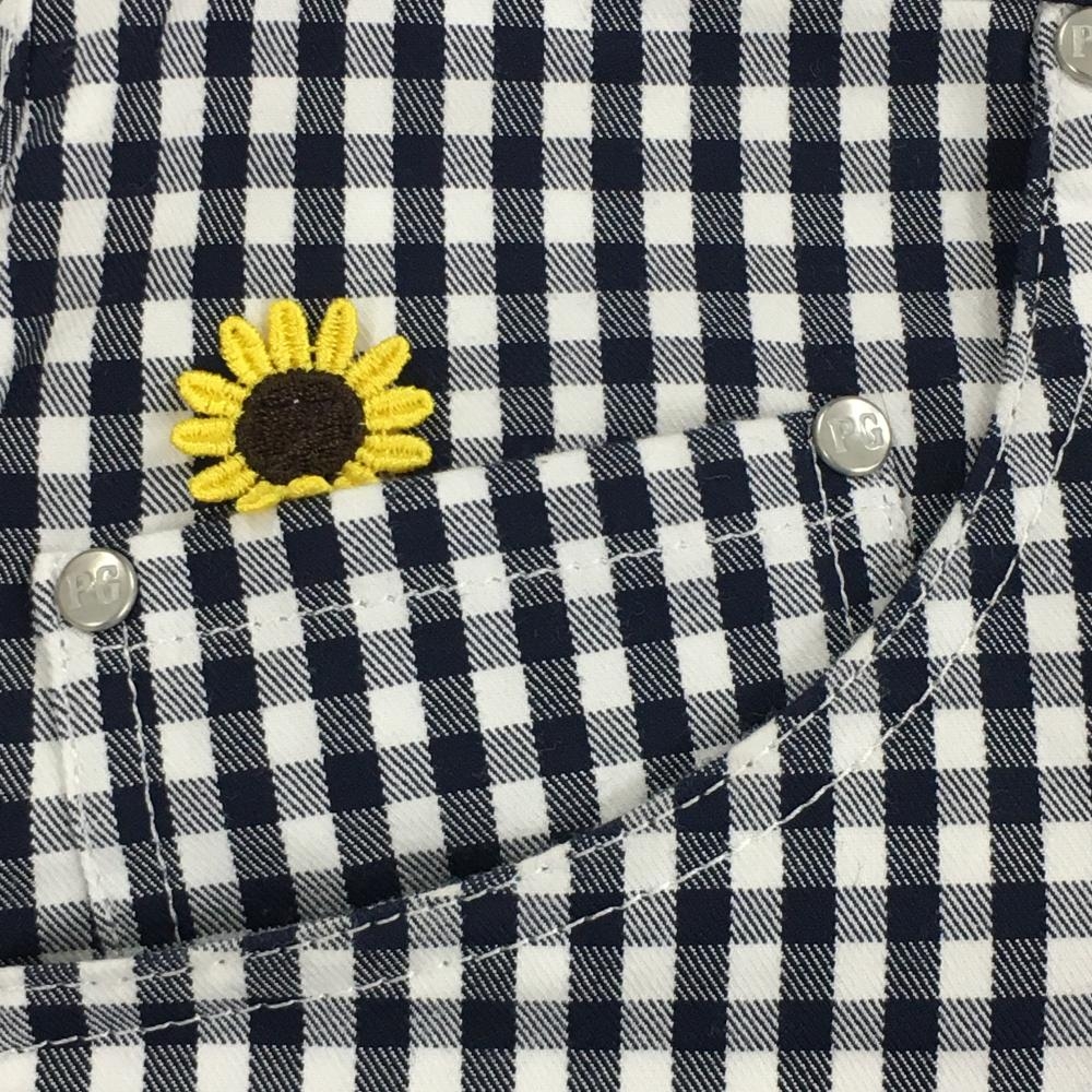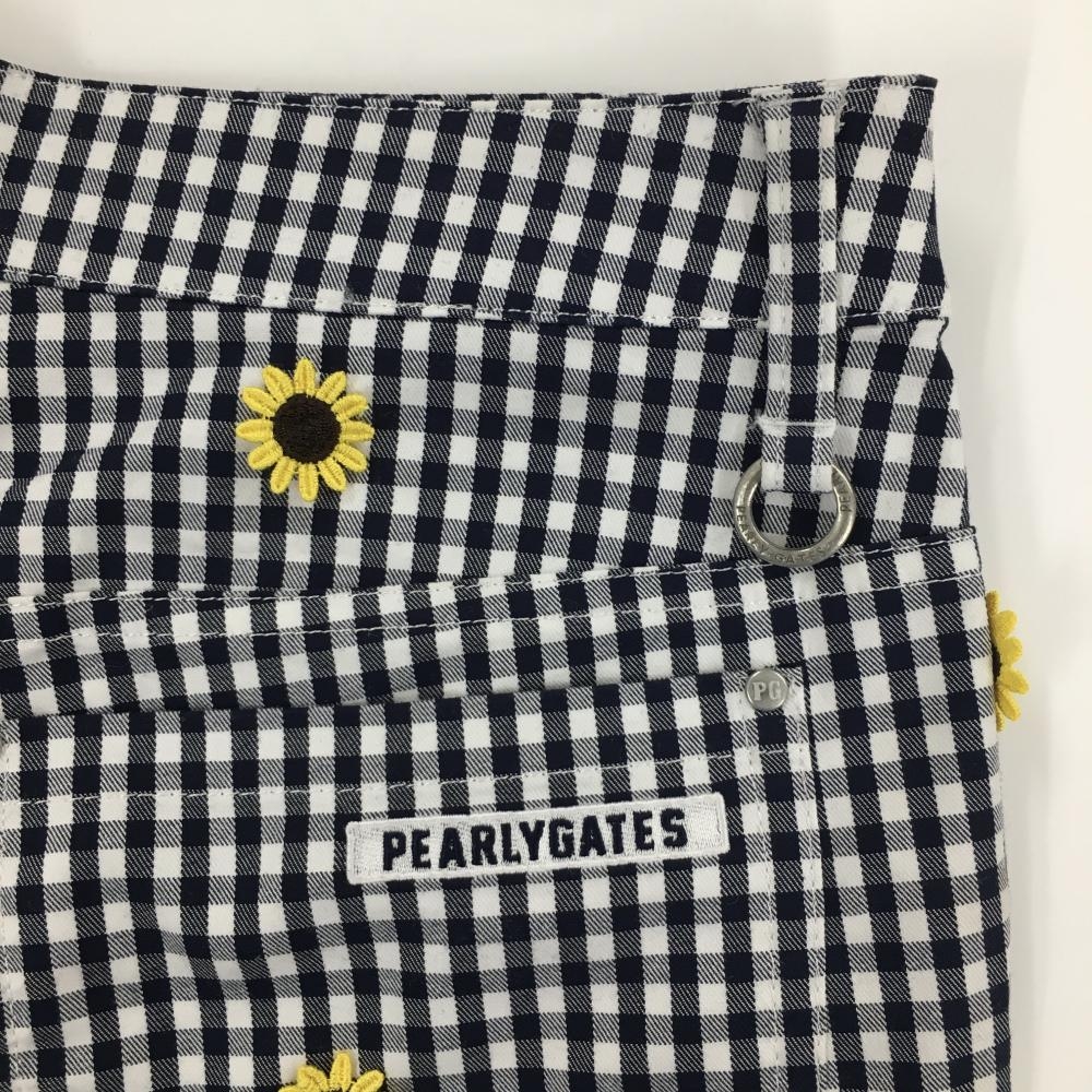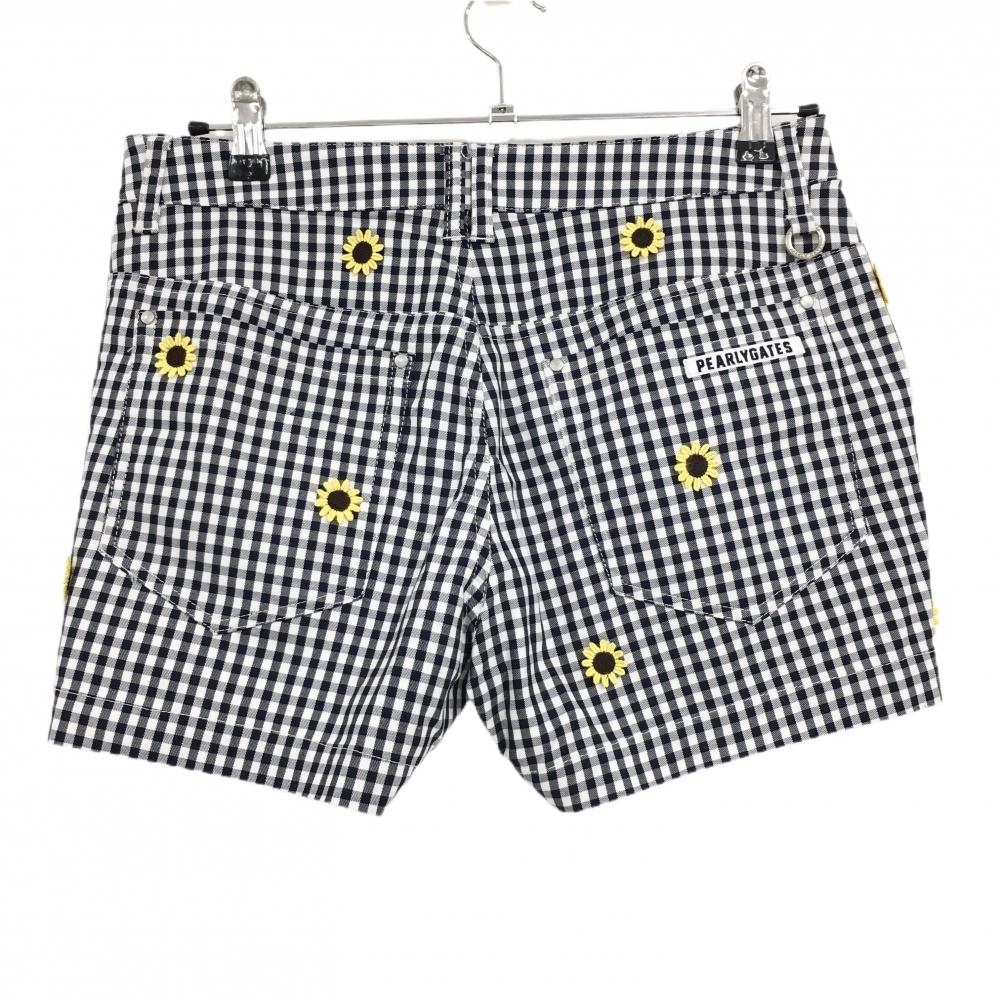 【美品】パーリーゲイツ ショートパンツ ネイビー×白 チェック ひまわり 30周年 レディース 1(M) ゴルフウェア PEARLY GATES