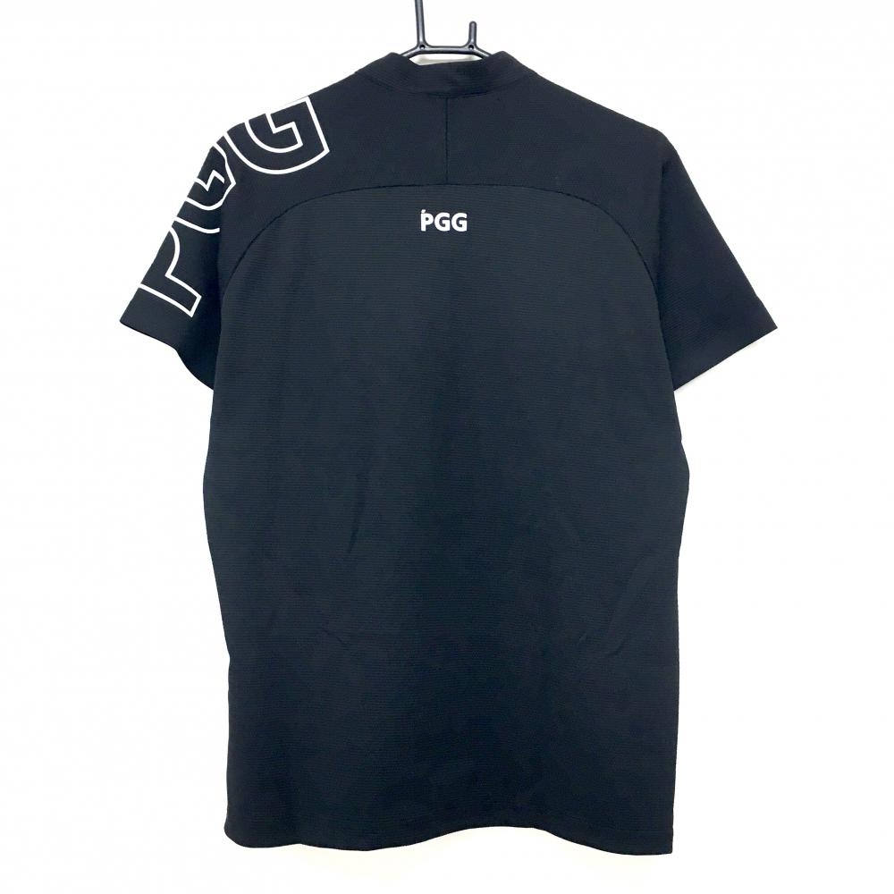 【超美品】PGGパーリーゲイツ 半袖ハイネックシャツ 黒 肩ビッグロゴ ハーフジップ メンズ 4(M) ゴルフウェア PEARLY GATES