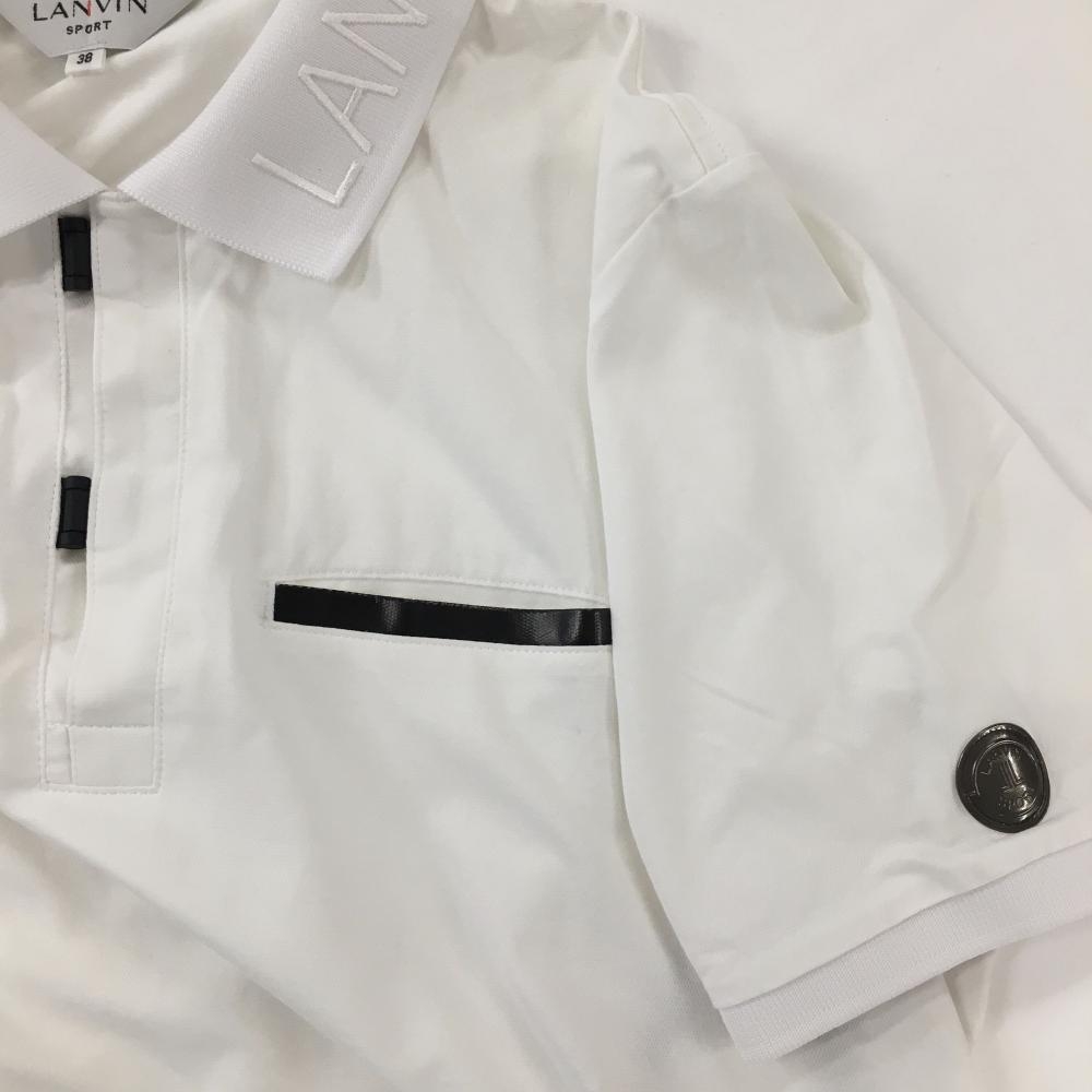 【美品】ランバンスポール 半袖ポロシャツ 白 襟ロゴ 胸ポケット メンズ 38(M) ゴルフウェア LANVIN SPORT