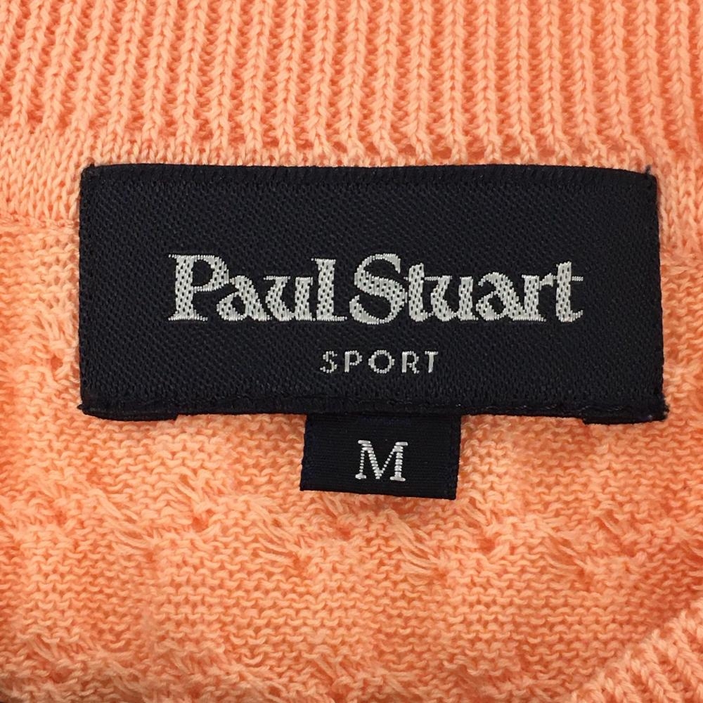 【超美品】ポールスチュアートスポーツ セーター サーモンオレンジ ケーブル編み風 Vネック メンズ M ゴルフウェア Paul Stuart SPORT