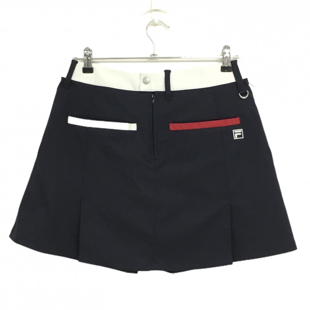 フィラゴルフ スカート ネイビー×白 背面ファスナー 内側インナーパンツ レディース L ゴルフウェア FILA GOLF