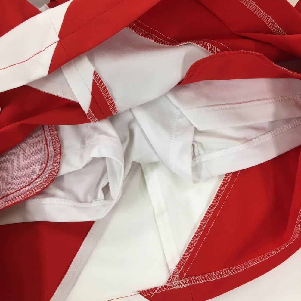 【超美品】デサントゴルフ スカート レッド×白 裾ロゴ 内側インナーパンツ 中田英寿 レディース 64/M ゴルフウェア DESCENTE