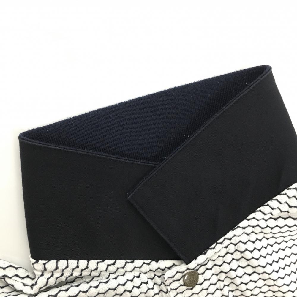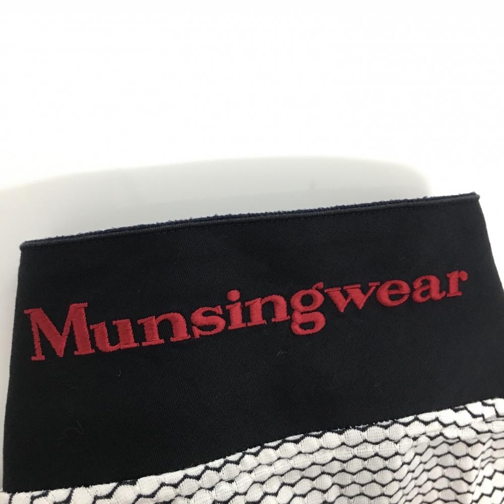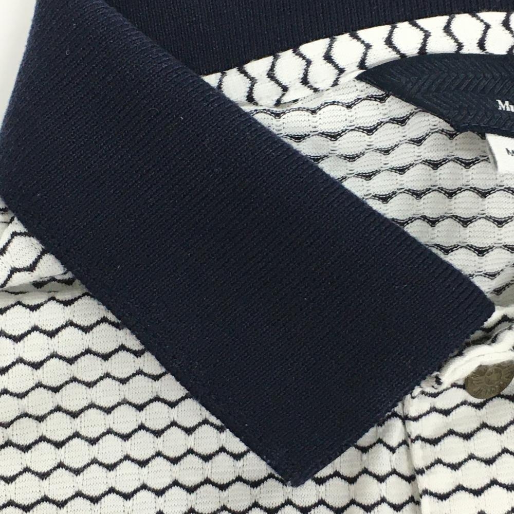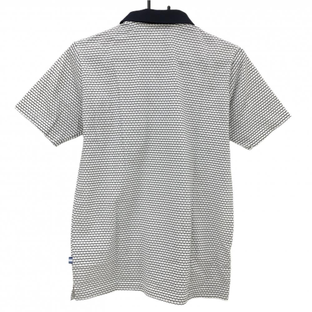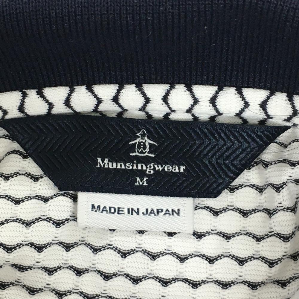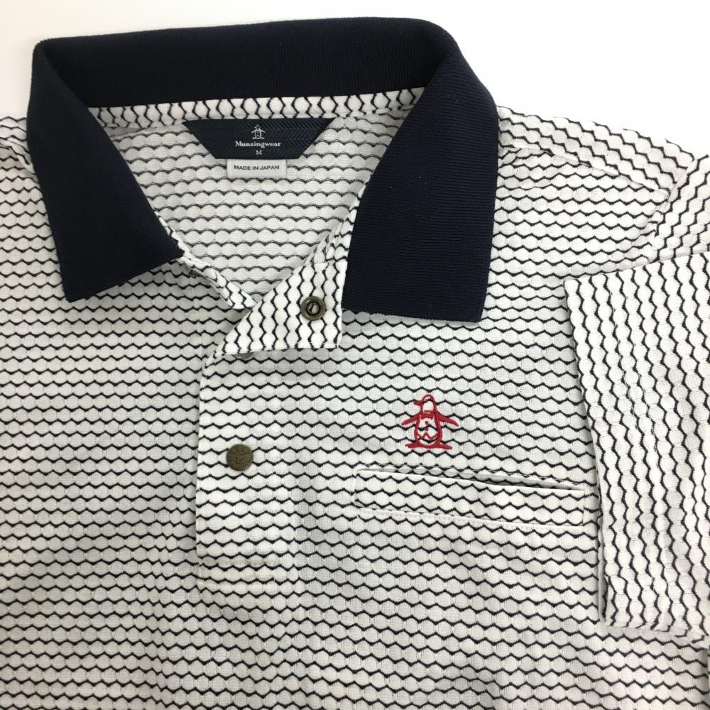 【美品】マンシングウェア 半袖ポロシャツ 白×黒 なみなみ柄風 スナップボタン 襟裏ロゴ 胸ポケット付 メンズ M ゴルフウェア Munsingwear