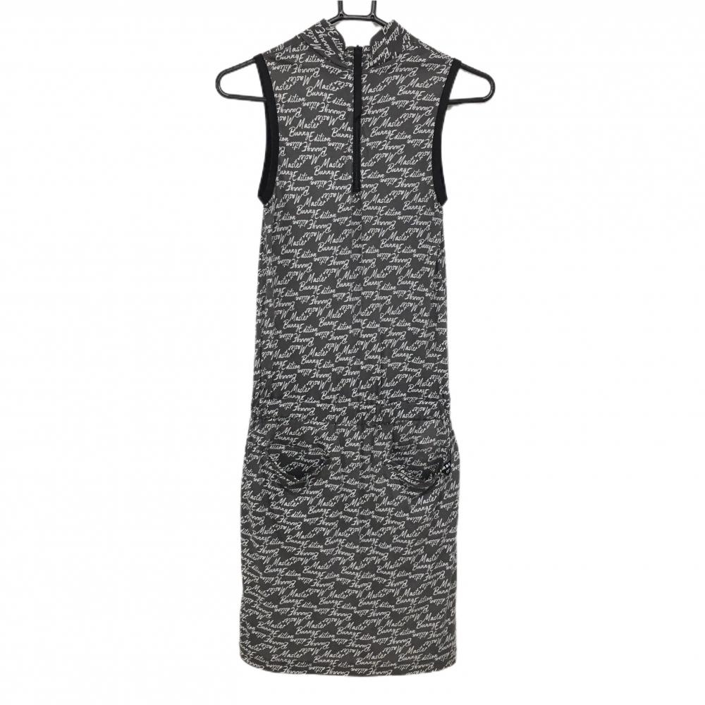 マスターバニー ノースリーブワンピース グレー×白 ロゴ総柄 ハイネック 後ジップ レディース 0(S) ゴルフウェア MASTER BUNNY EDITION