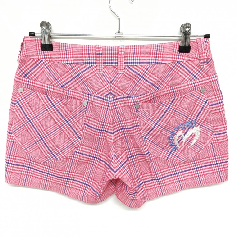 【超美品】マスターバニー ショートパンツ ピンク×白 チェック サッカー生地 レディース 0(S) ゴルフウェア MASTER BUNNY EDITION