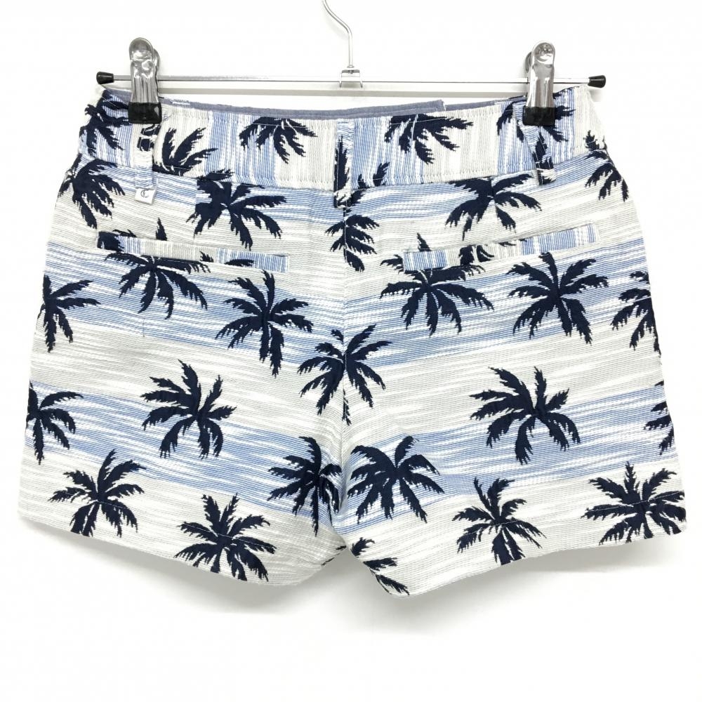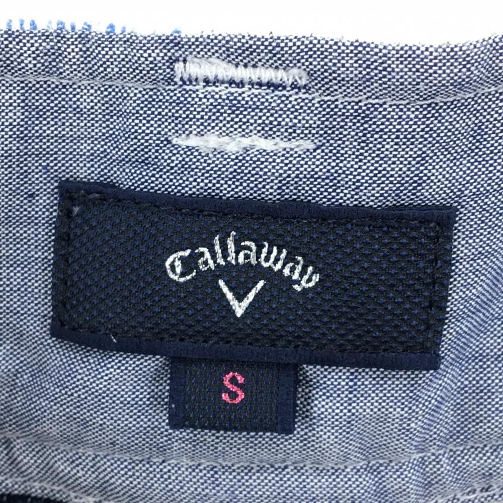 キャロウェイ ショートパンツ ライトグレー×ブルー 太ボーダー リーフ柄刺しゅう レディース S ゴルフウェア Callaway