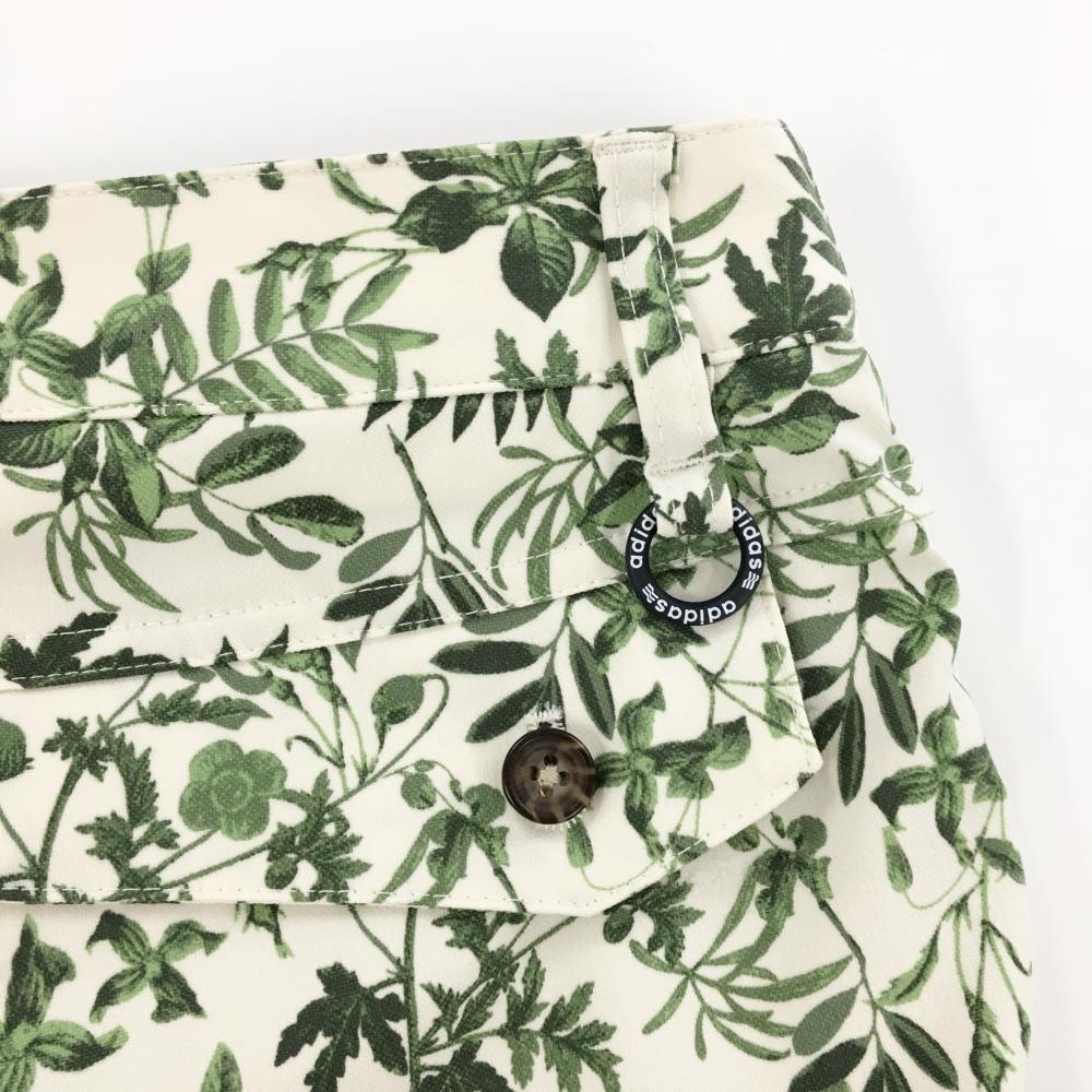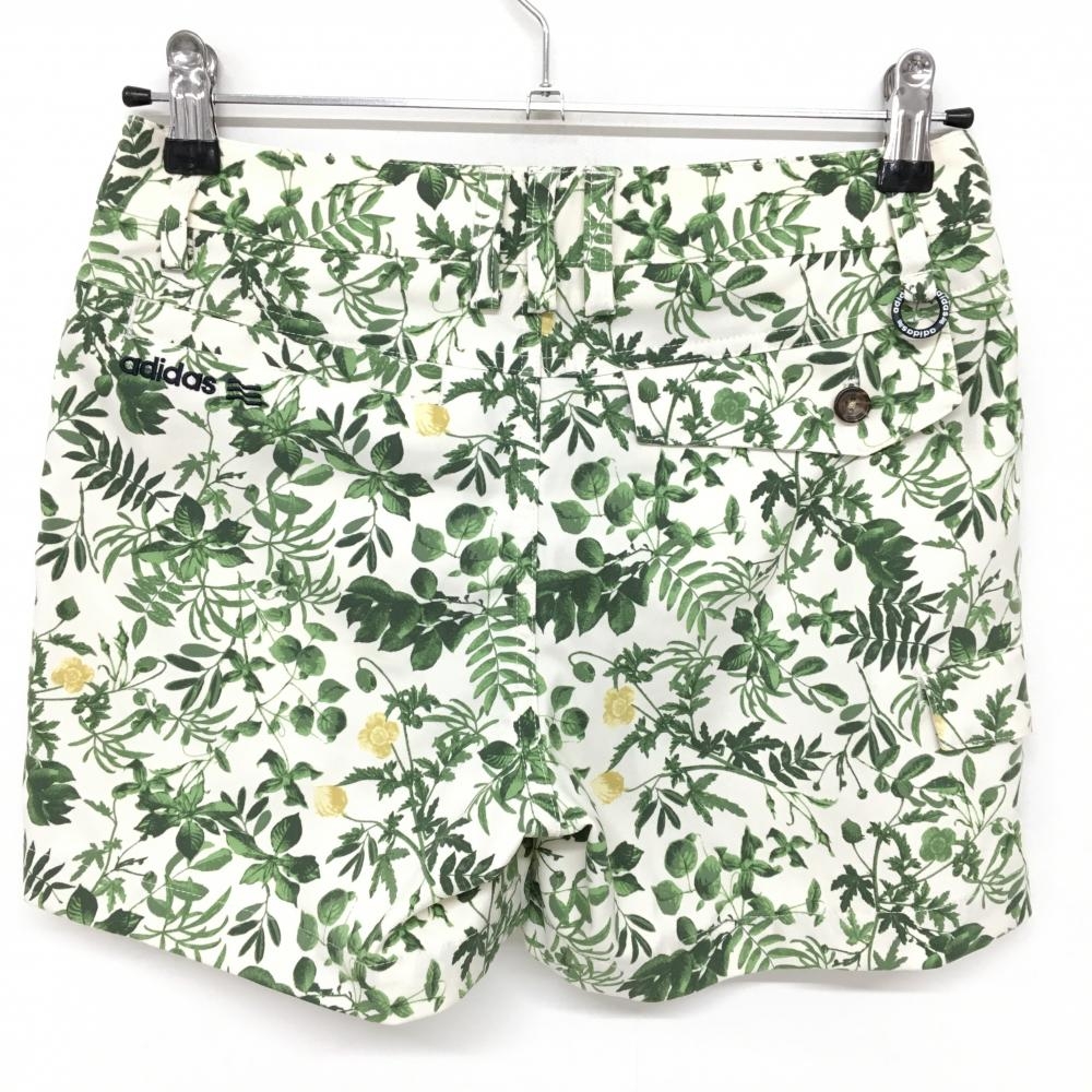 アディダス ショートパンツ アイボリー×グリーン リーフ柄 ストレッチ レディース S/P ゴルフウェア adidas