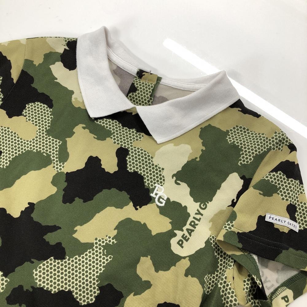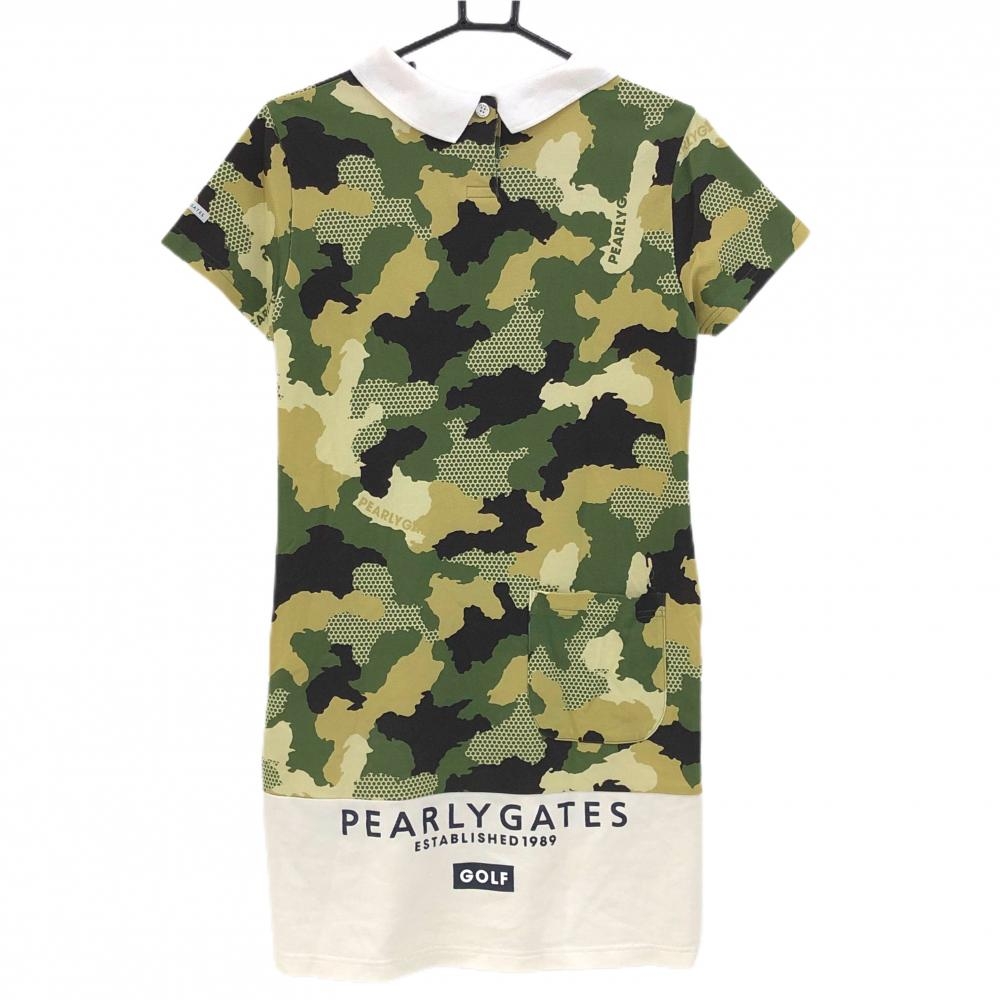 パーリーゲイツ 半袖ワンピース ダークグリーン×ベージュ 迷彩 カモフラ ドット レディース 0(S) ゴルフウェア PEARLY GATES