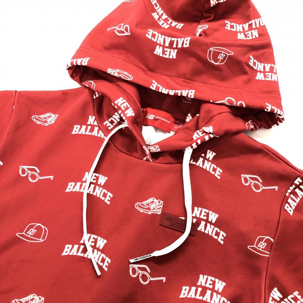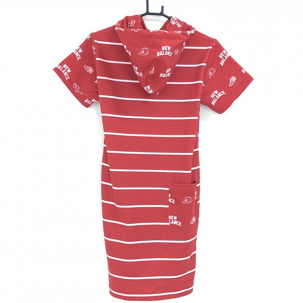 【美品】ニューバランスゴルフ フード付き半袖ワンピース レッド×白 ロゴ総柄 レディース 1(M) ゴルフウェア New Balance