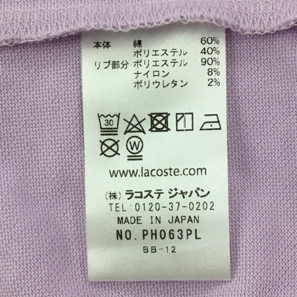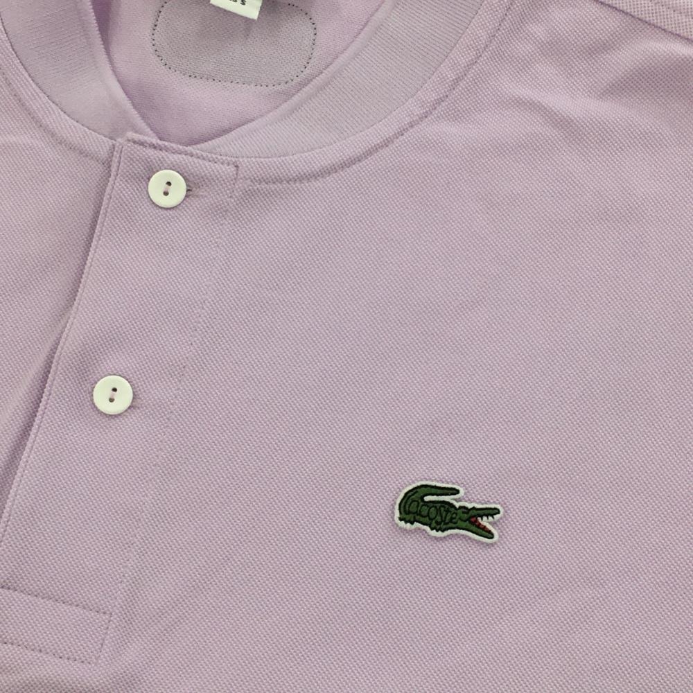 ラコステ 半袖ポロシャツ ライトパープル スタンドカラー ワッペン メンズ US-S ゴルフウェア LACOSTE