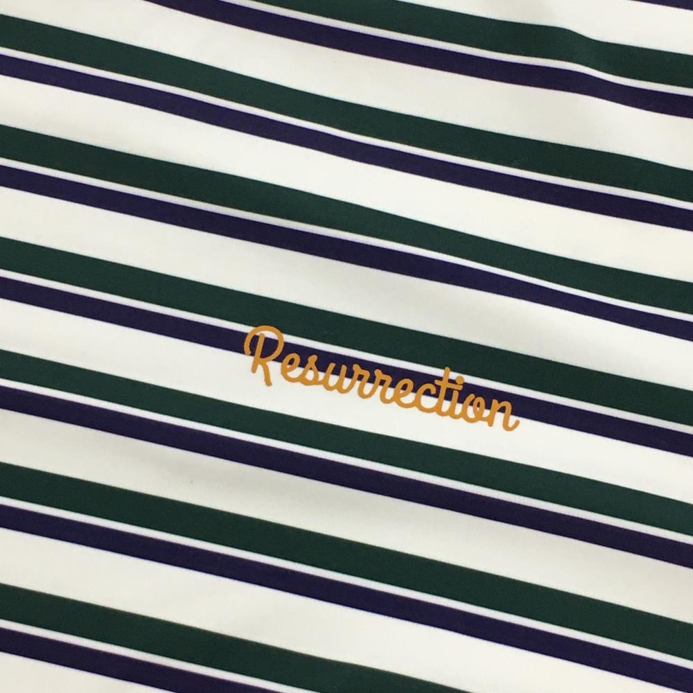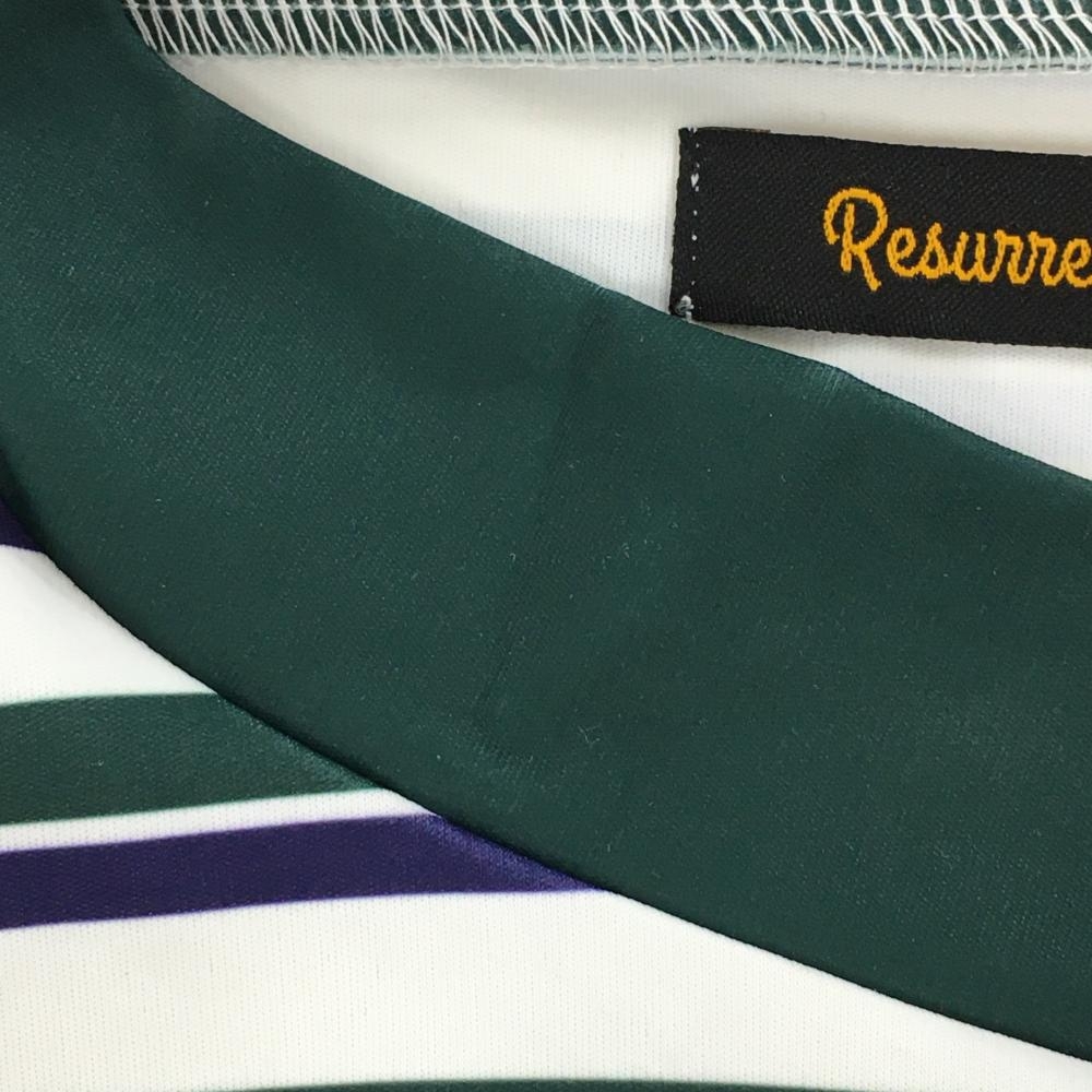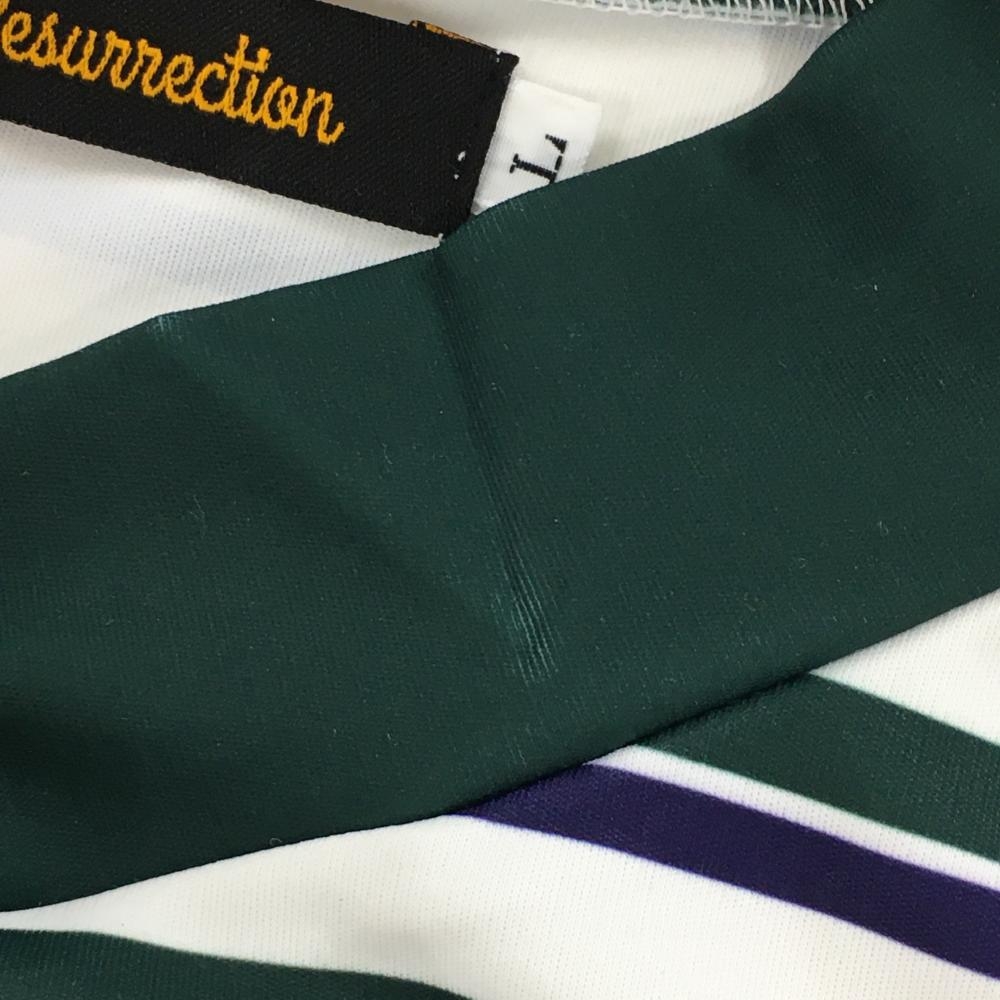 【超美品】レザレクション 半袖ハイネックシャツ 白×グリーン ボーダー メンズ L ゴルフウェア 2023年モデル Resurrection