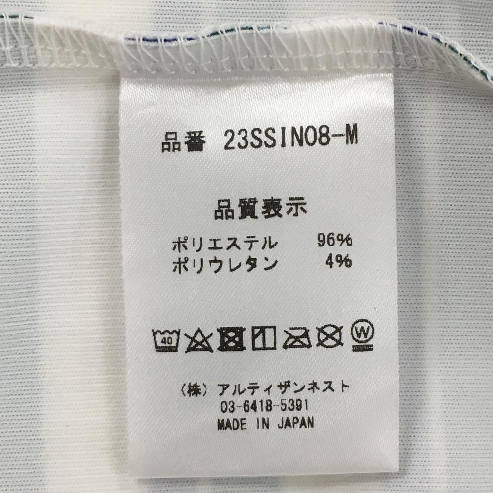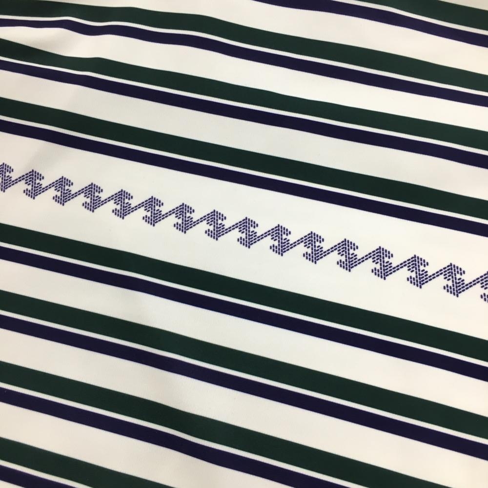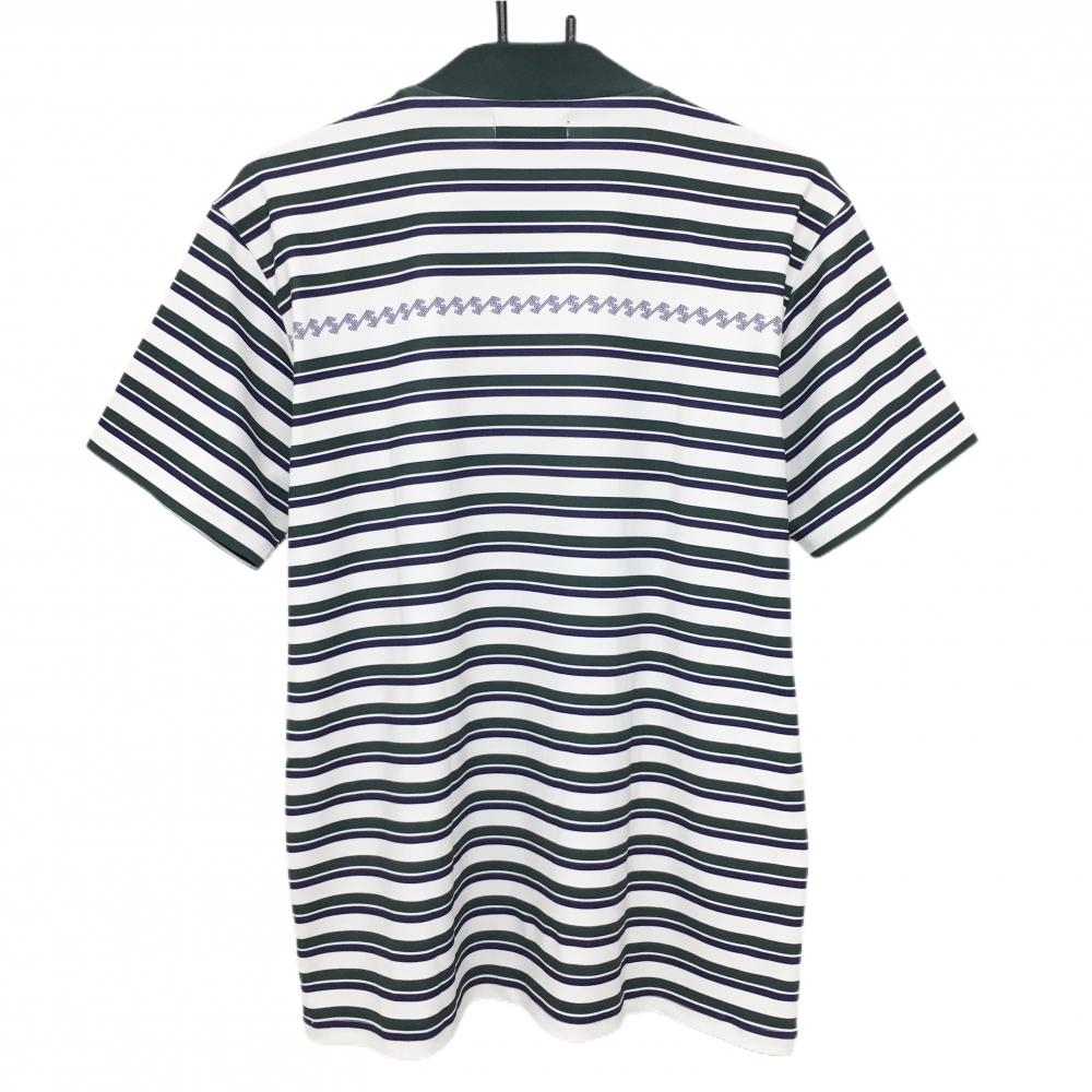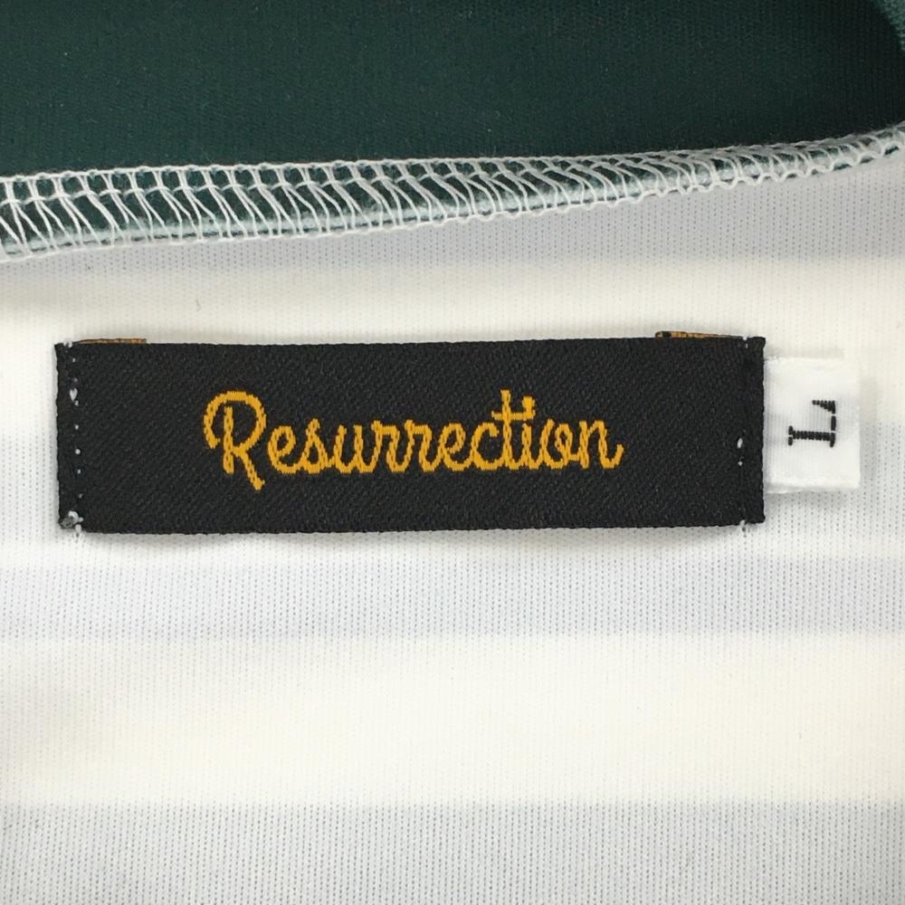 【超美品】レザレクション 半袖ハイネックシャツ 白×グリーン ボーダー メンズ L ゴルフウェア 2023年モデル Resurrection
