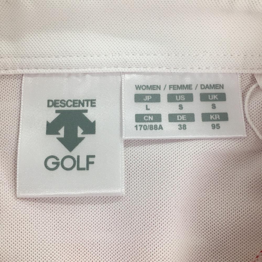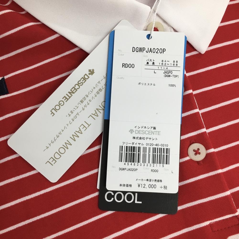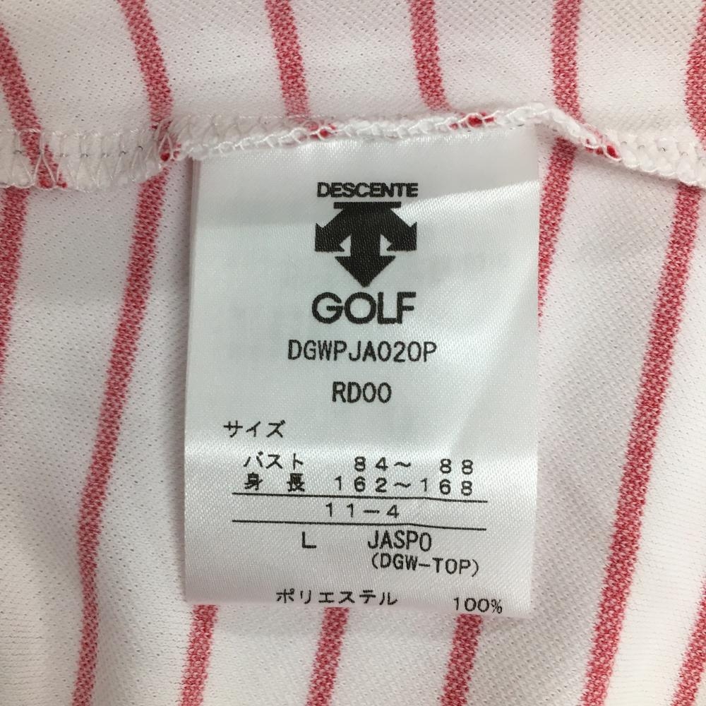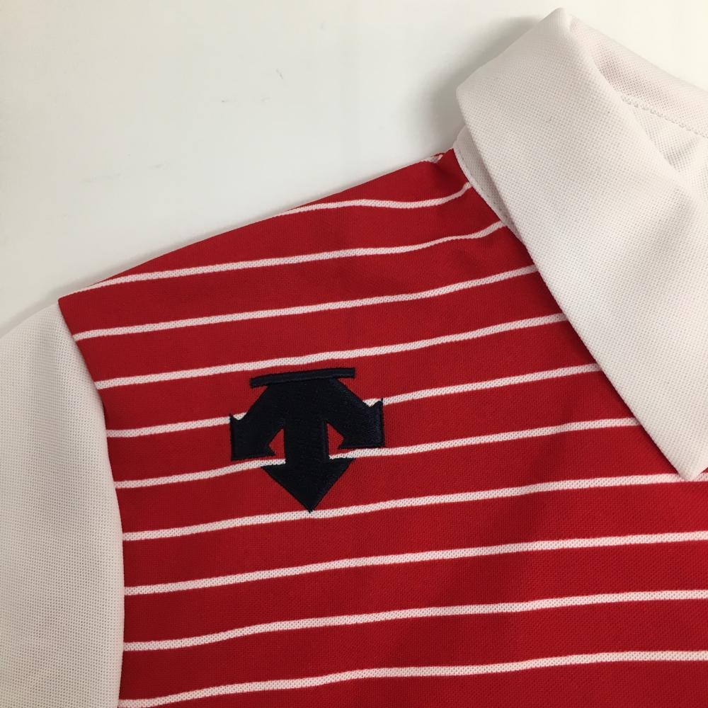 【新品】デサントゴルフ 半袖ポロシャツ レッド×白 身頃ボーダー 吸汗速乾 UVケア COOL レディース L ゴルフウェア DESCENTE