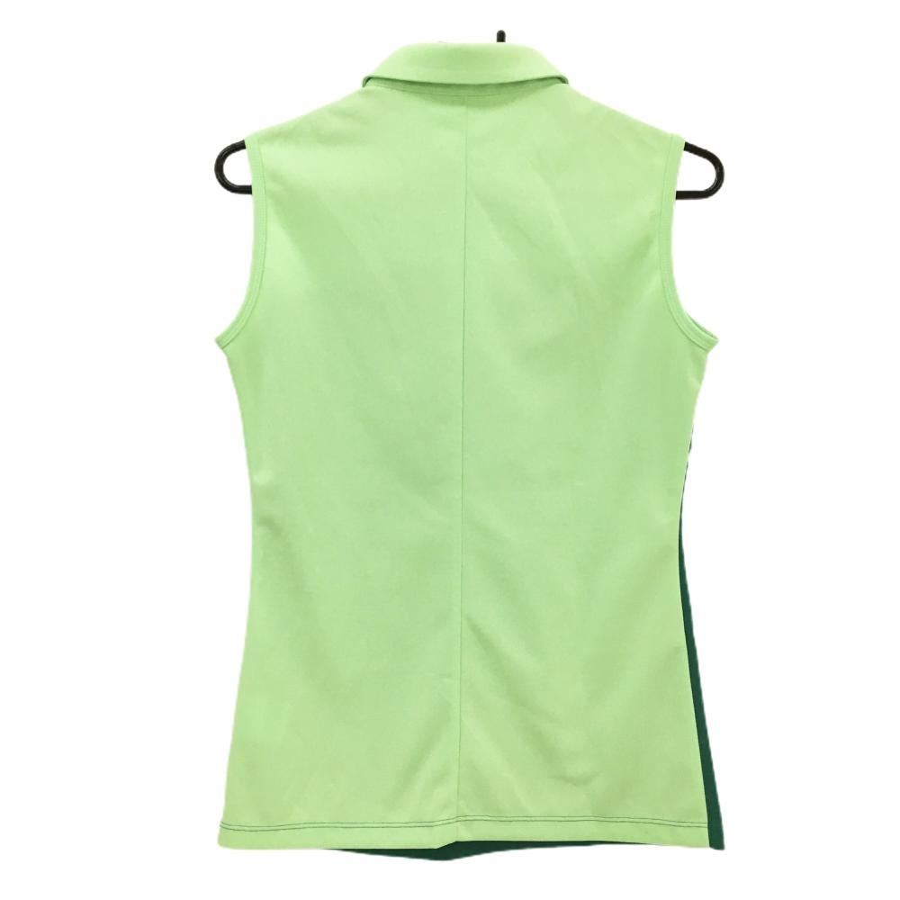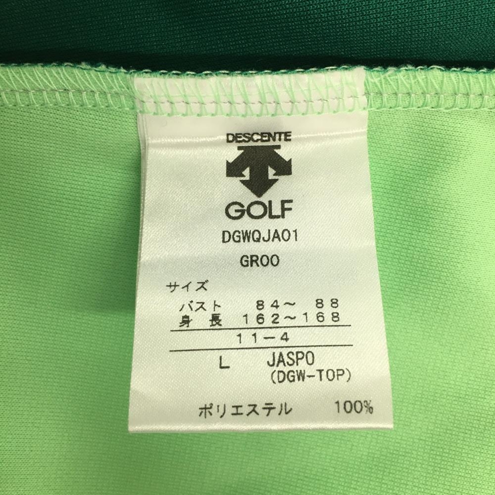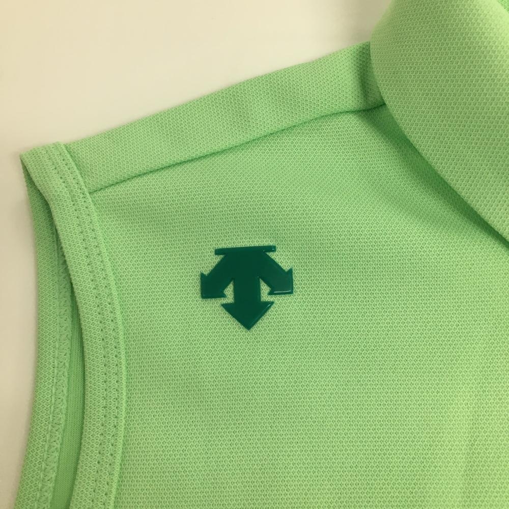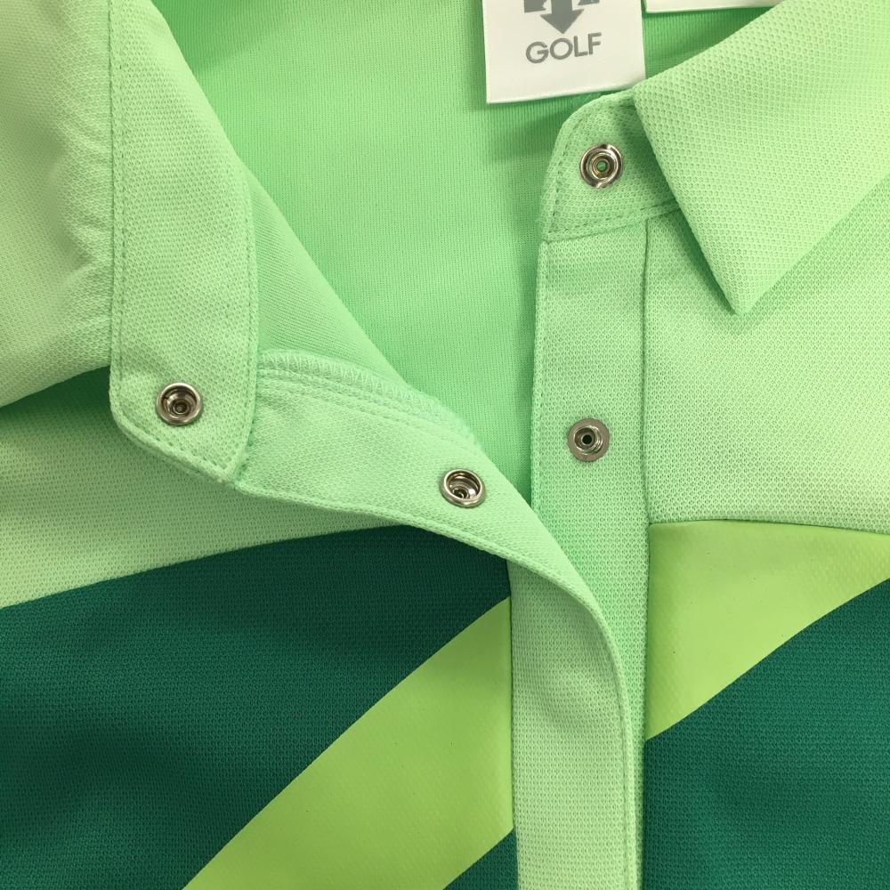 【超美品】デサントゴルフ ノースリーブポロシャツ グリーン×ライトグリーン スナップボタン レディース L ゴルフウェア DESCENTE