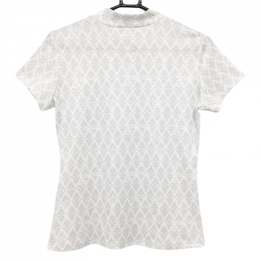 【超美品】フィラゴルフ 半袖ハイネックシャツ 白×グレー ダイヤ柄風 レディース M ゴルフウェア FILA GOLF