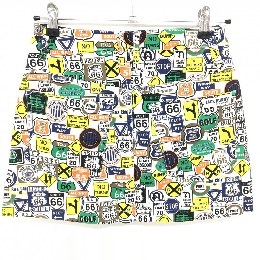 【超美品】ジャックバニー スカート 白×マルチカラー 標識柄 内側インナーパンツ レディース 0(S) ゴルフウェア Jack Bunny
