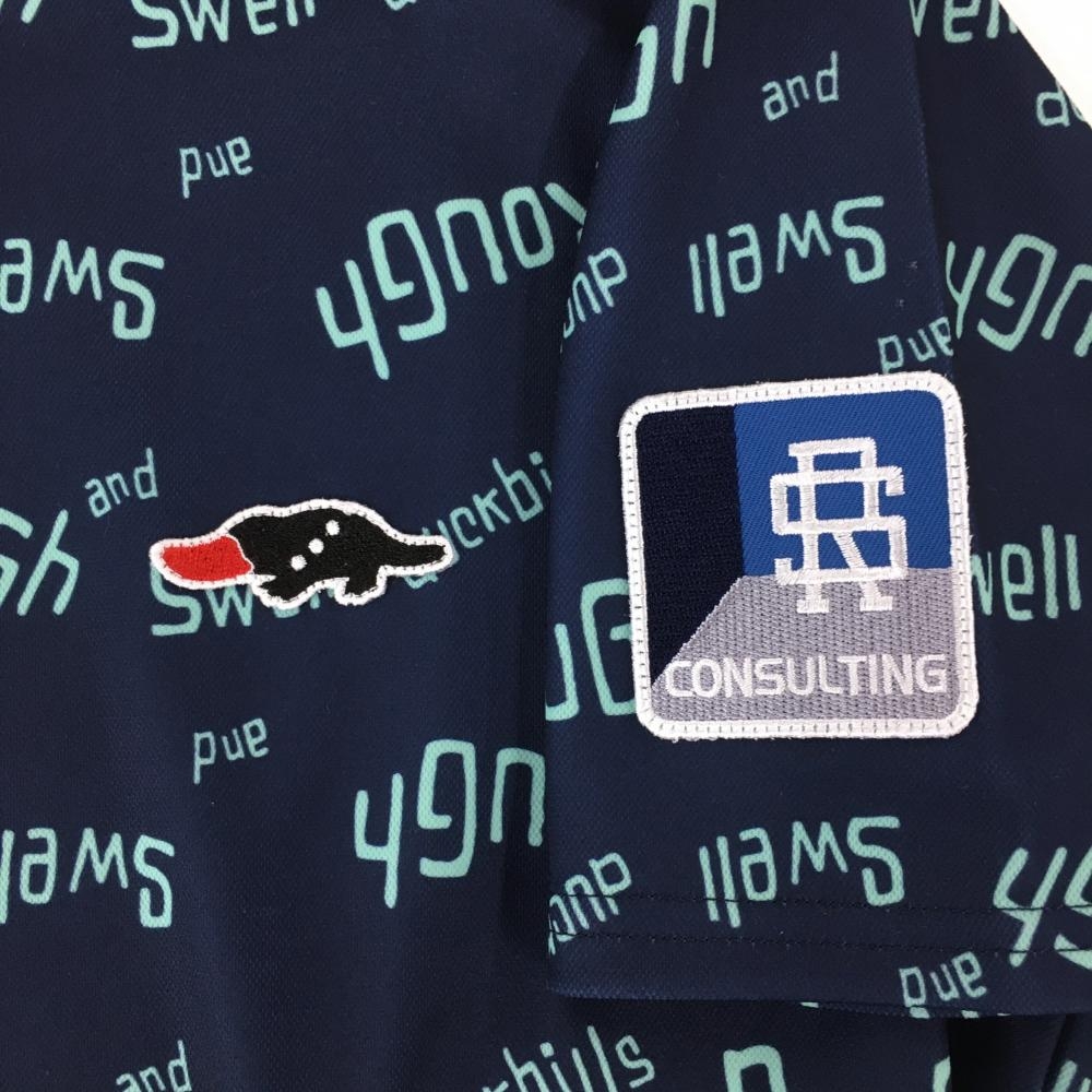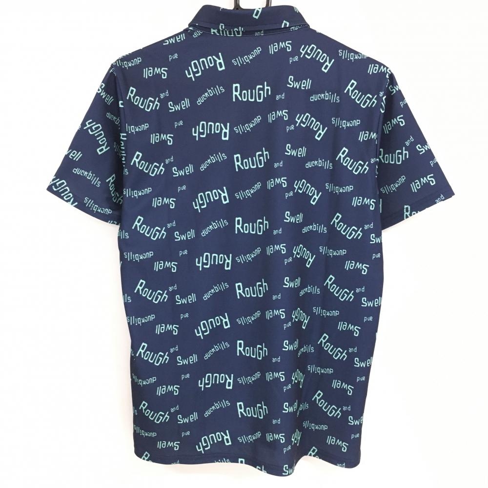 【美品】ラフアンドスウェル 半袖ポロシャツ ネイビー×ライトグリーン ロゴ総柄 メンズ M ゴルフウェア 2023年モデル rough&swell