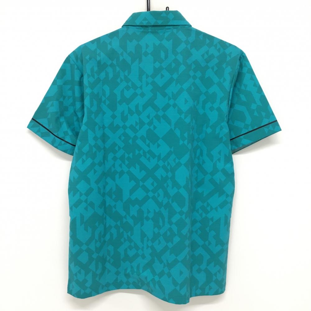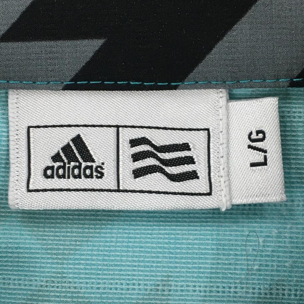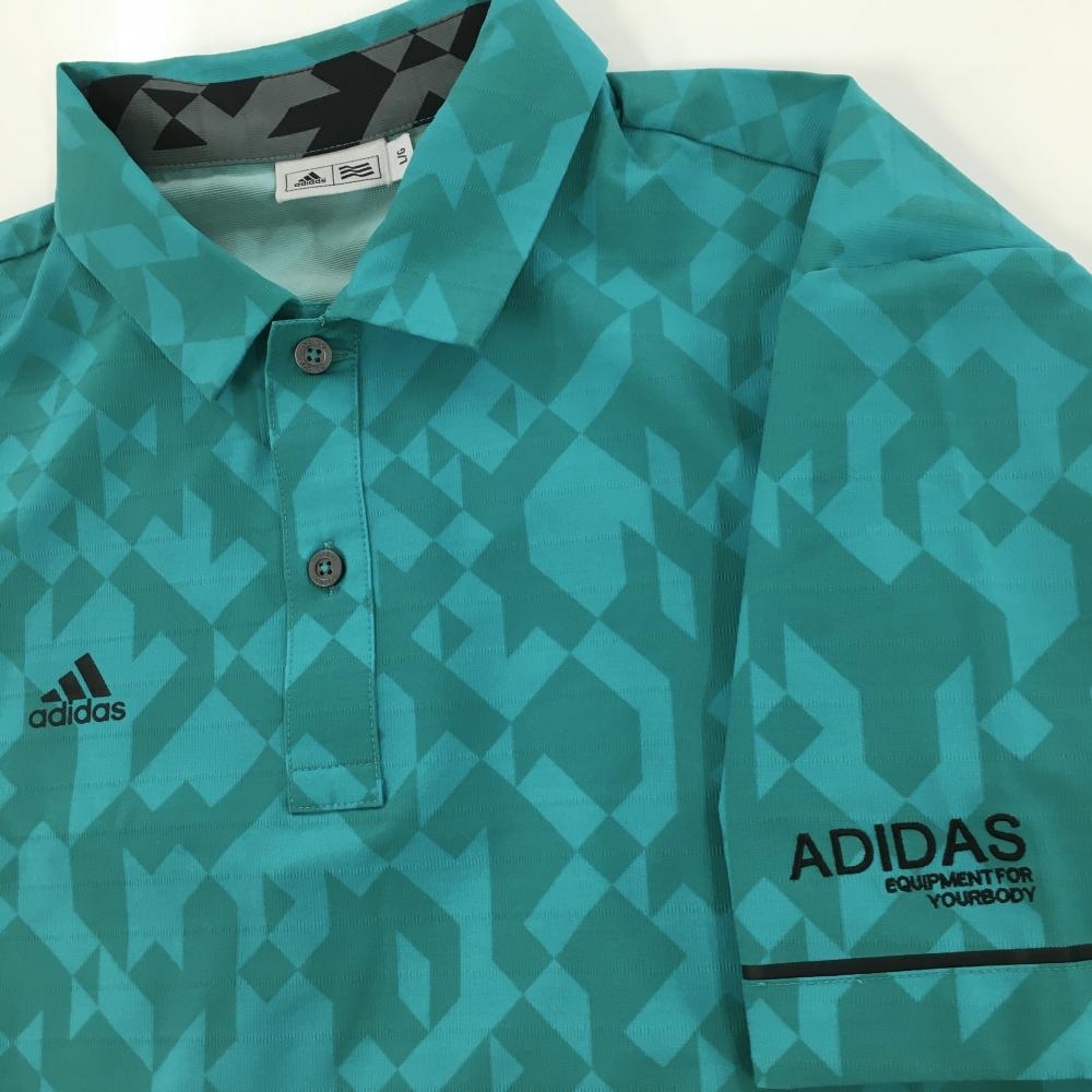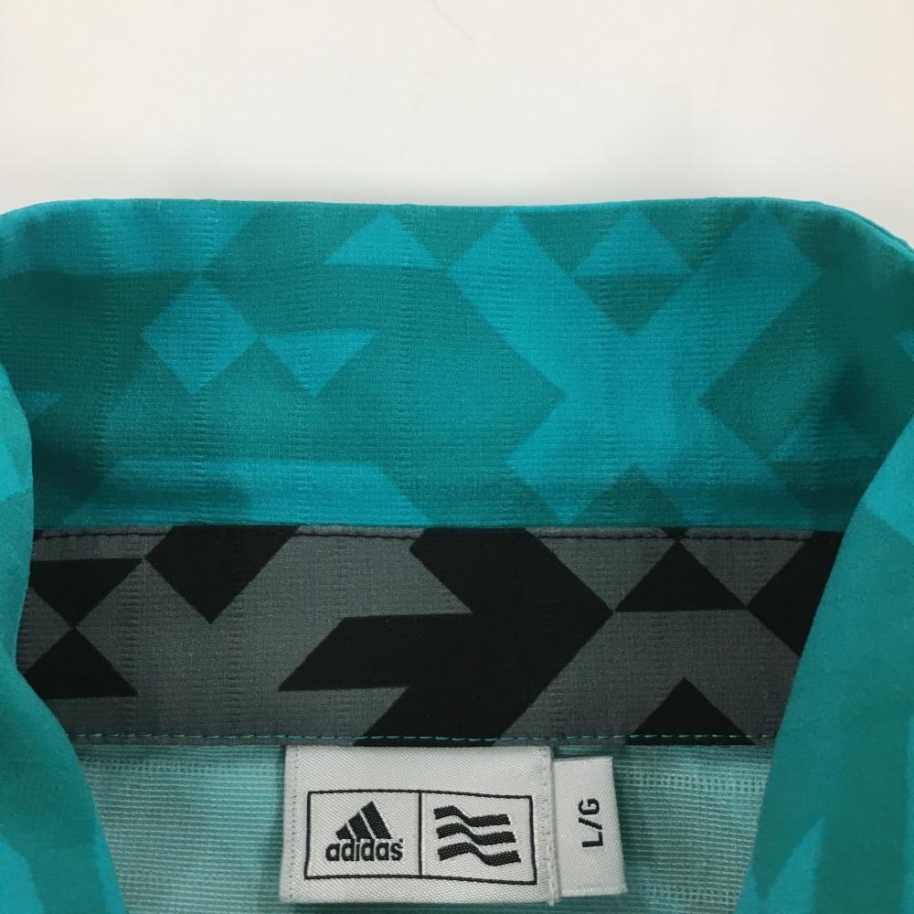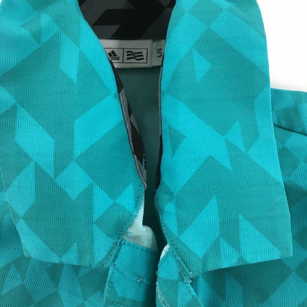 【美品】アディダス 半袖ポロシャツ グリーン 総柄 袖ロゴ刺しゅう メンズ L/G ゴルフウェア adidas