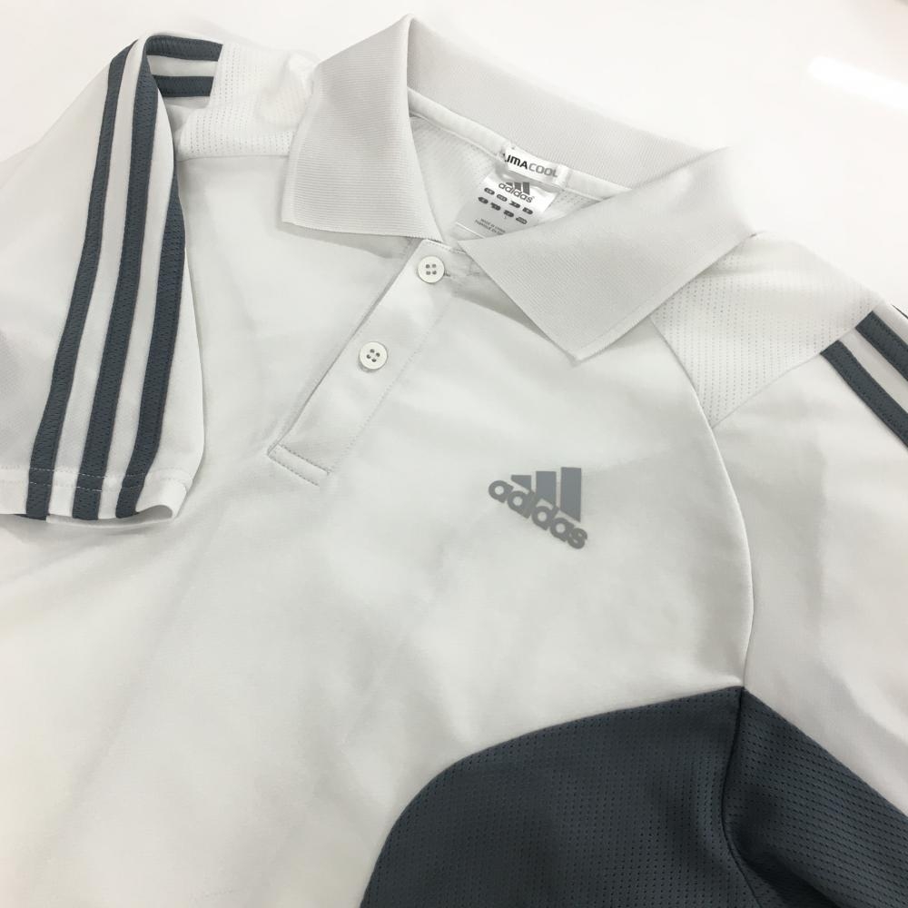 【美品】アディダス 半袖ポロシャツ 白×グレー 袖3ライン メンズ L ゴルフウェア adidas